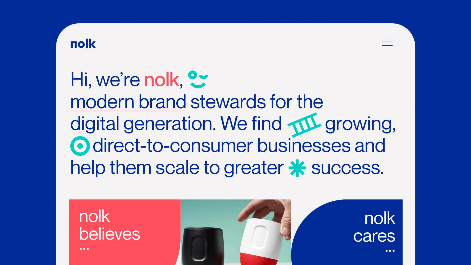 Hi, we're nolk, modern brand stewards for the digital generation. We find growing, direct-to-consumer businesses and help them scale to greater success.