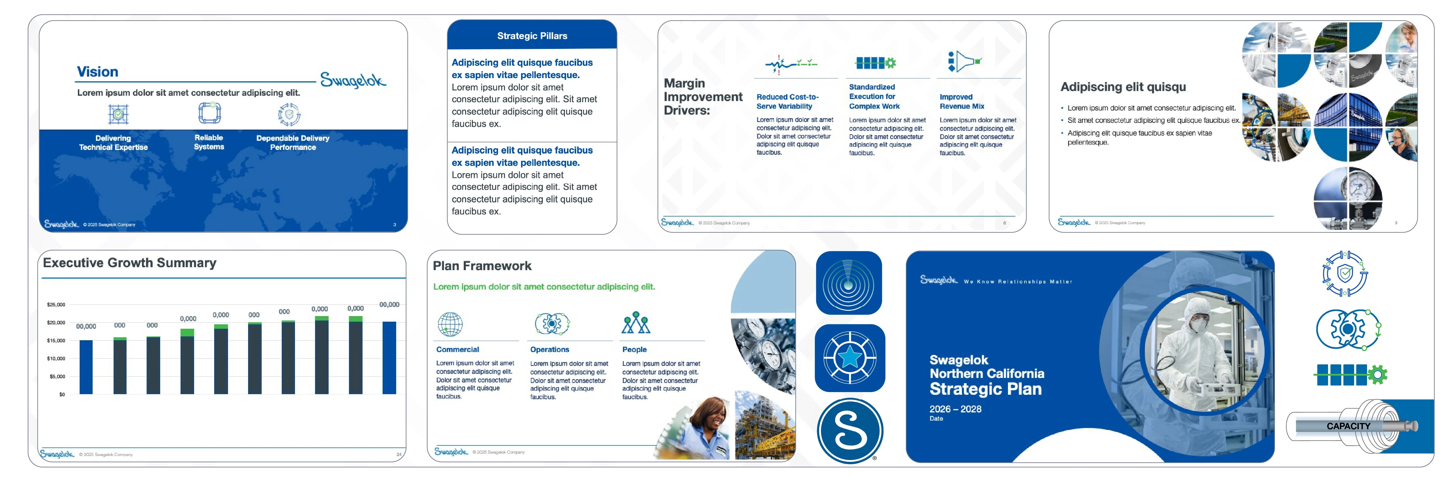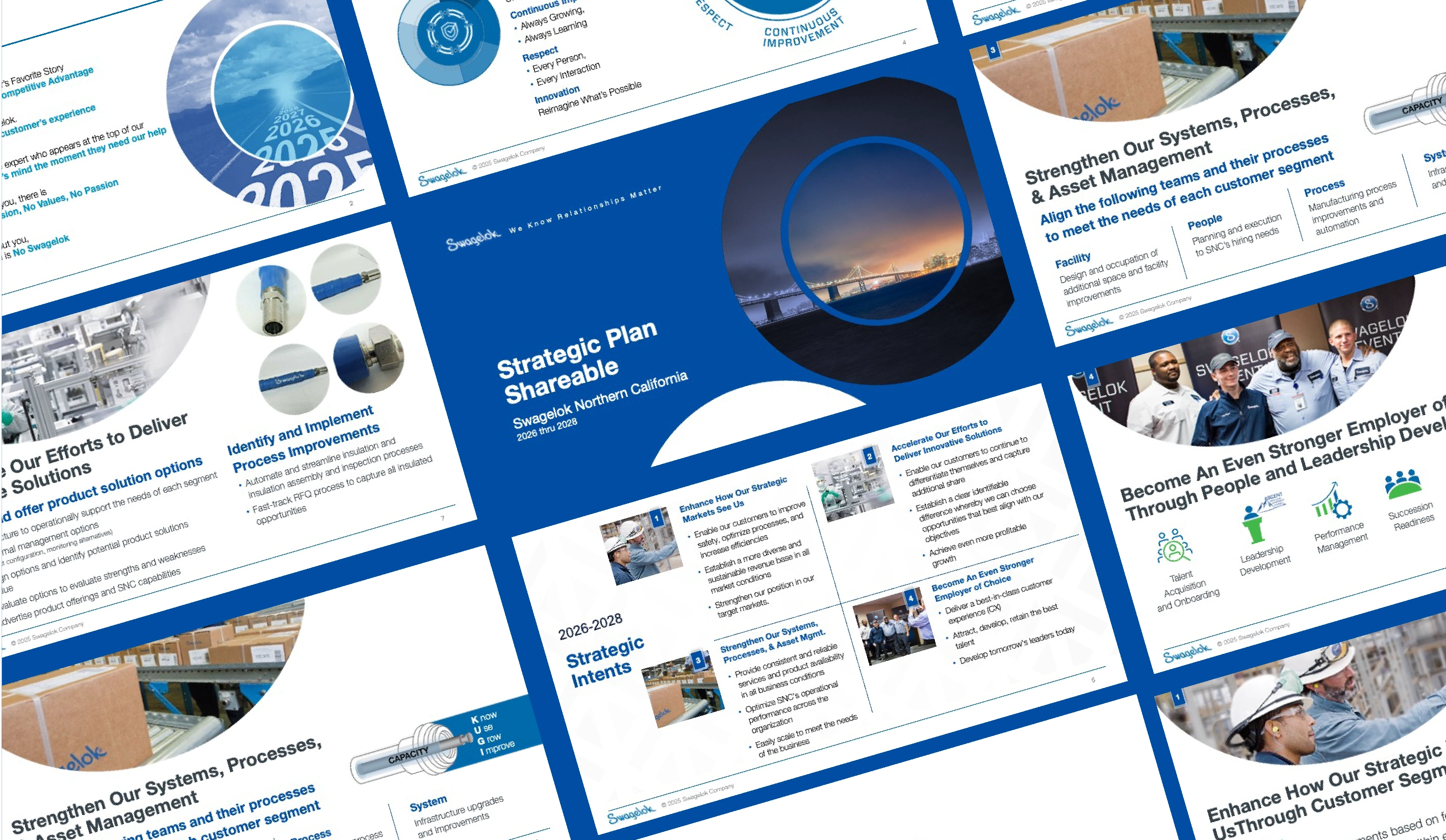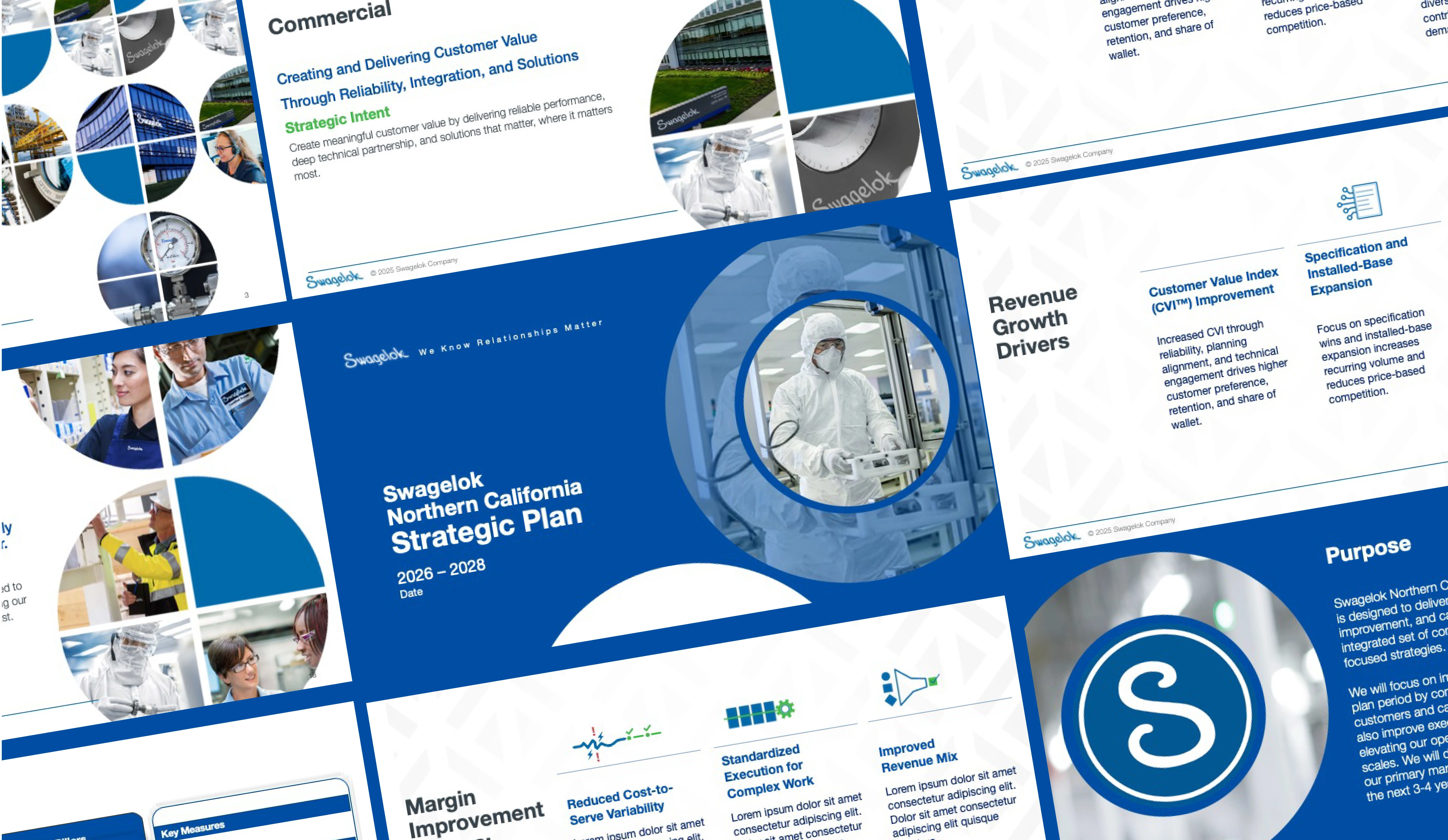 Partnered with Swagelok to translate a dense 3-year Word document into a strategic presentation used by leadership.