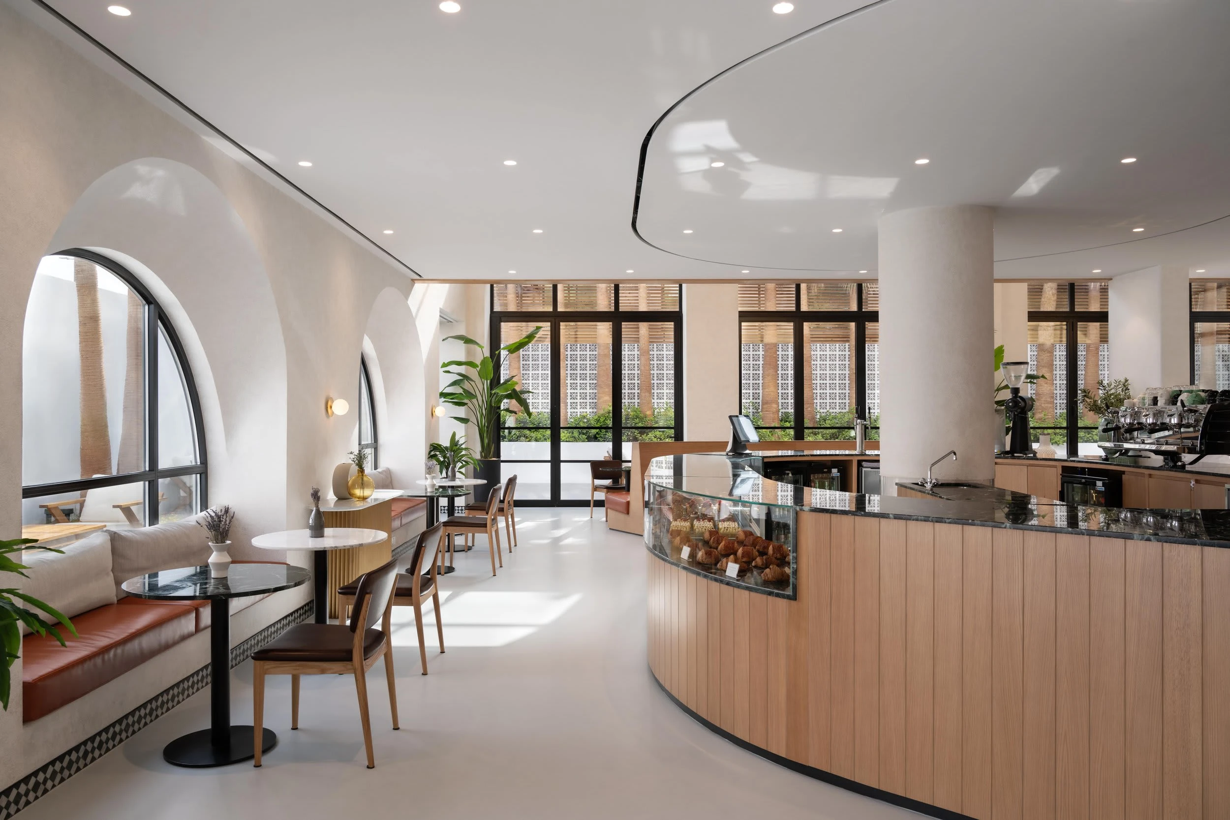 A contemporary café with a warm, inviting ambiance using 3D visualization for optimal customer experience.