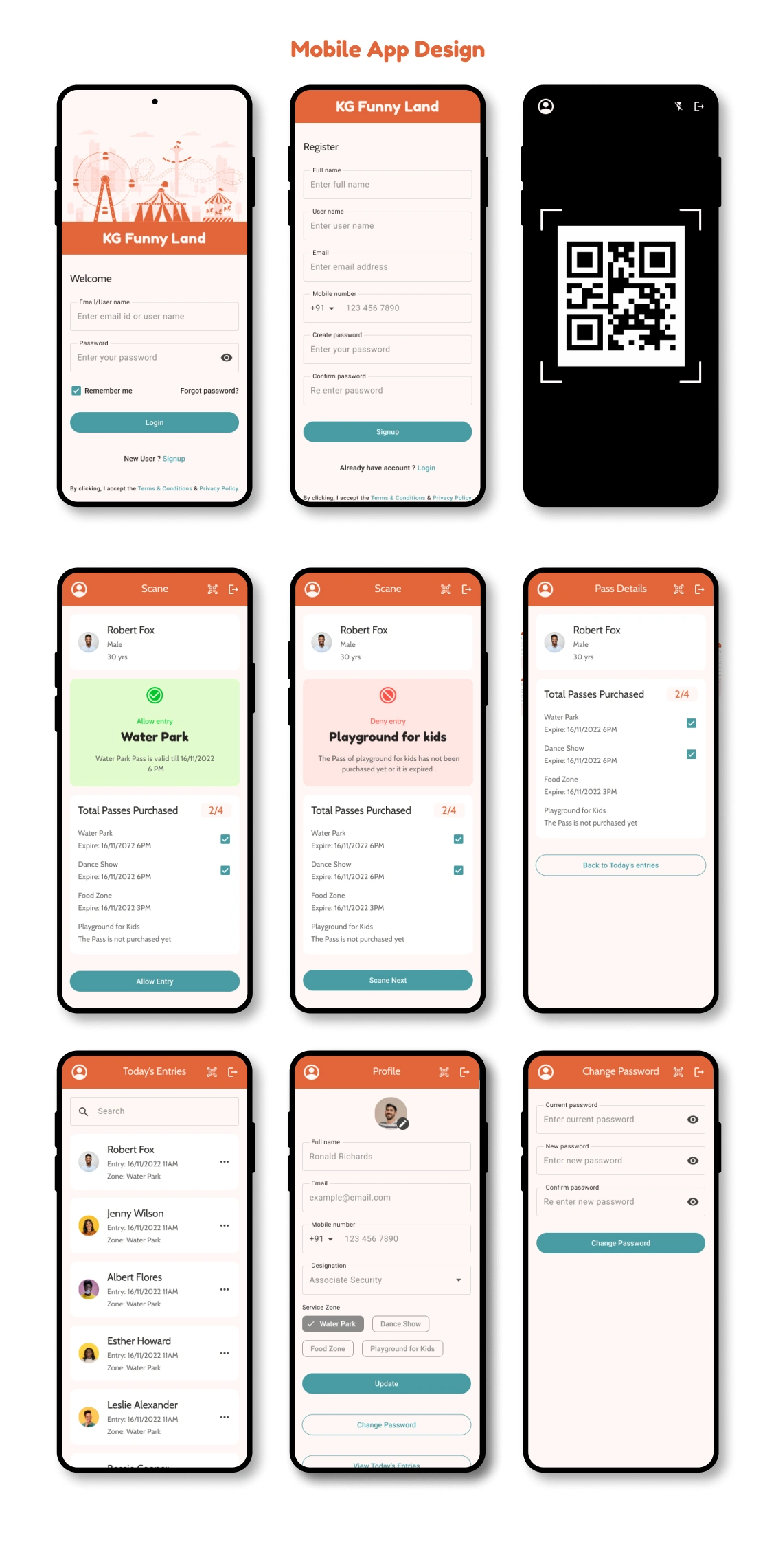 Fun and user-friendly mobile app design for an amusement park, featuring intuitive navigation, ticket booking, and interactive park maps in Figma.