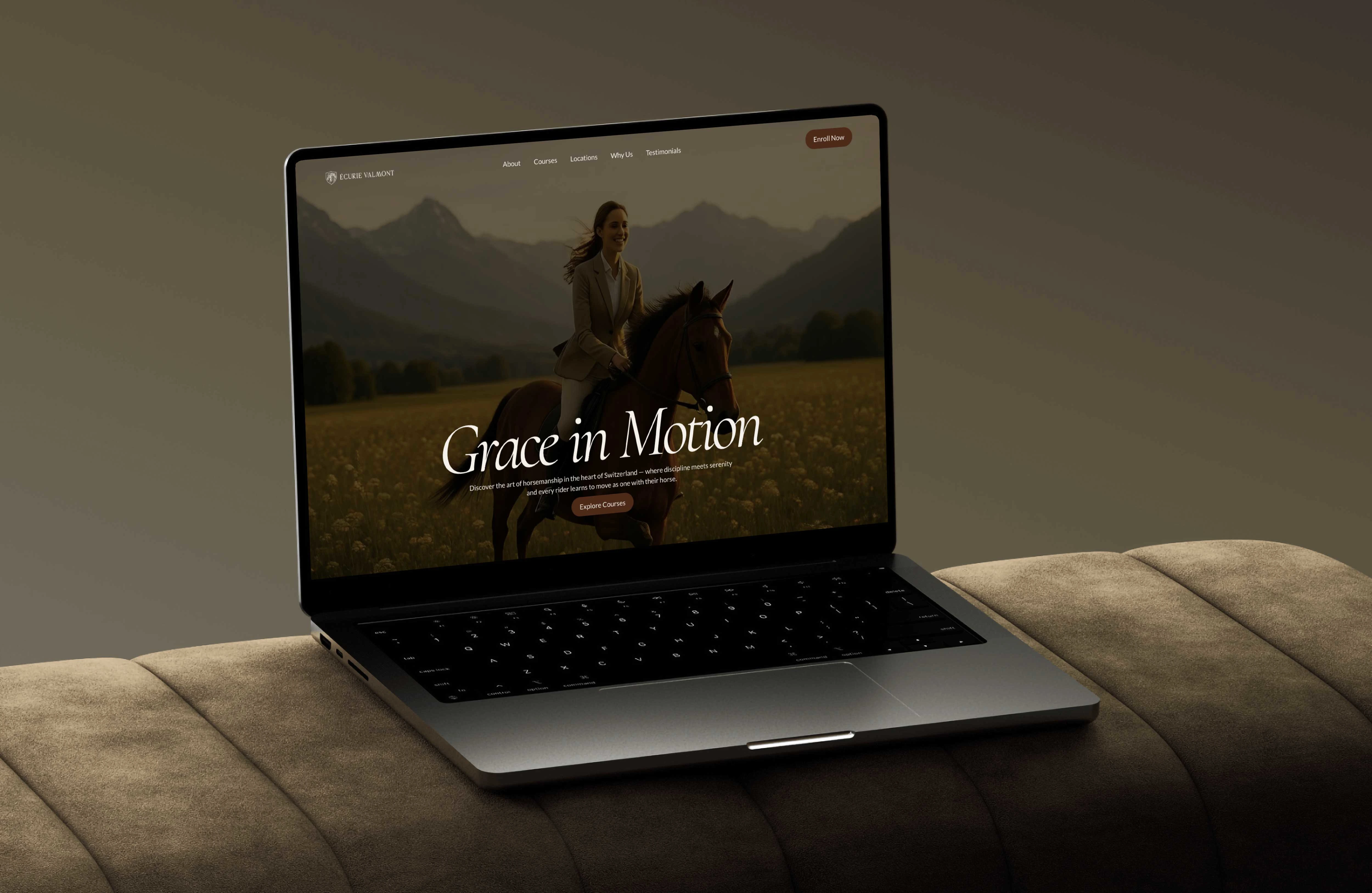 We designed a full website experience inspired by nature, rhythm, and restraint. The visual language draws from the surrounding Swiss countryside: soft tones, generous white space, and fluid pacing that mirrors the relationship between rider and horse. Editorial layouts and storytelling-led sections highlight the academy’s philosophy, training approach, and facilities without overstatement. Clear Course Overview and Booking Pages guide users through offerings with ease, while a Blog CMS provides space for riding insights, horsemanship education, and long-term content growth.