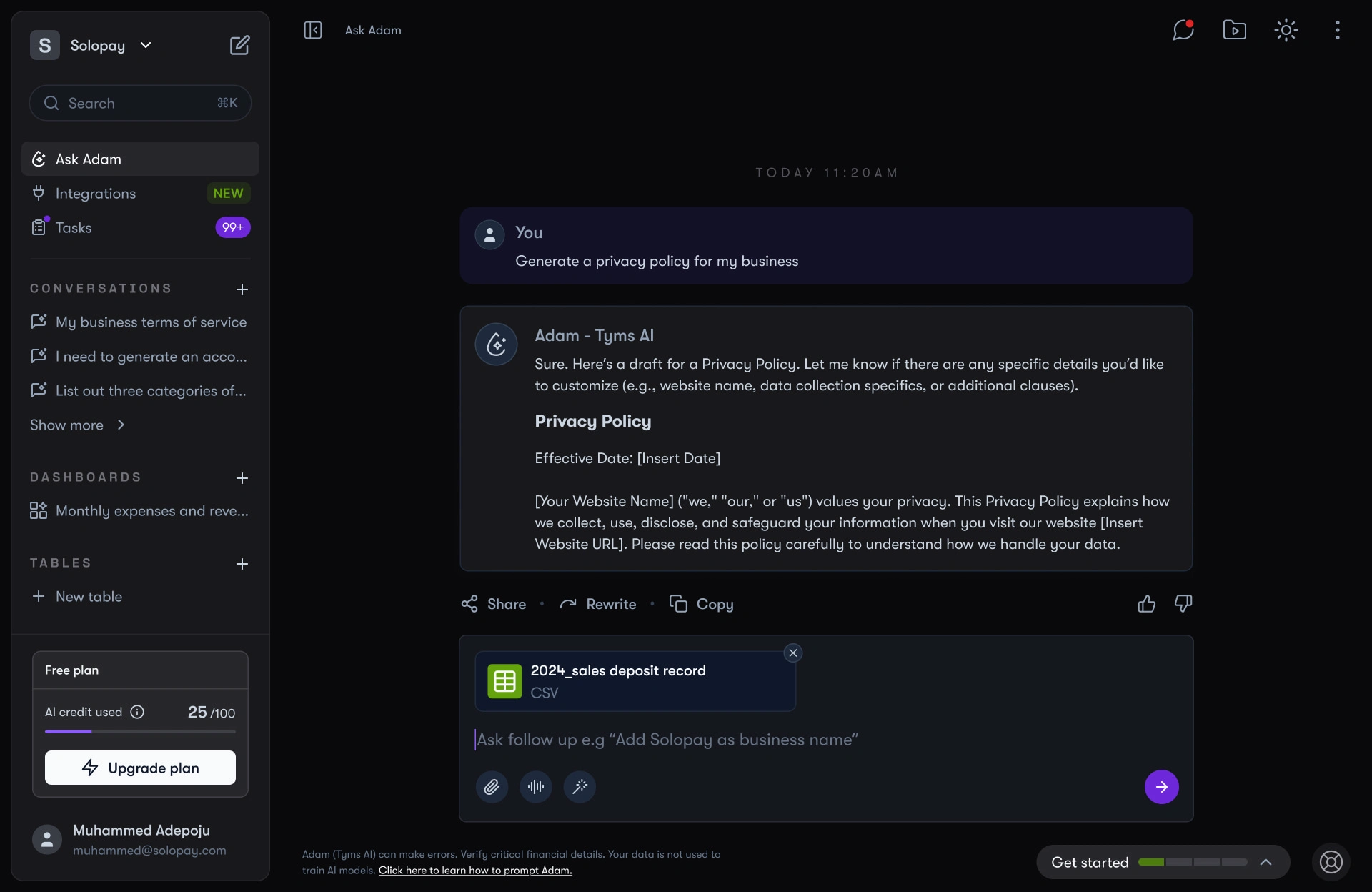 Designed Tyms AI (Adam), a conversational accountant that simplifies finance with AI, smart integrations, and user-friendly dashboards for businesses.