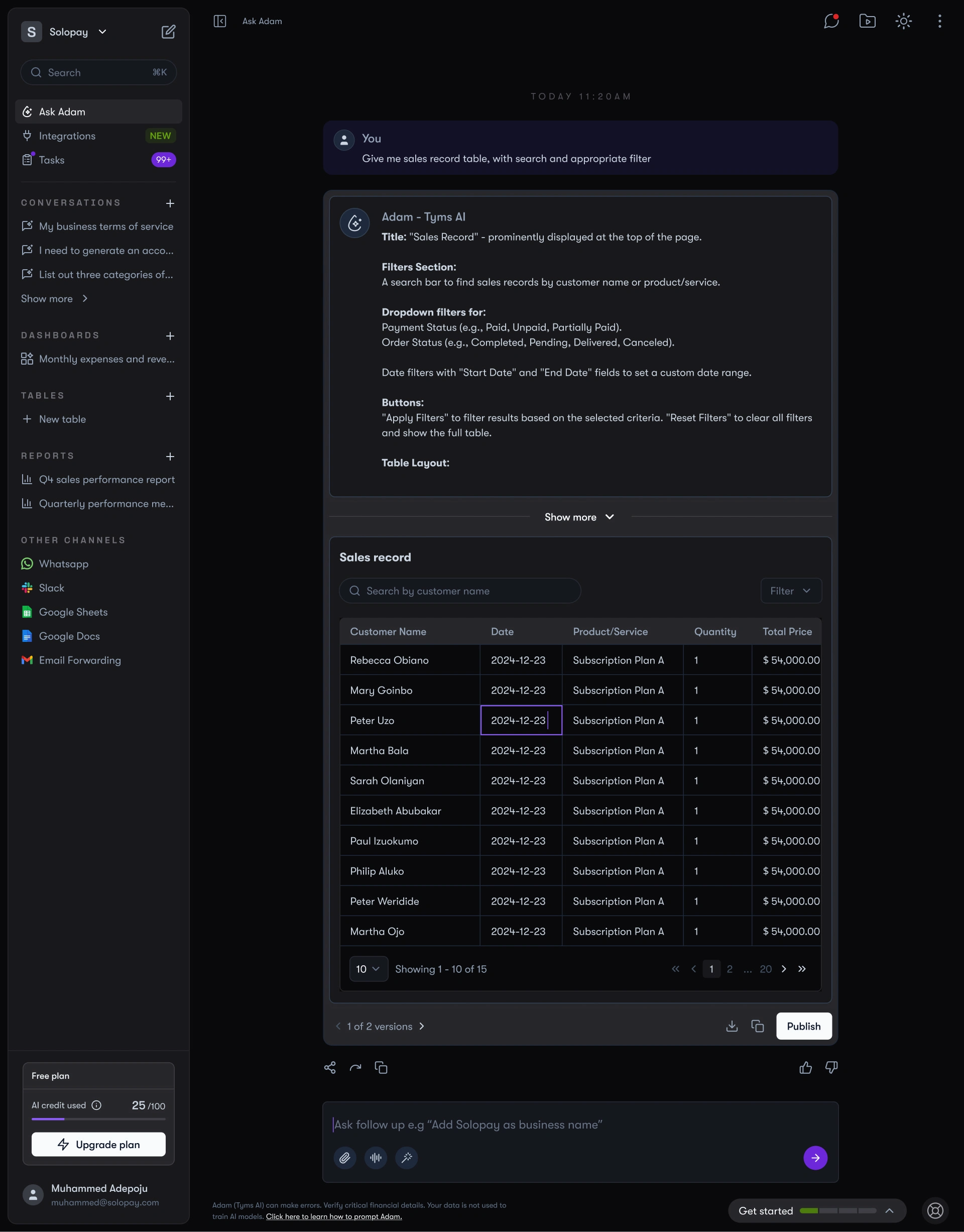 That contrast between accountants who needed depth and non-accountants who needed clarity gave me a clear lens. It showed me that if Tyms AI (Adam) was going to succeed, it couldn’t feel like a textbook or an exam. It had to feel like a conversation where you ask something in plain English and get back insights you can actually use.