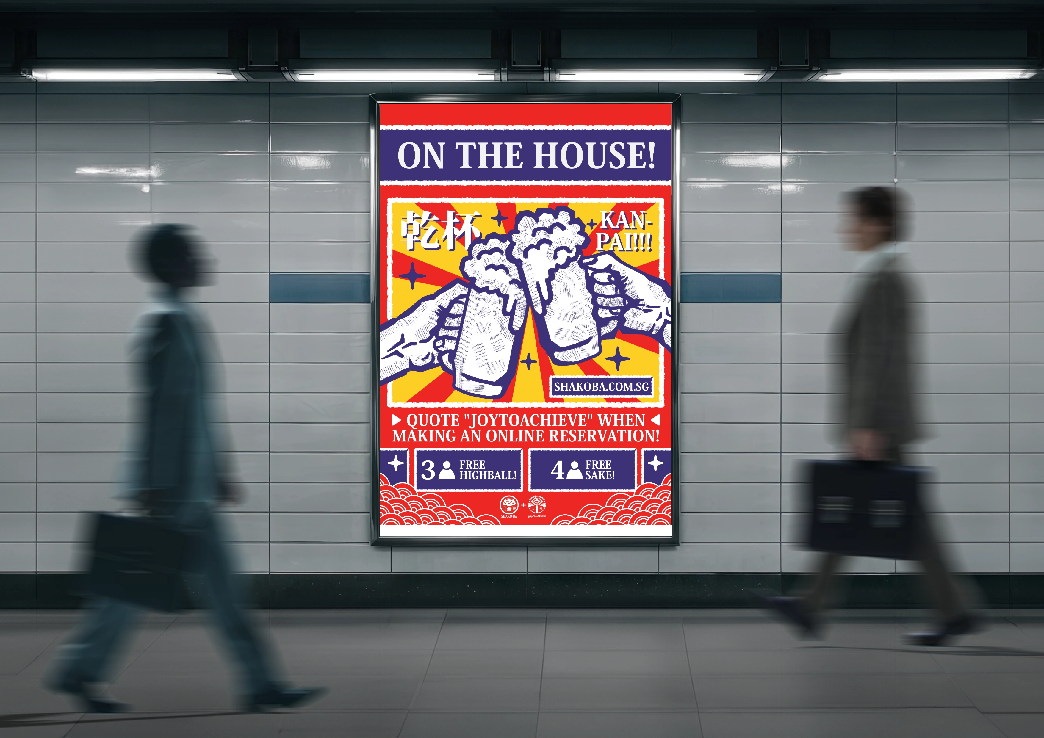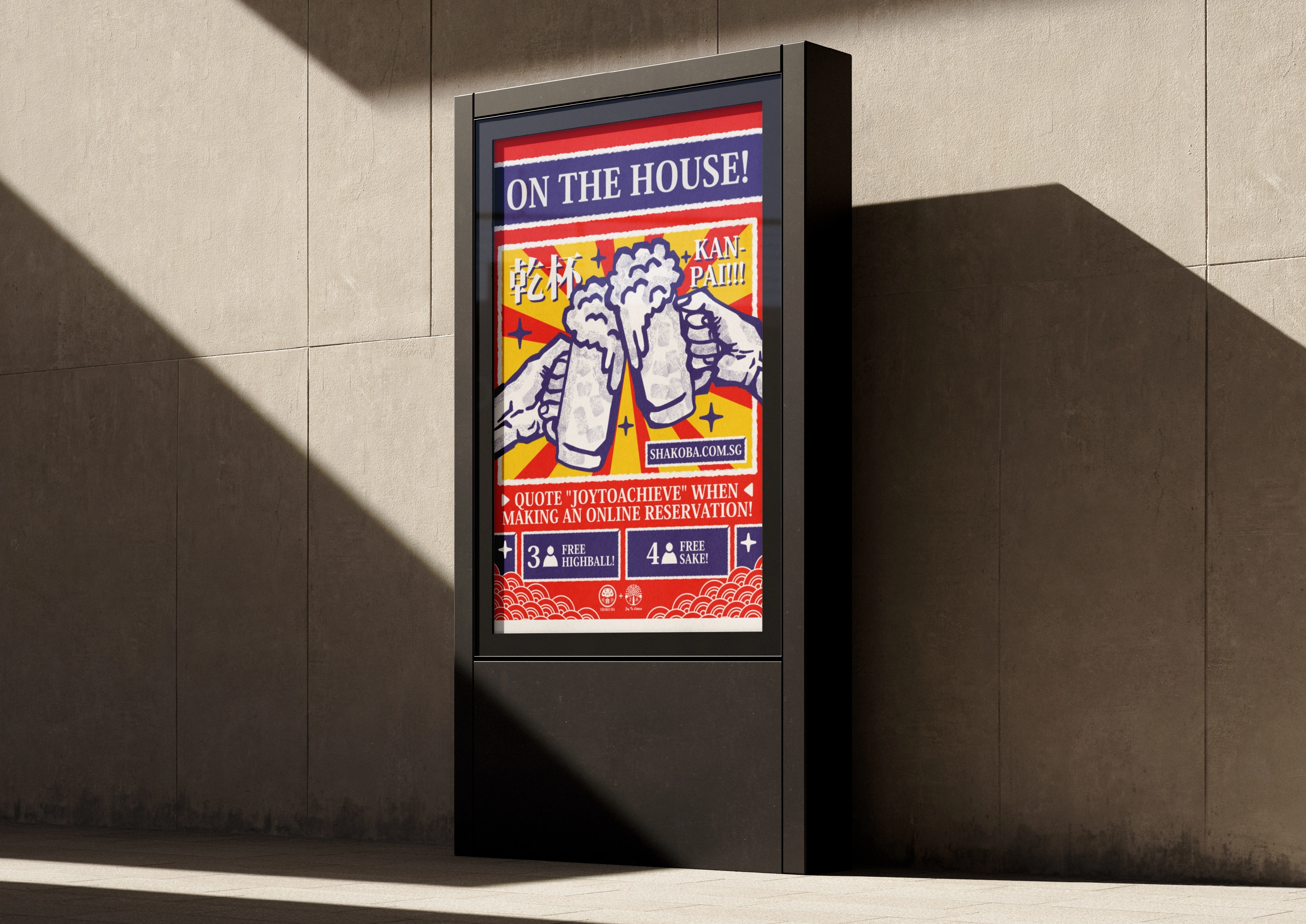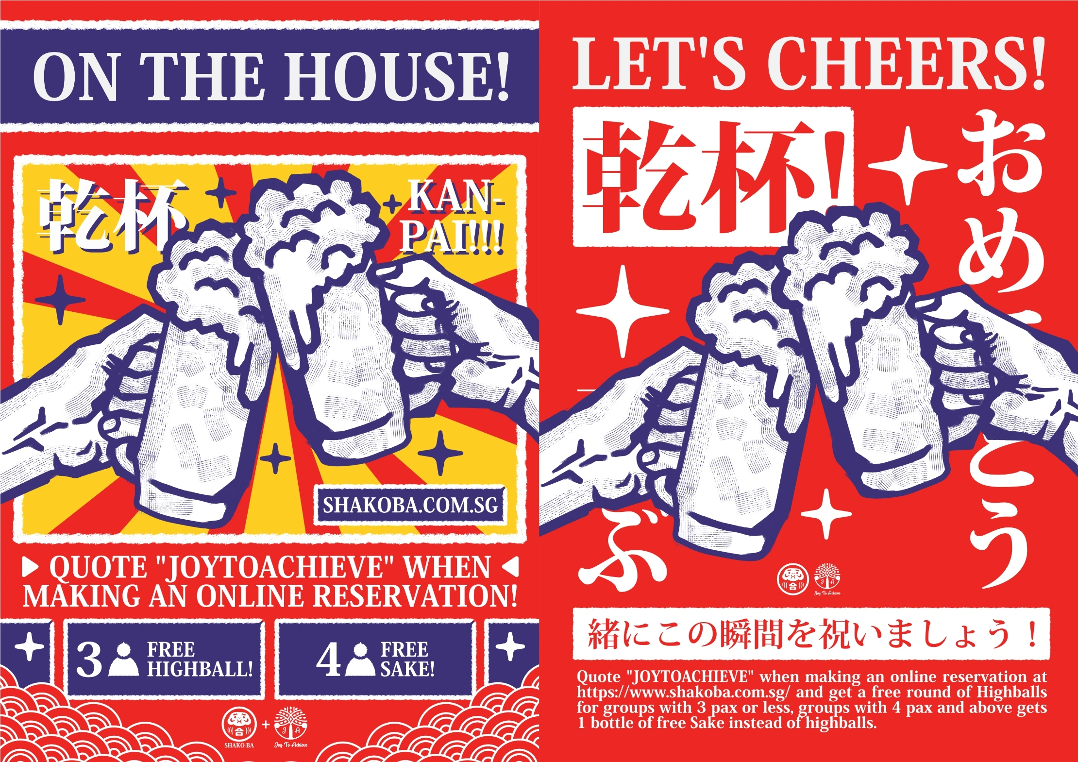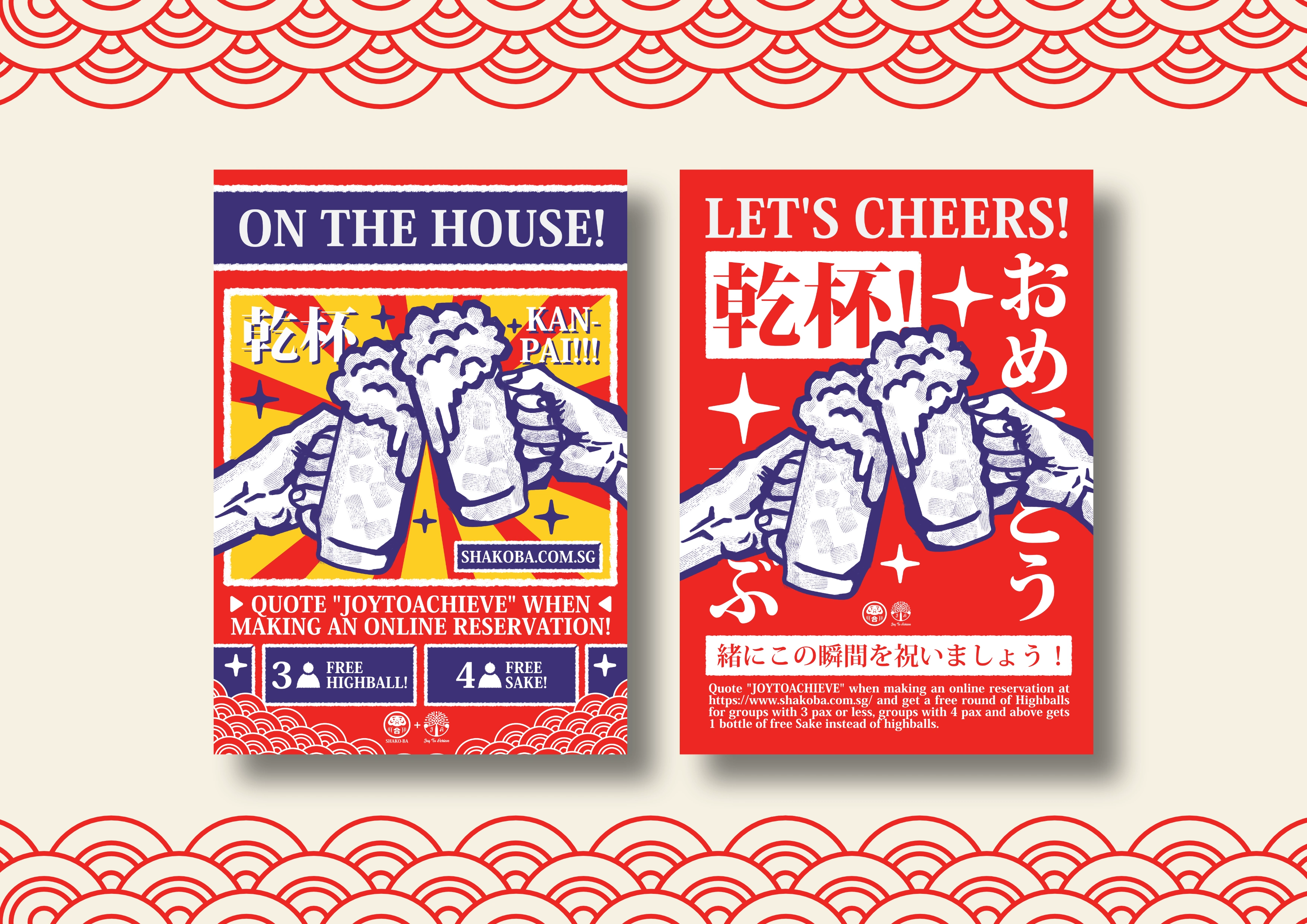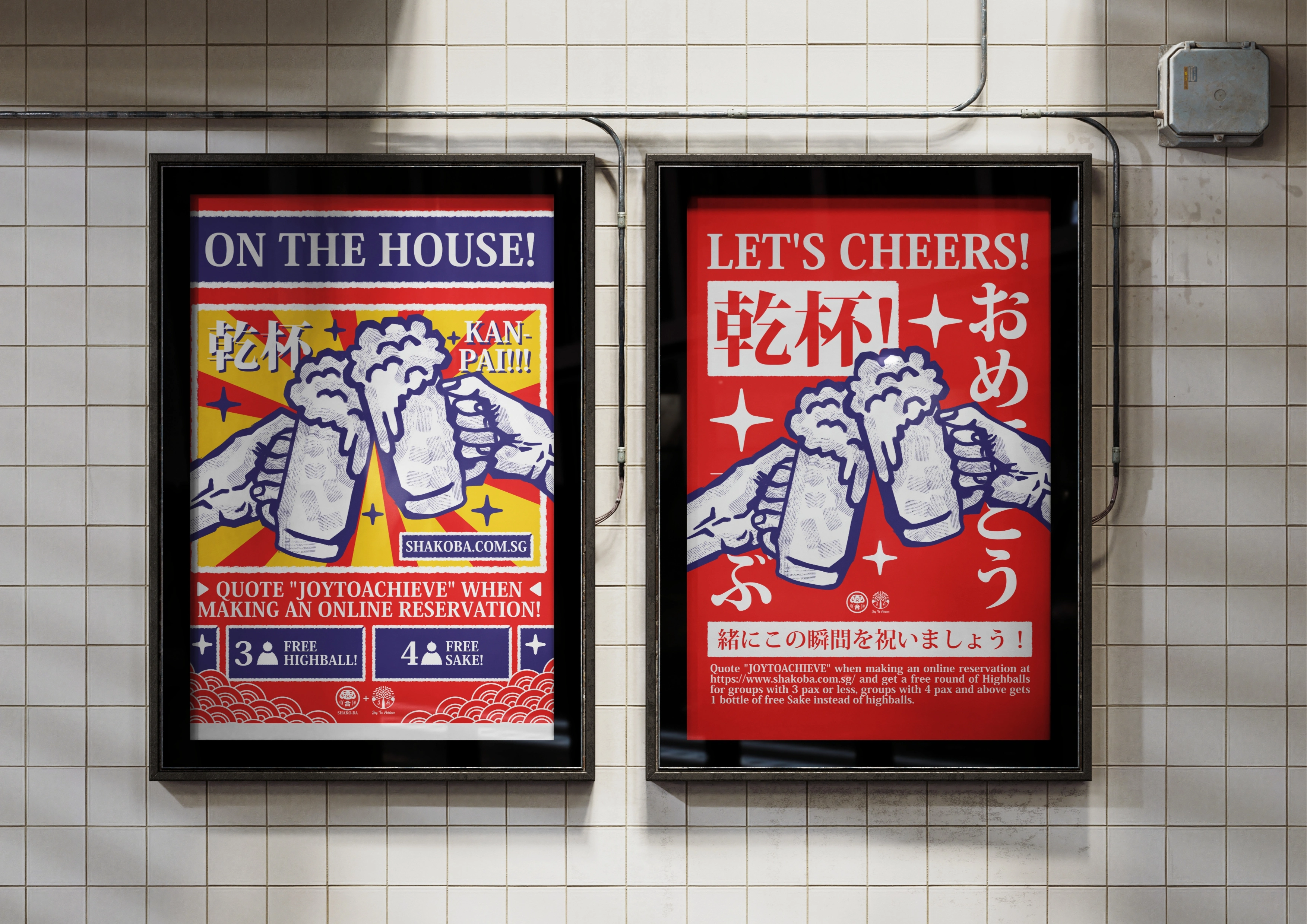 The goals to create a visually compelling poster to promote the collaboration events between Joy To Achieve (JTA) and Shako-Ba Bar, capturing a sense of fun, warmth, and nostalgia.