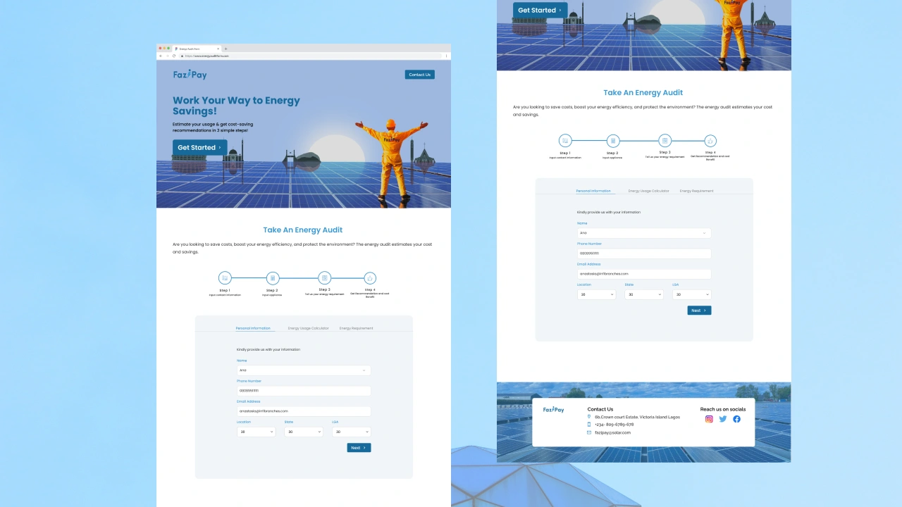 The FaziPay Energy Audit tool is designed to help users estimate their energy usage and receive cost-saving recommendations in three simple steps. The goal was to create a user-friendly and intuitive interface that seamlessly guides users through the process, ensuring they receive accurate and personalized energy-saving solutions.