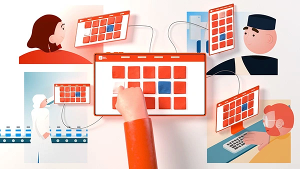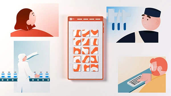 To emphasize the benefits of the application without showing it, it was important to focus on characters and other elements reminding us of the rigorous health safety standards.