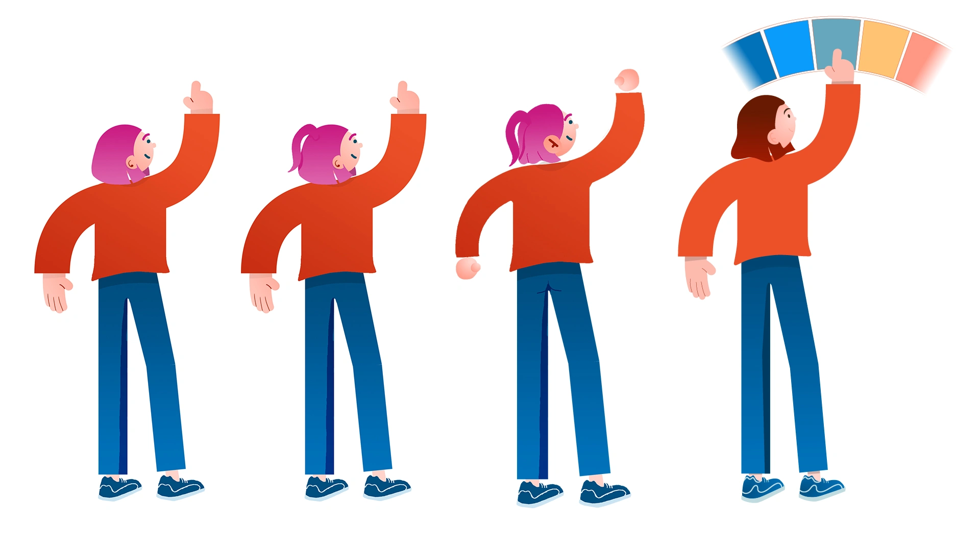 For the setting, we opted for delicate, pastel-colored backgrounds and characters without really defined faces. The background is there to set the scene, without taking precedence over the application.