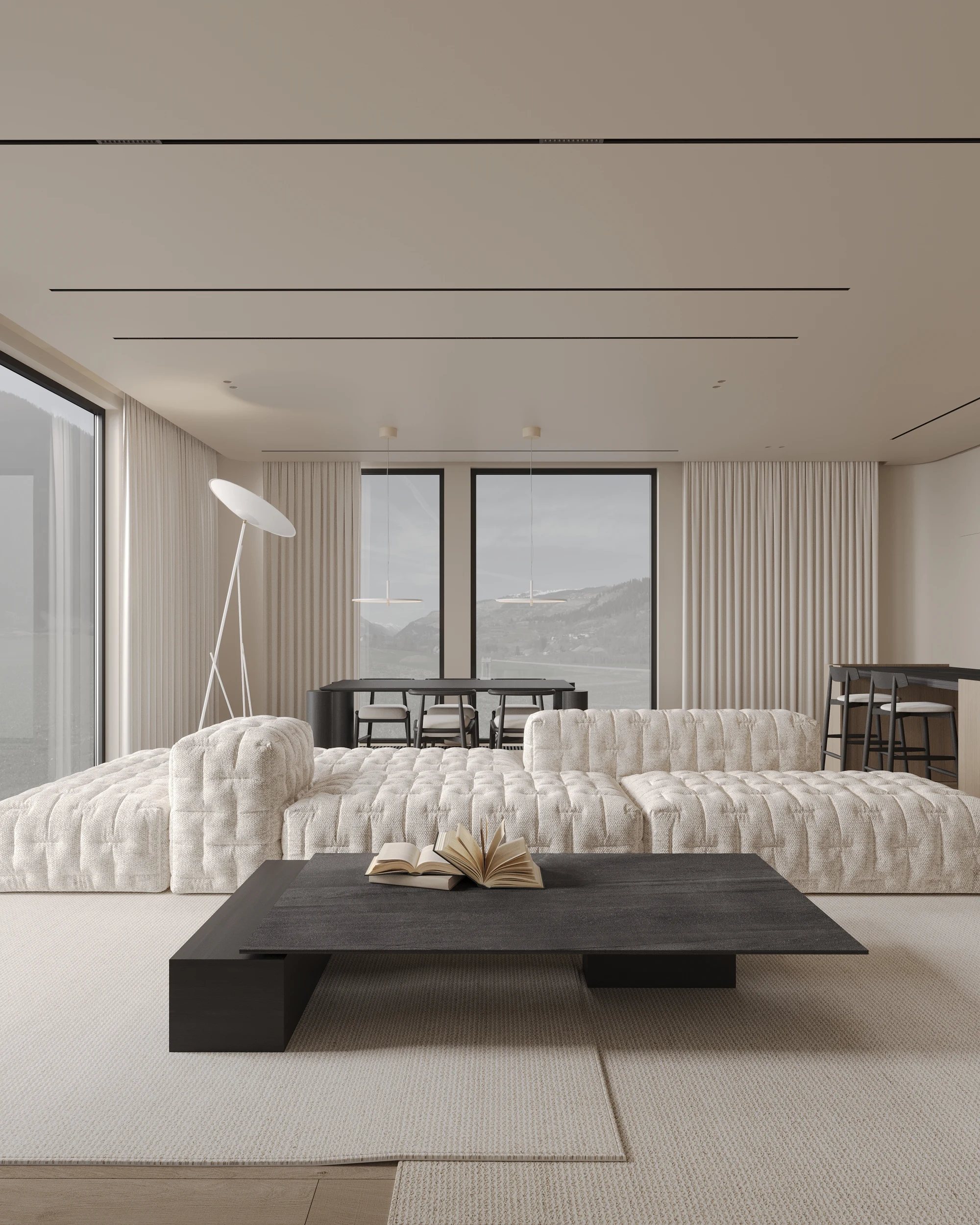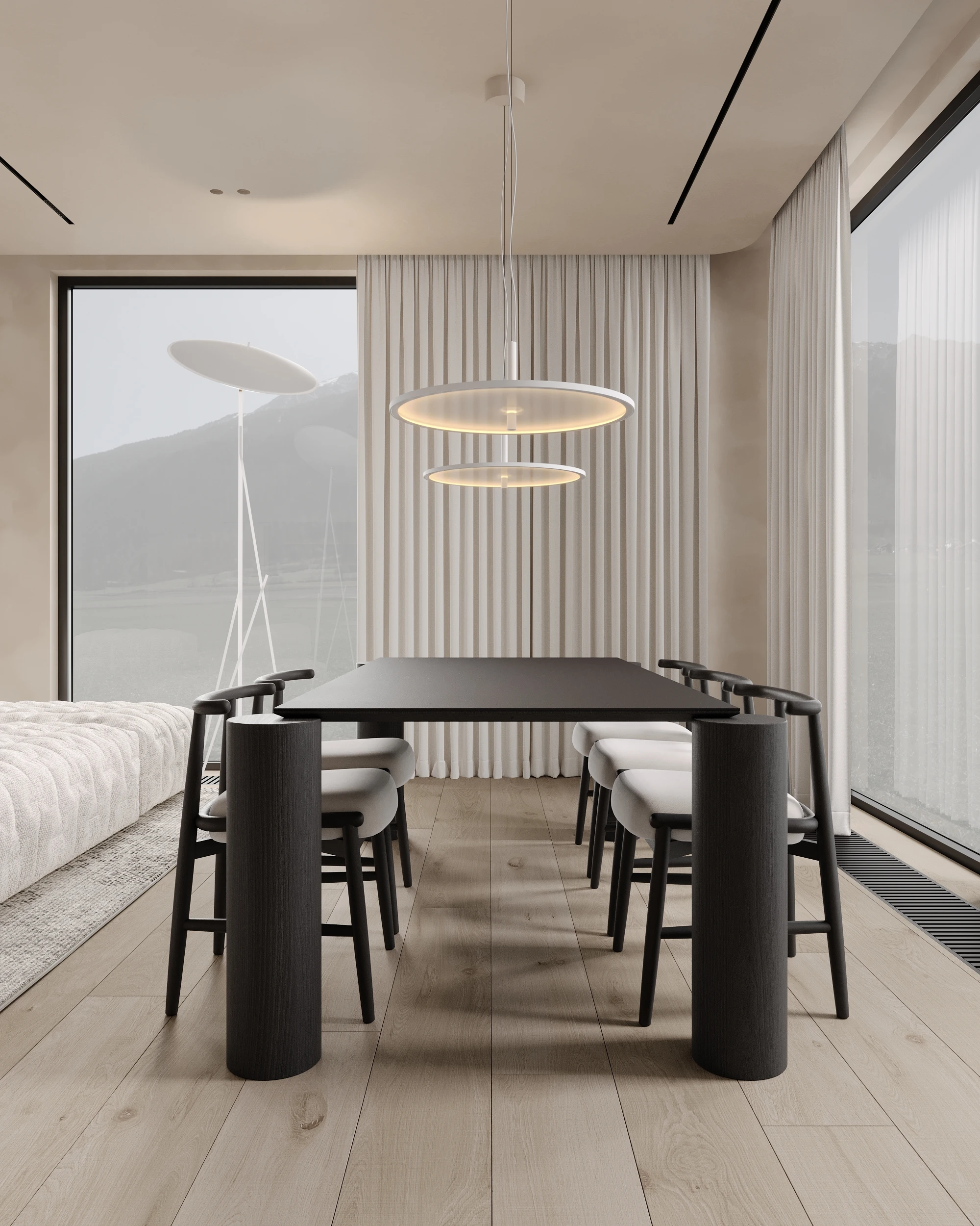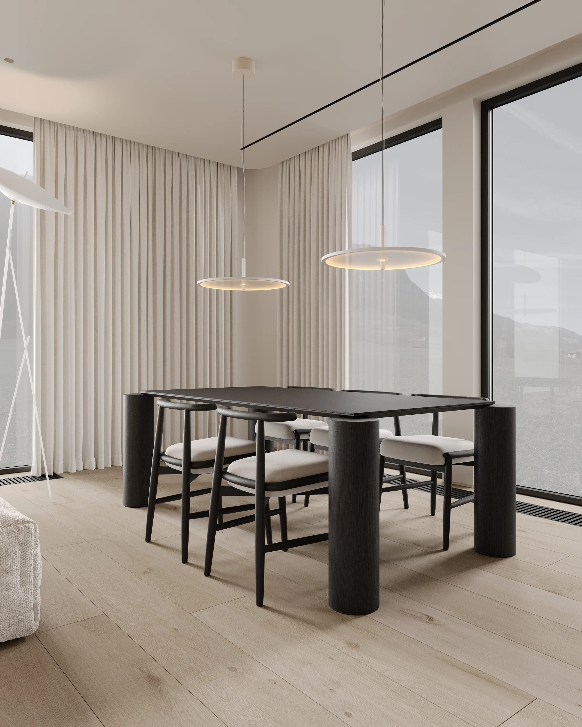 Introducing the "Laguna" dining table (04LA) from Palo Nero, measuring 200 cm x 100 cm. This elegant piece embodies a refined dark minimalist style, perfect for modern interiors. The design highlights sleek lines and rich textures, creating a serene atmosphere ideal for both intimate gatherings and larger celebrations. This 3D render showcases the Laguna table in a sophisticated dark interior, exemplifying luxury and versatility in furniture design.