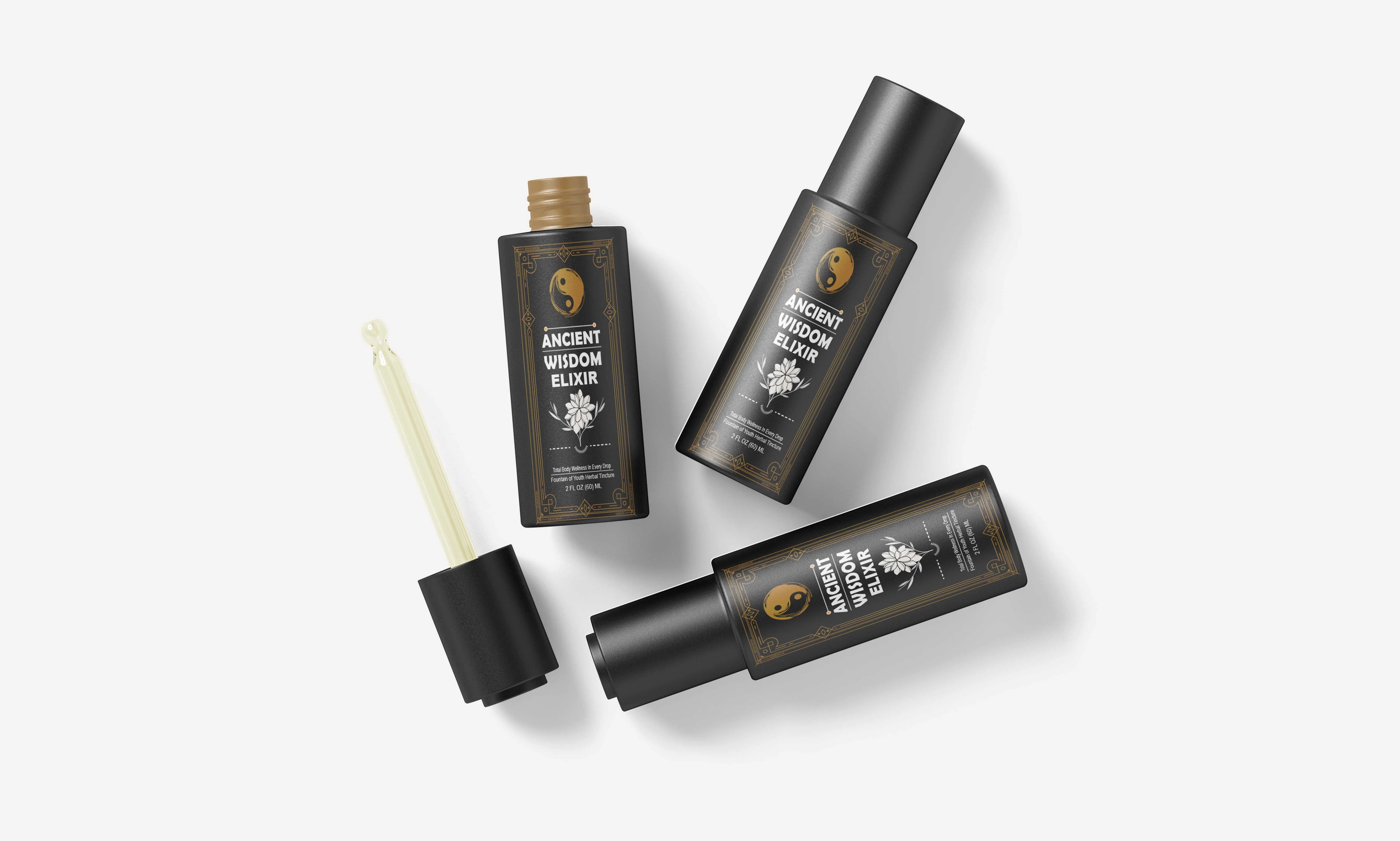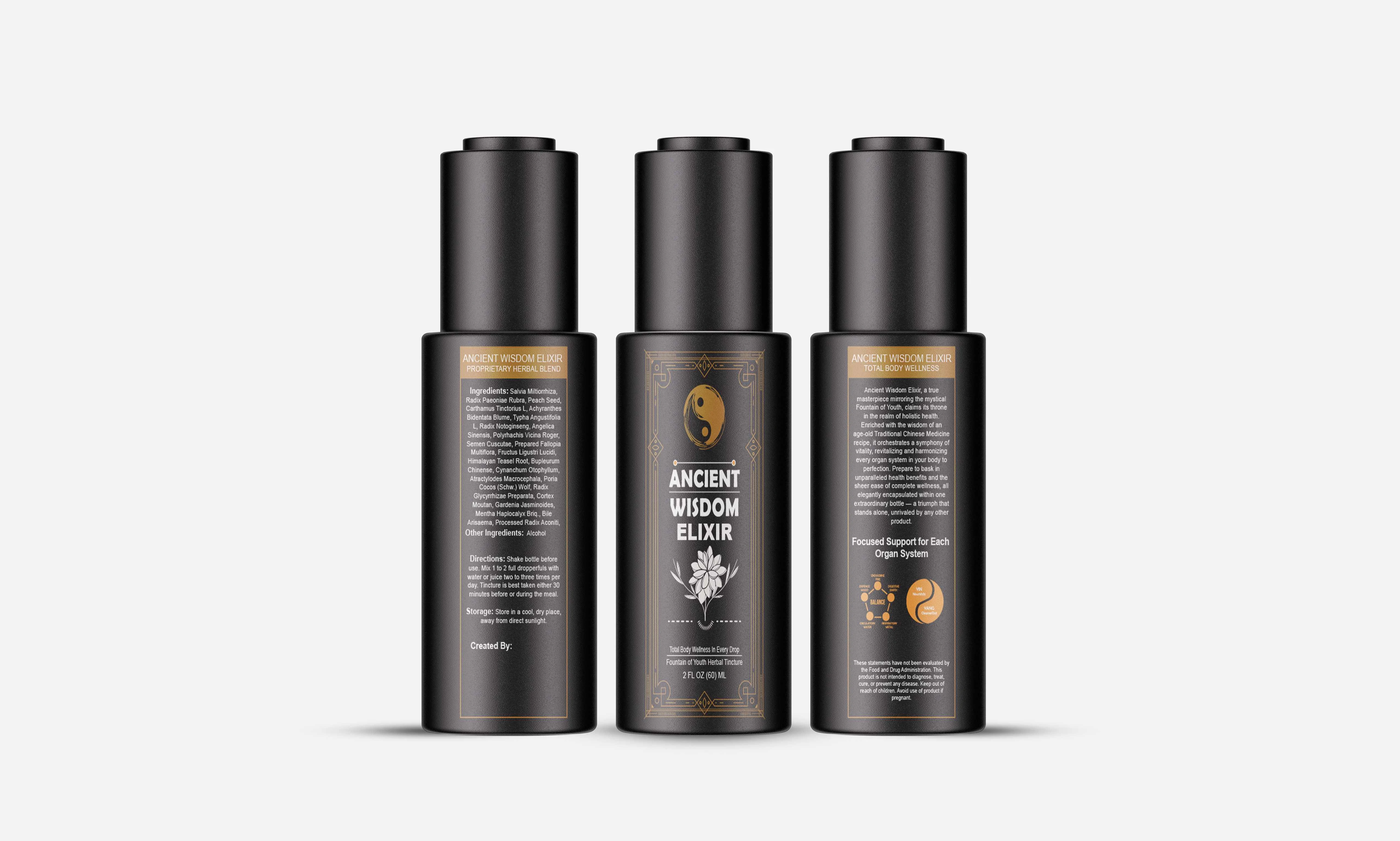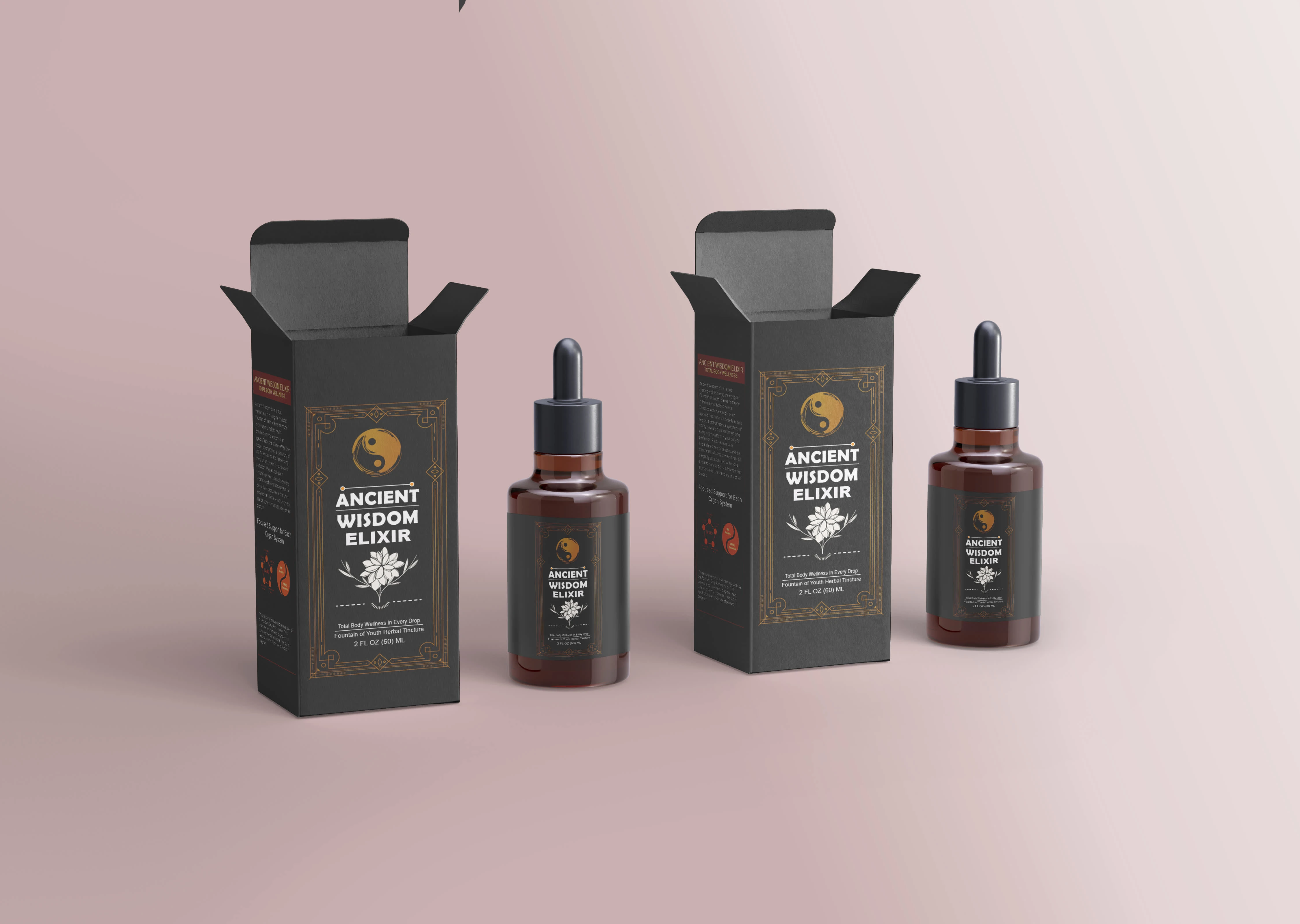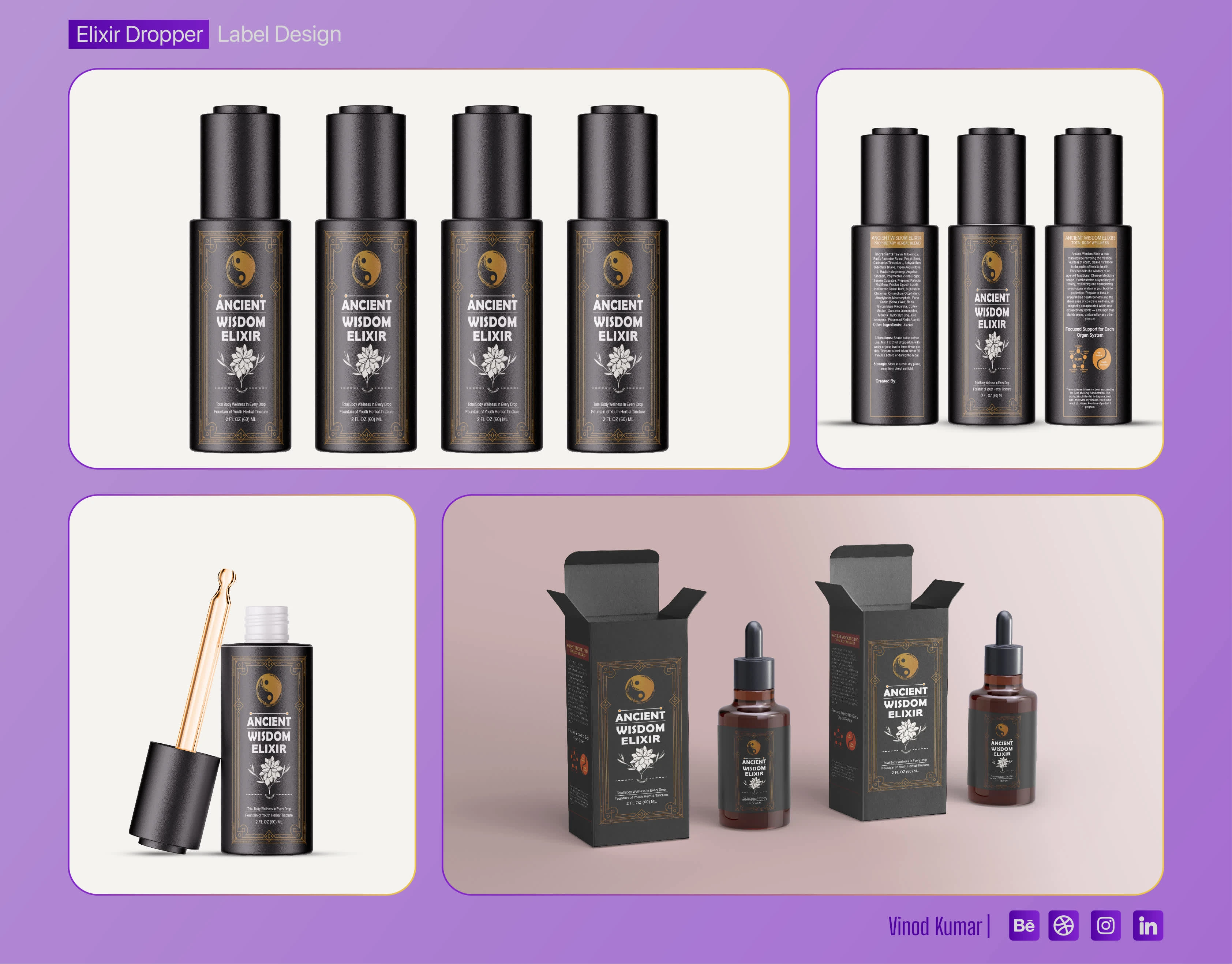 I have completed the design for an elixir label for a U.S. client, incorporating their feedback and preferences.