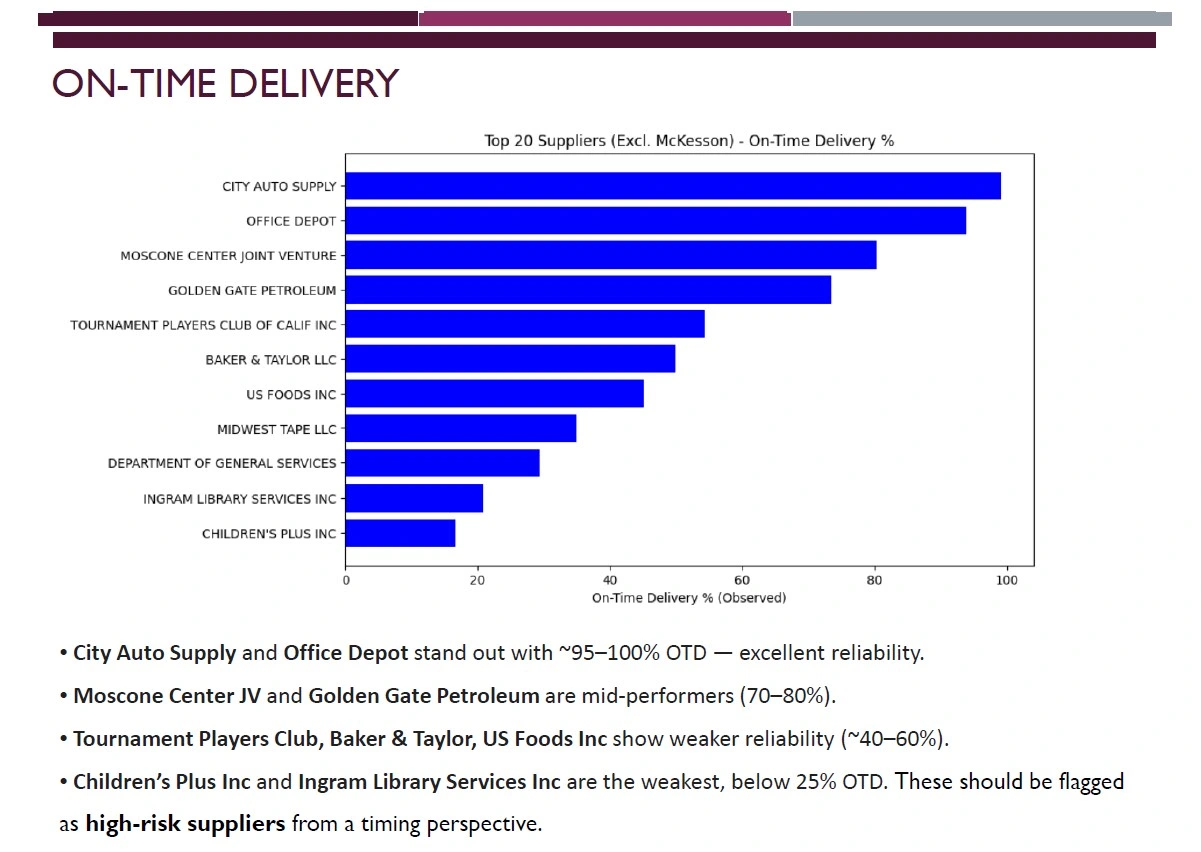 Built a comprehensive Supplier Risk & Performance Analysis Tool using real-world procurement data from San Francisco’s public procurement dataset.