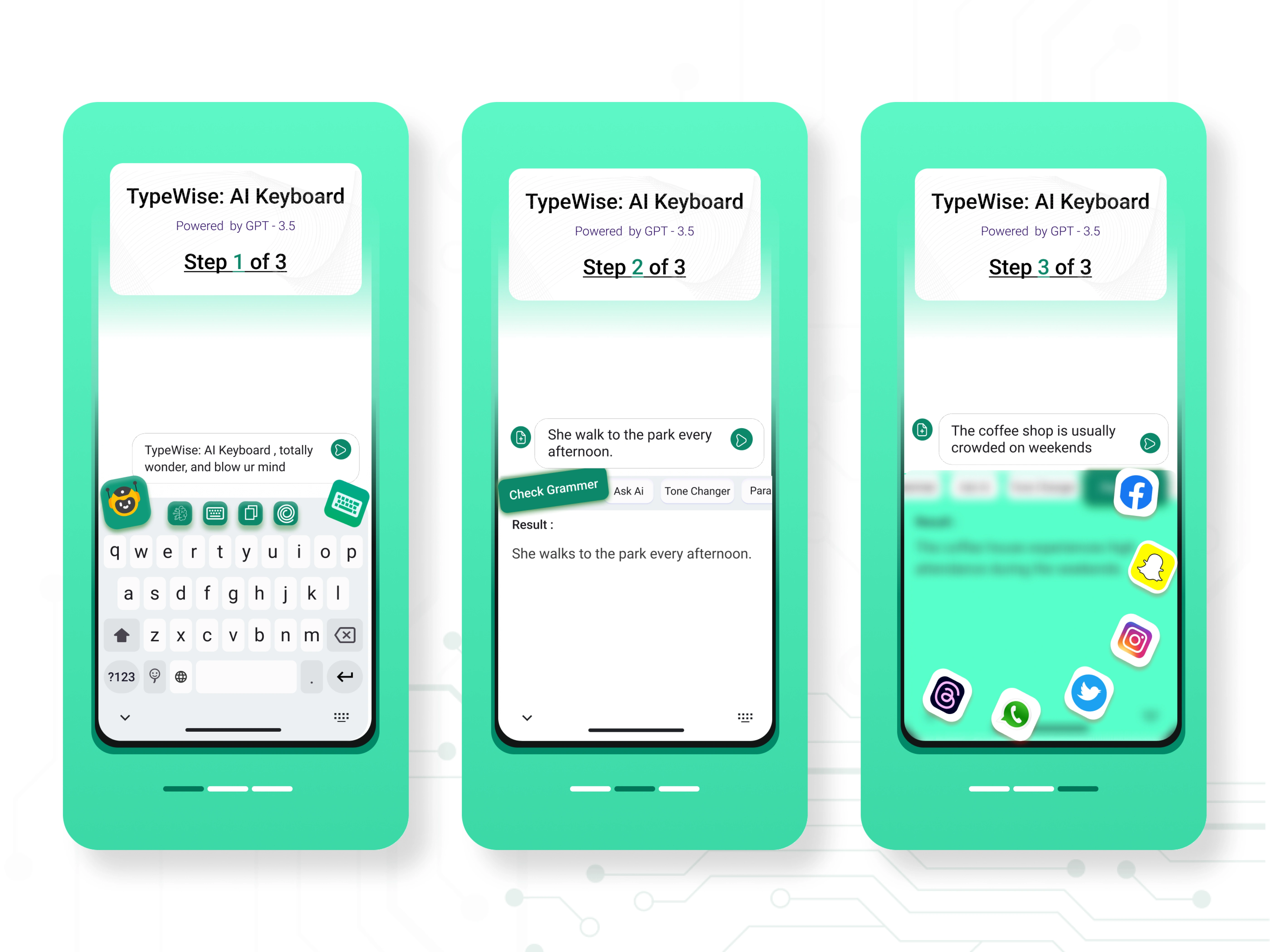 An elegant onboarding experience for an AI Keyboard App that introduces users to predictive typing, smart personalization, and language flexibility.
