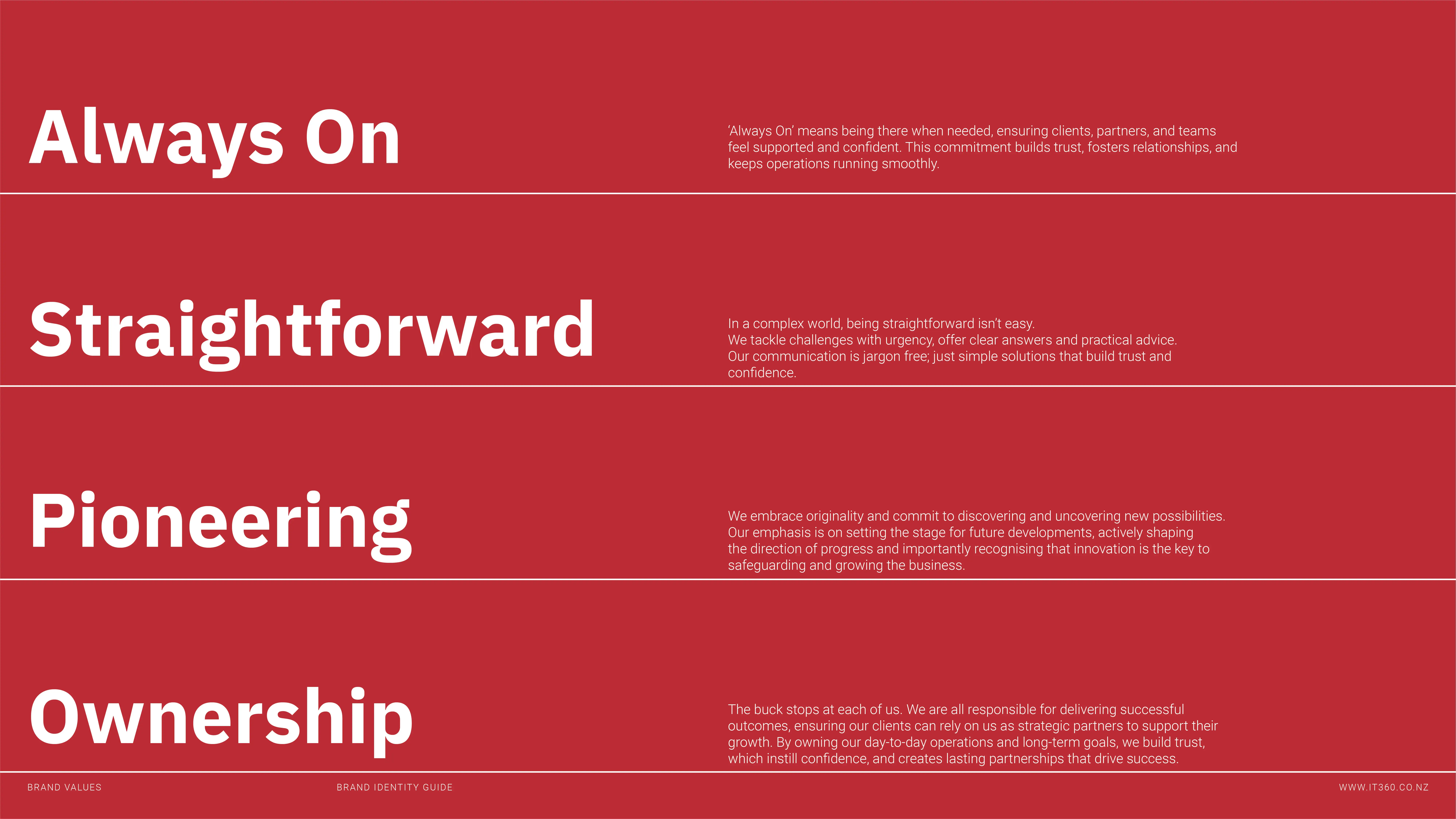 My role was to translate that mission into a unified brand presence. I created a full Brand Book that establishes visual structure, brand voice, color and type rules, and content standards — ensuring that IT360 presents itself with clarity, confidence, and consistency.