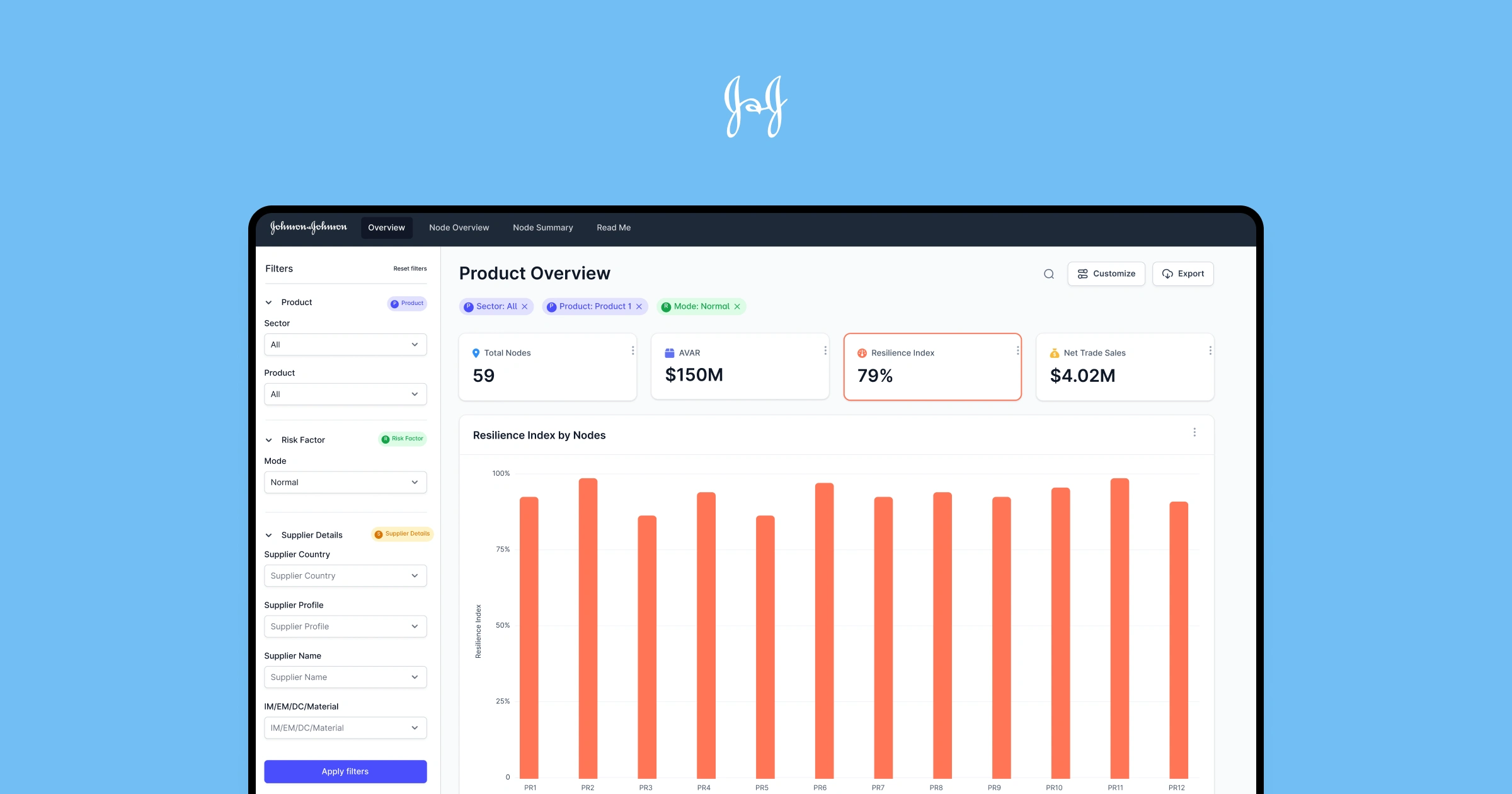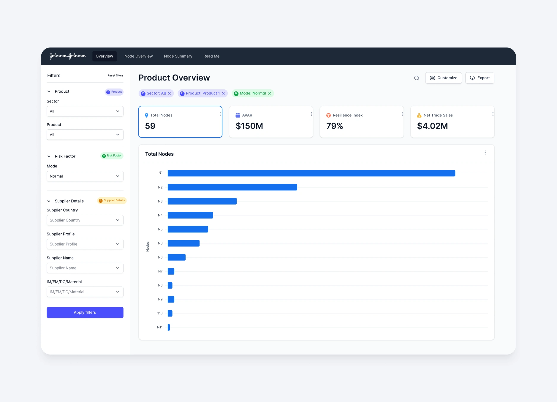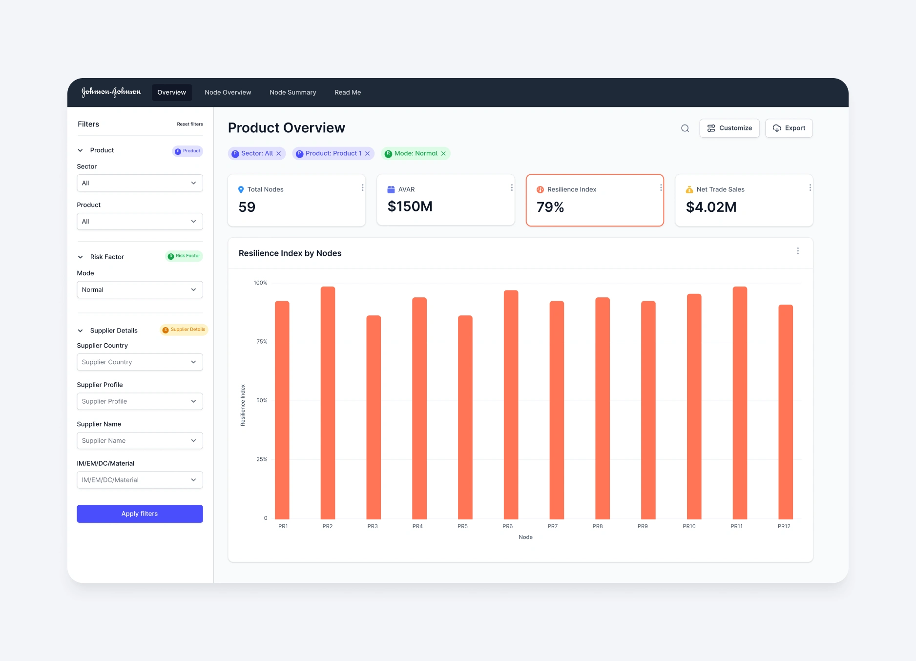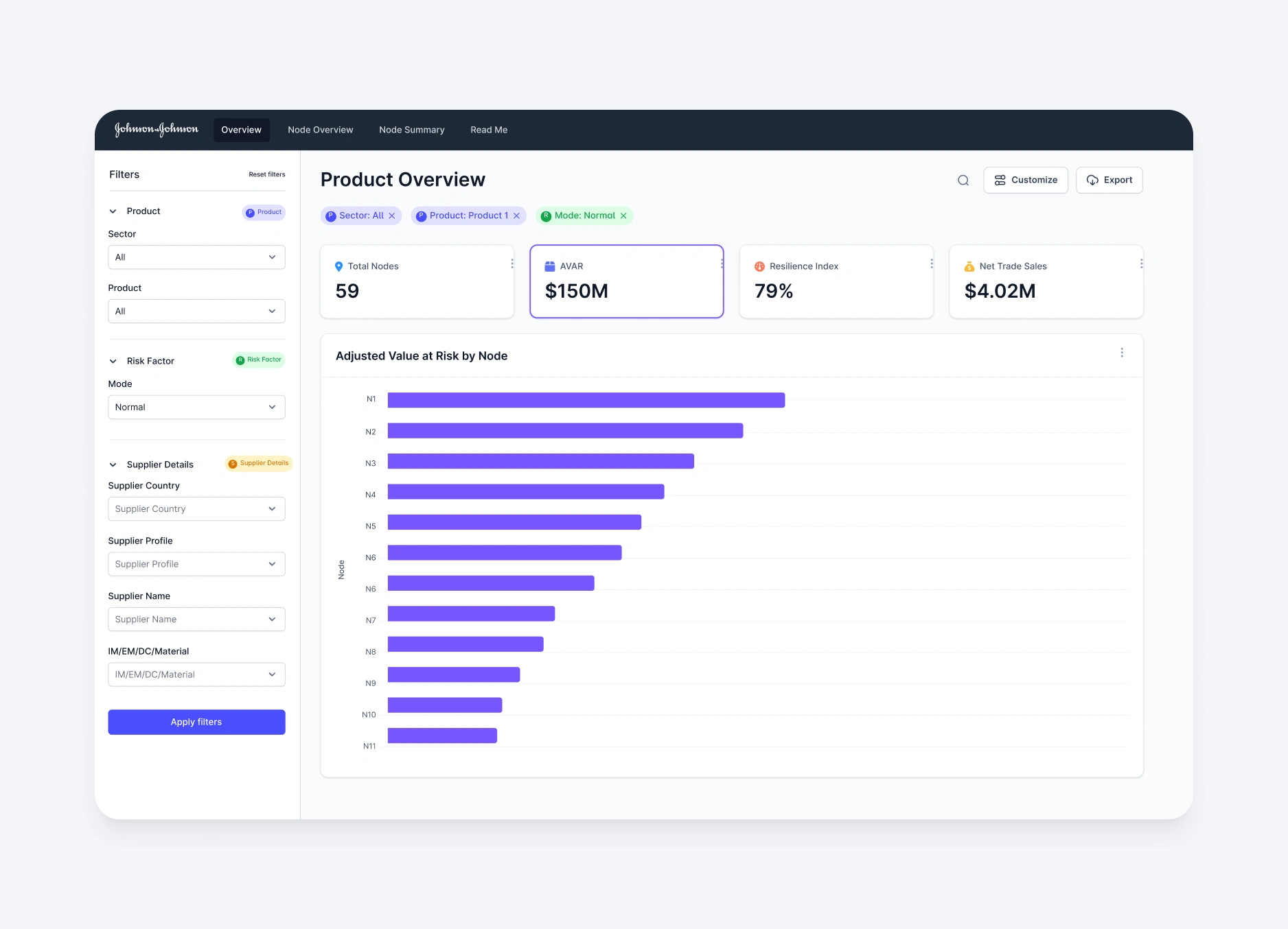 Redesigned Johnson & Johnson's supply chain dashboard for better usability and adoption.