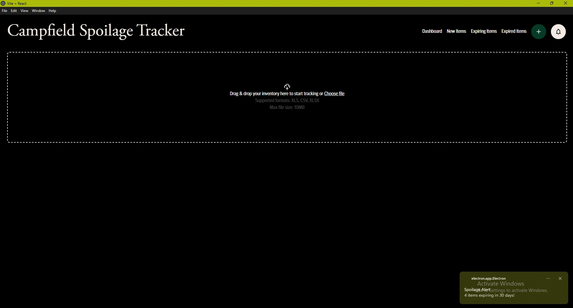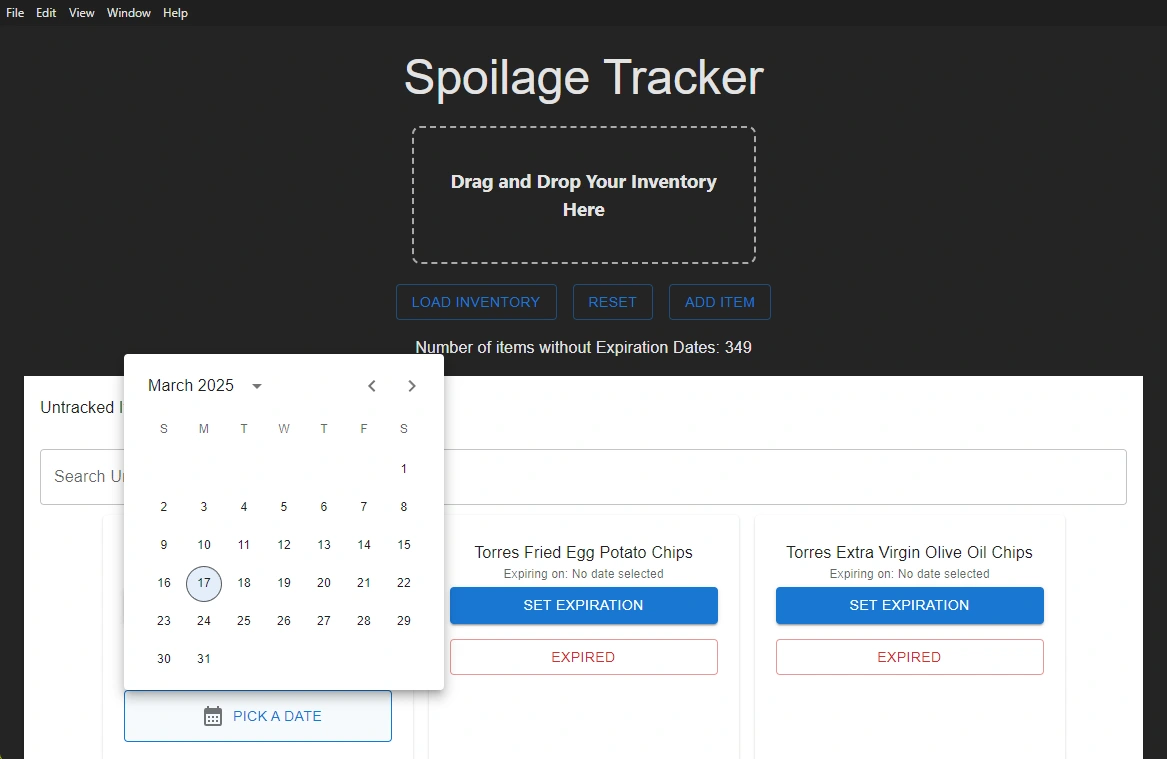 Spoilage Tracker helps grocery stores manage inventory by tracking expiration dates of multiple batches of items. The app provides email and desktop notifications to ensure nothing goes to waste.