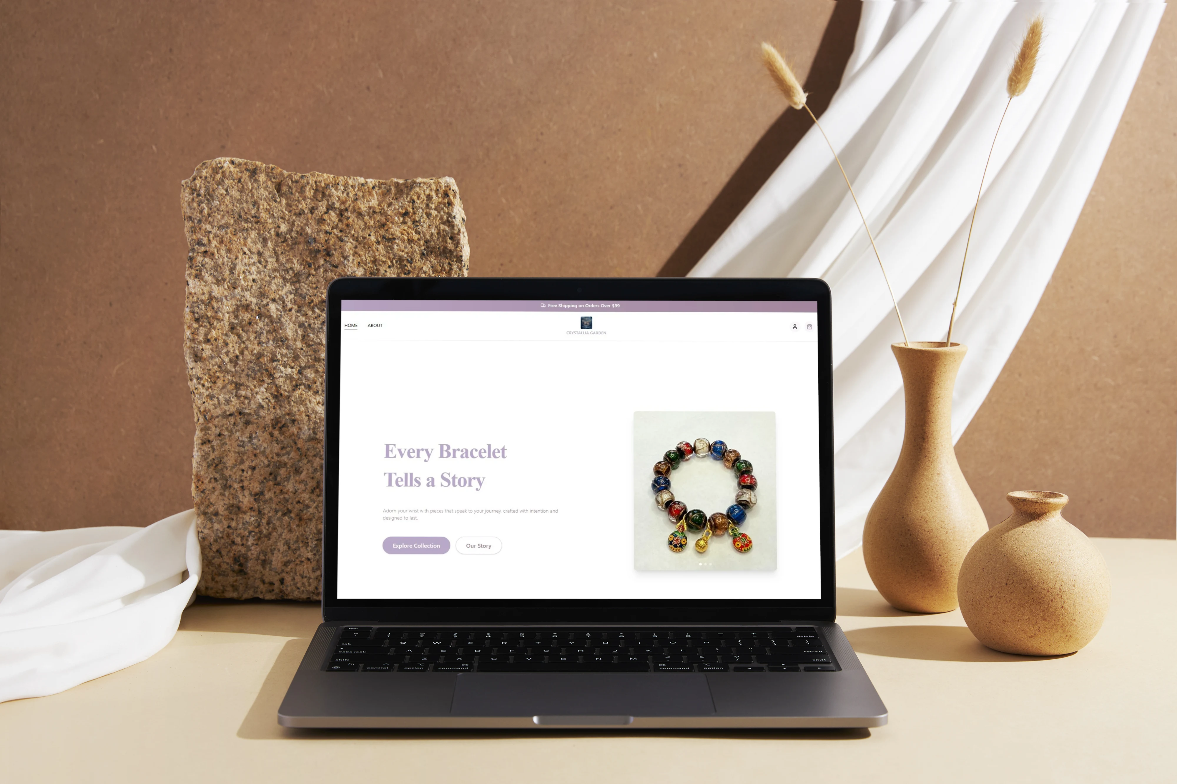 A fast, elegant e-commerce experience for a handcrafted crystal bracelet brand.