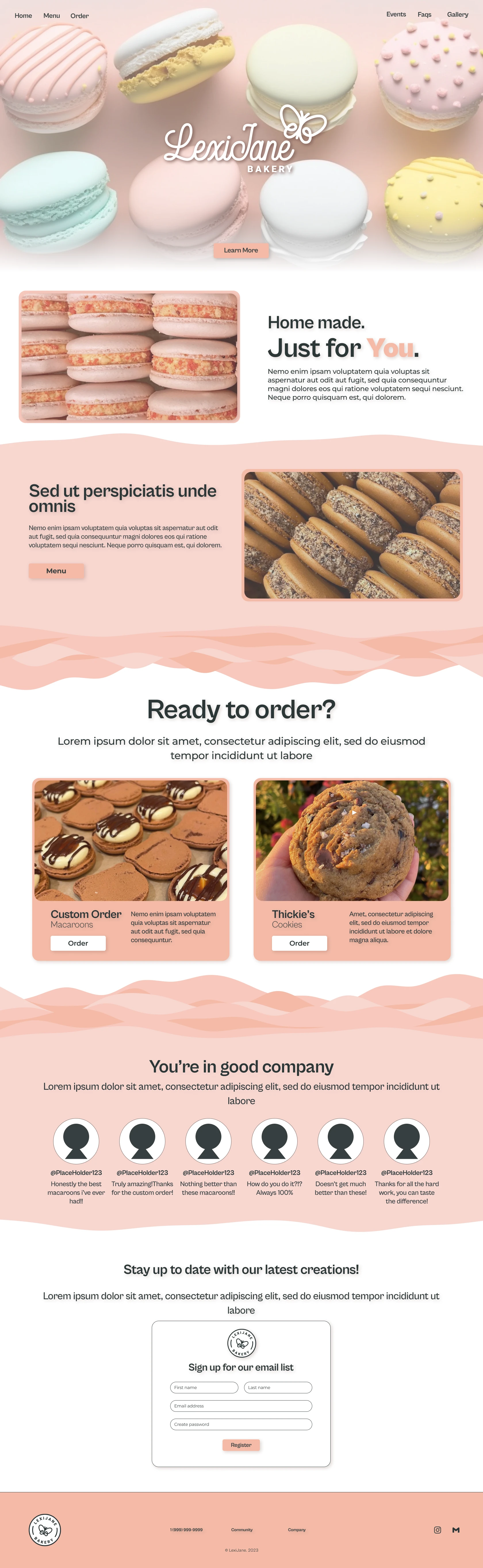 LexiJane Bakery already had a functioning site, but it lacked modern visual appeal and clarity in user flow. I was asked to redesign the site on a minimal budget, using only the existing brand assets and a fixed structure.