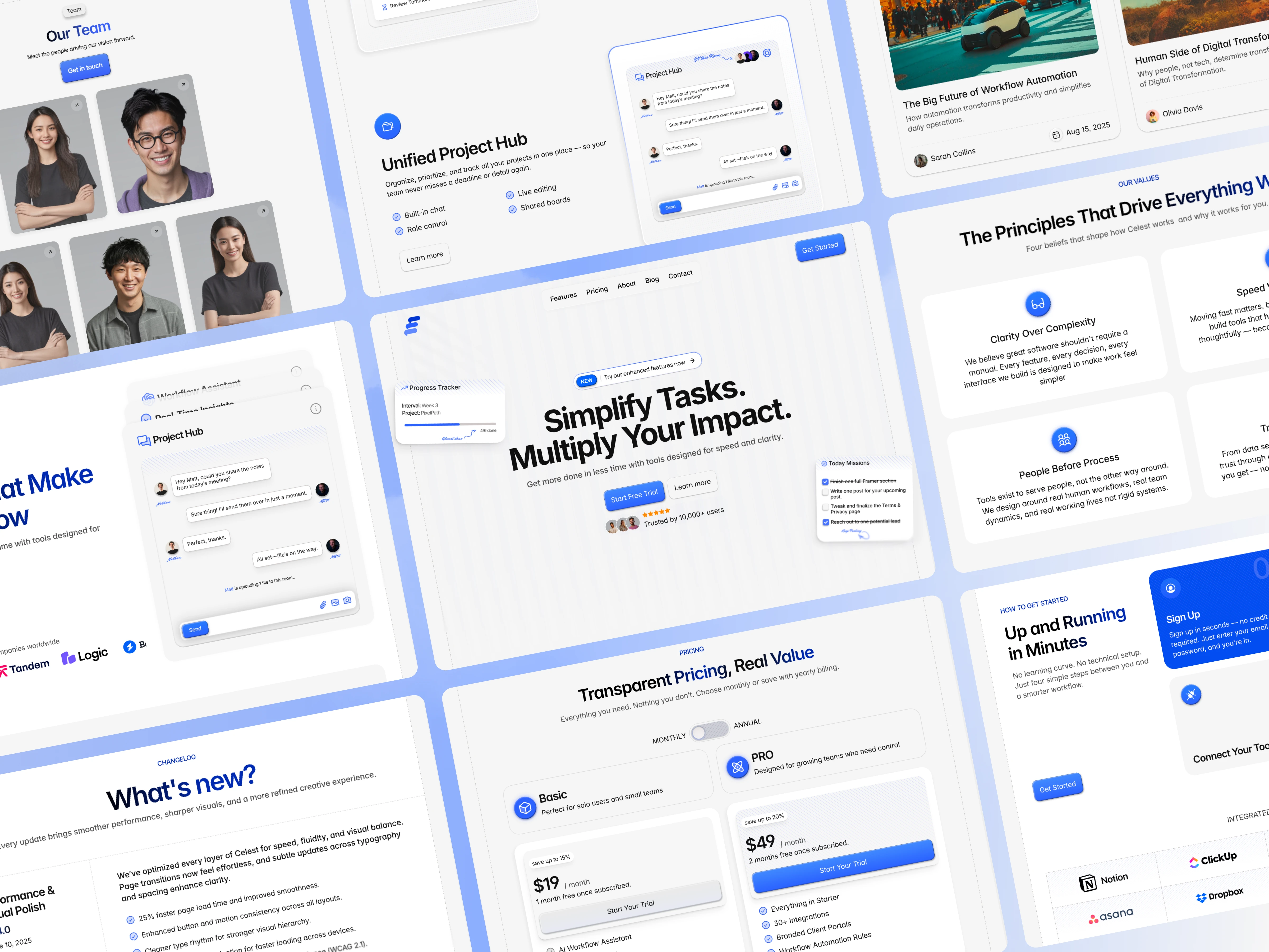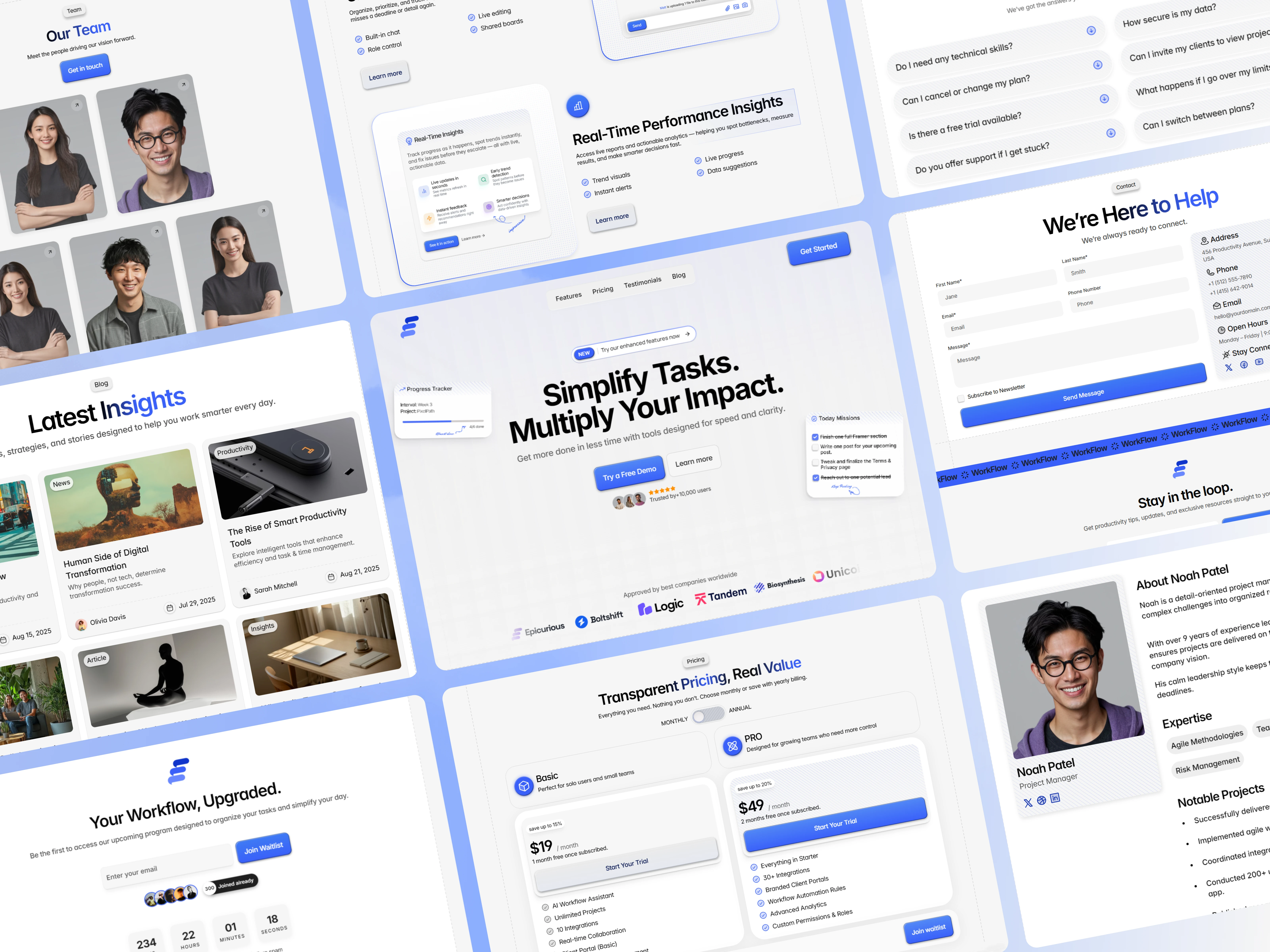 This project involved designing and developing the official website for Celest, a productivity SaaS platform built to simplify tasks and enhance team workflows. The focus was on creating a clean and professional design that communicates Celest’s value proposition — “Simplify Tasks. Multiply Your Impact.” The website showcases the platform’s core features, transparent pricing plans, and client testimonials, while also integrating a blog and FAQ section to build trust and support users. With clear calls-to-action and a responsive layout, the site was crafted to drive conversions & highlight Trust.