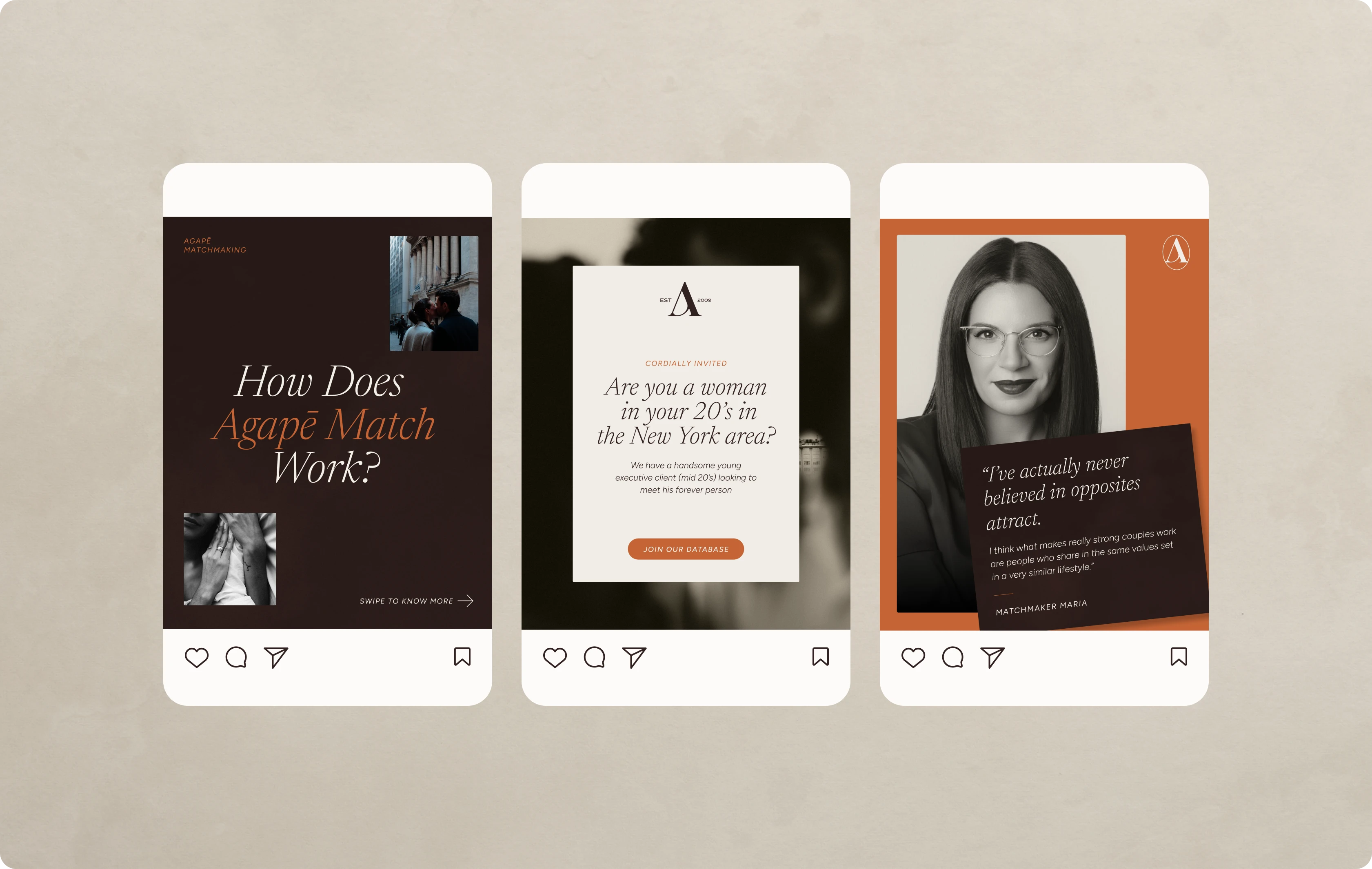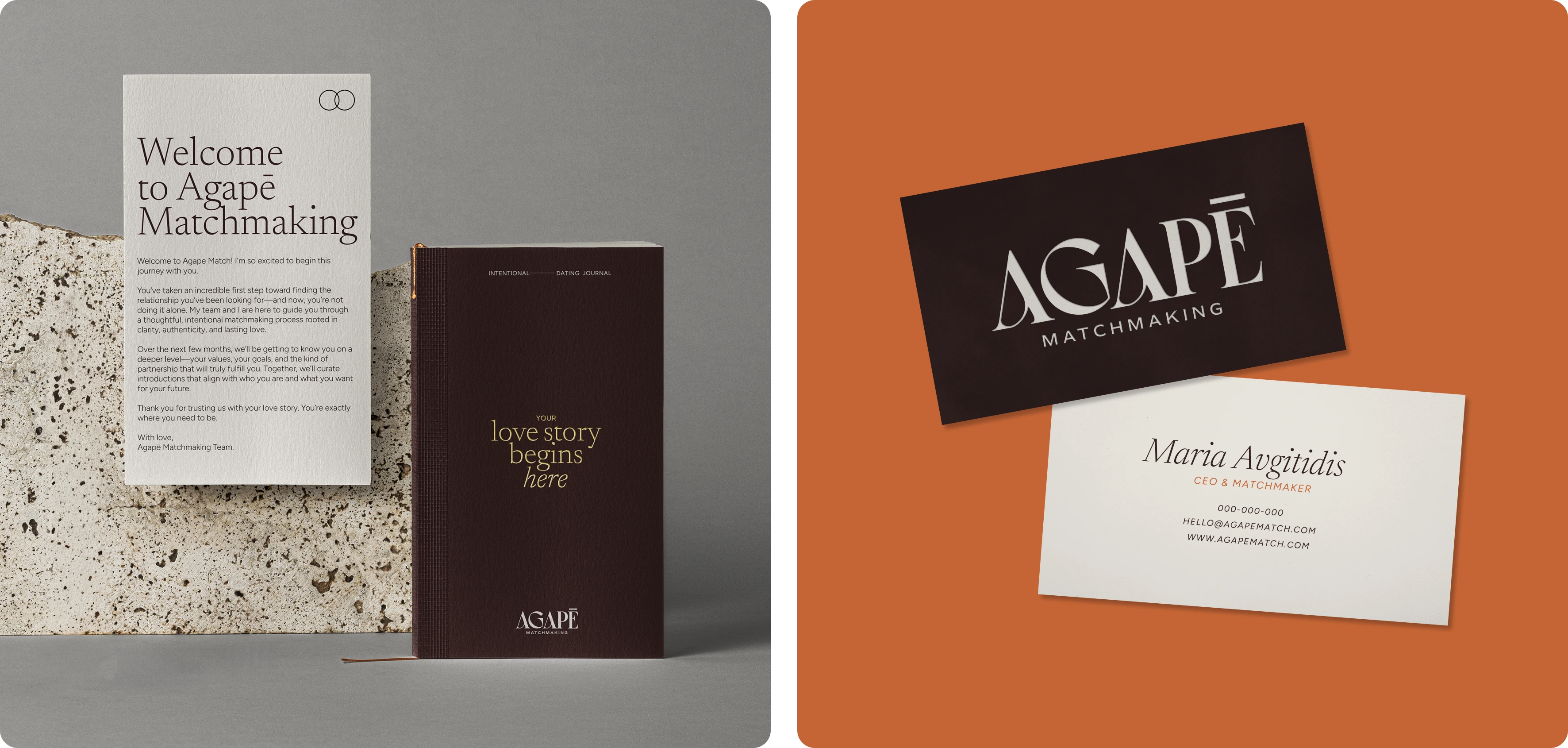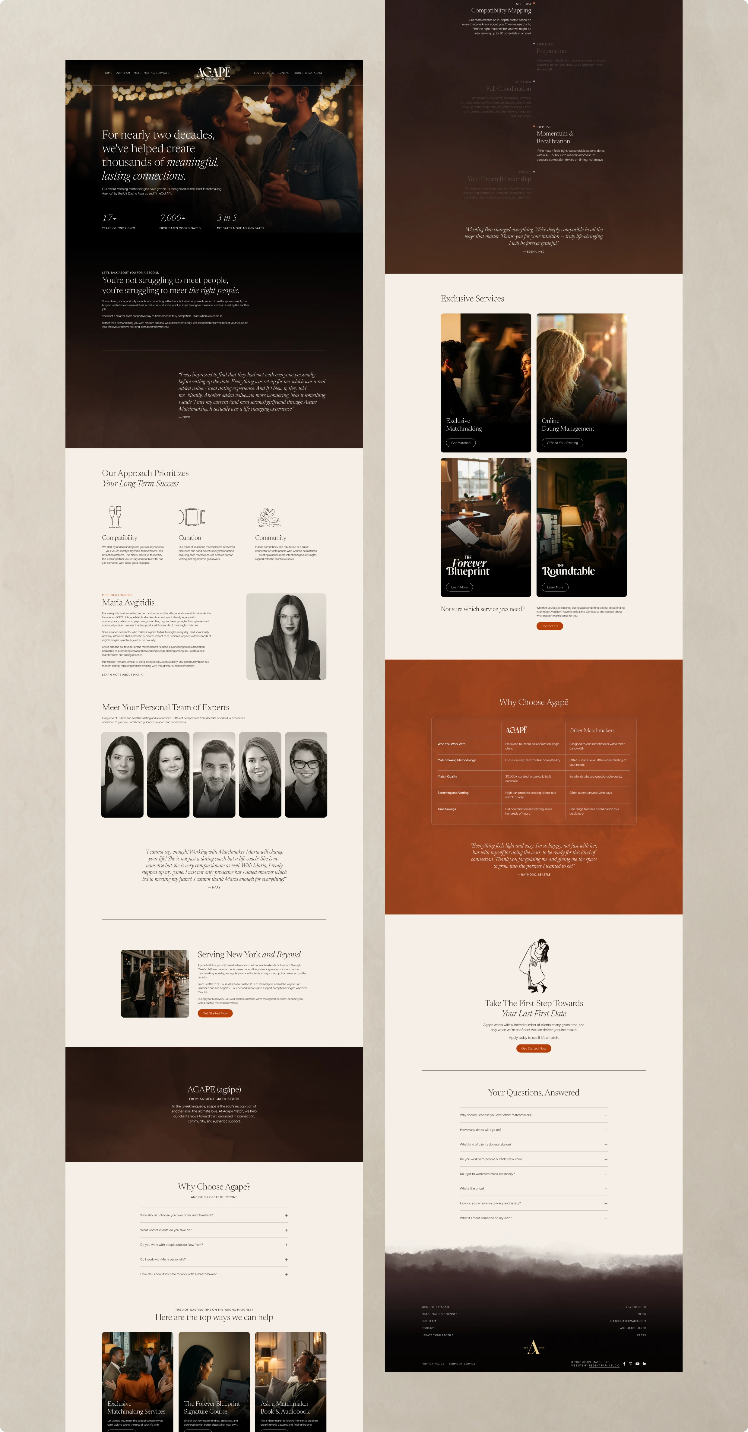 Elegant rebrand and custom website for Agapē Matchmaking—built to reflect the luxury, trust, and emotional depth behind every love story they create.