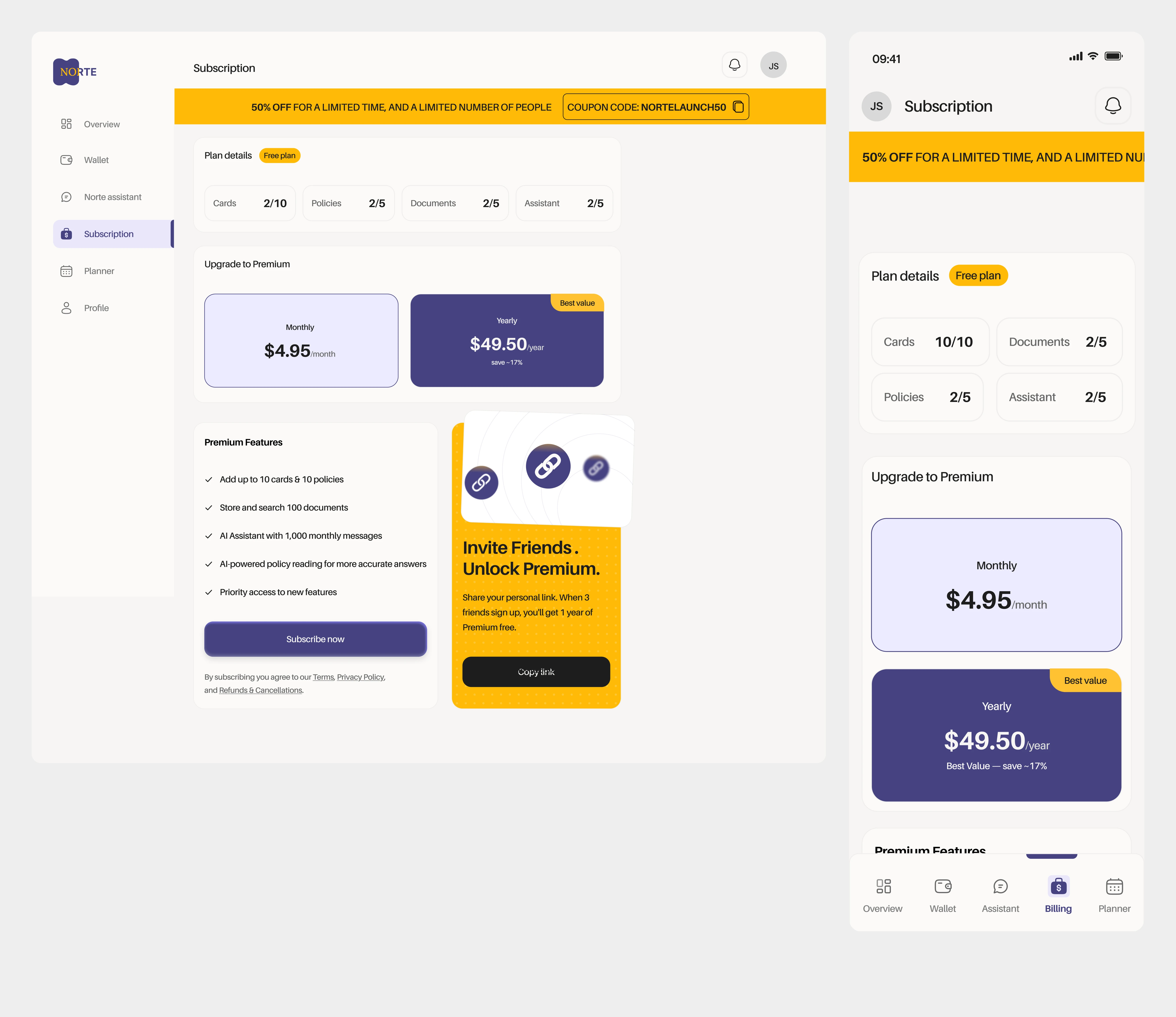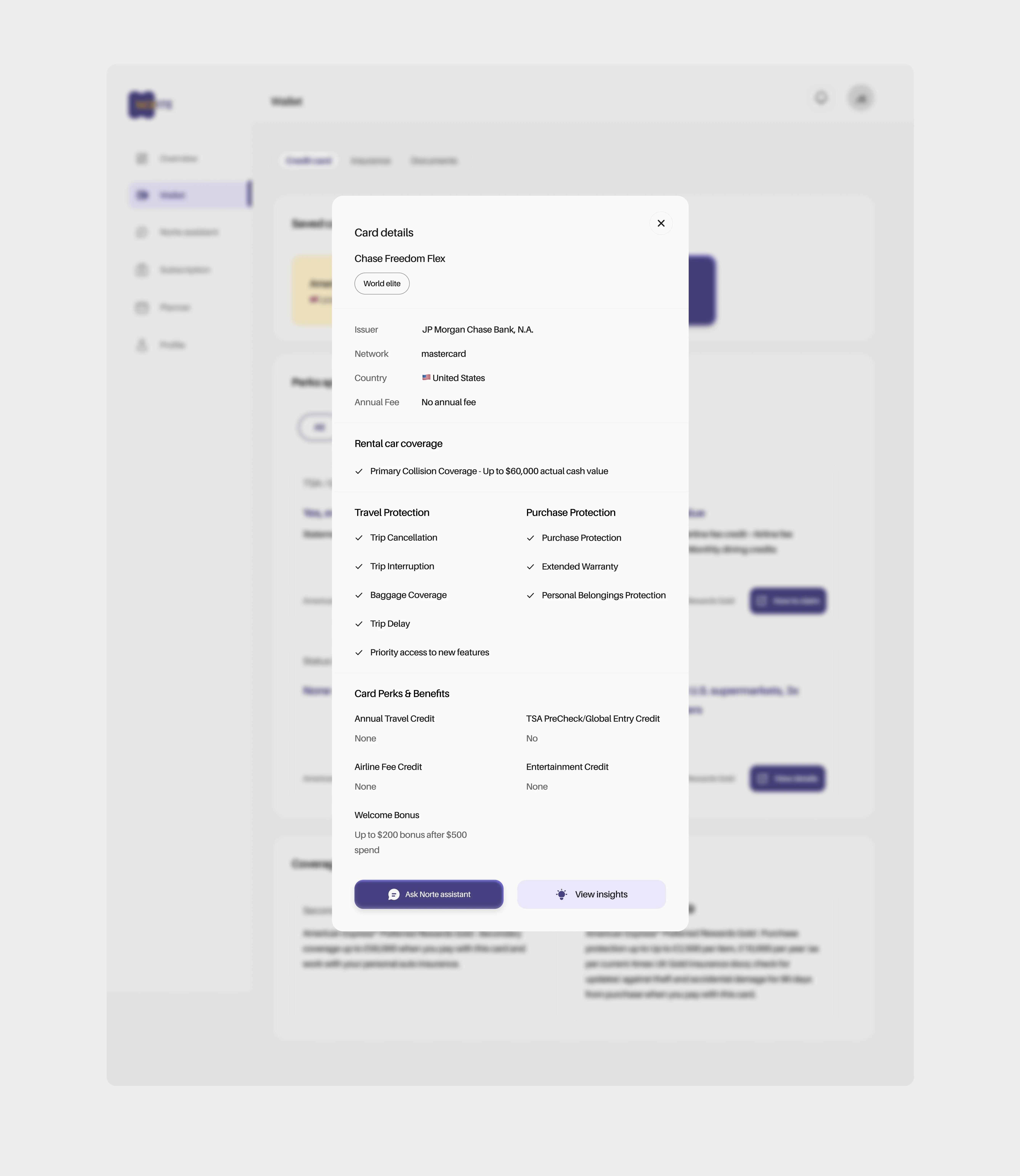 Users often struggled to understand what insurance protection they already had, which affected their decisions when buying more coverage or filing claims. Norte solves this through Coverage Intelligence, giving users a clear view of their existing protection.