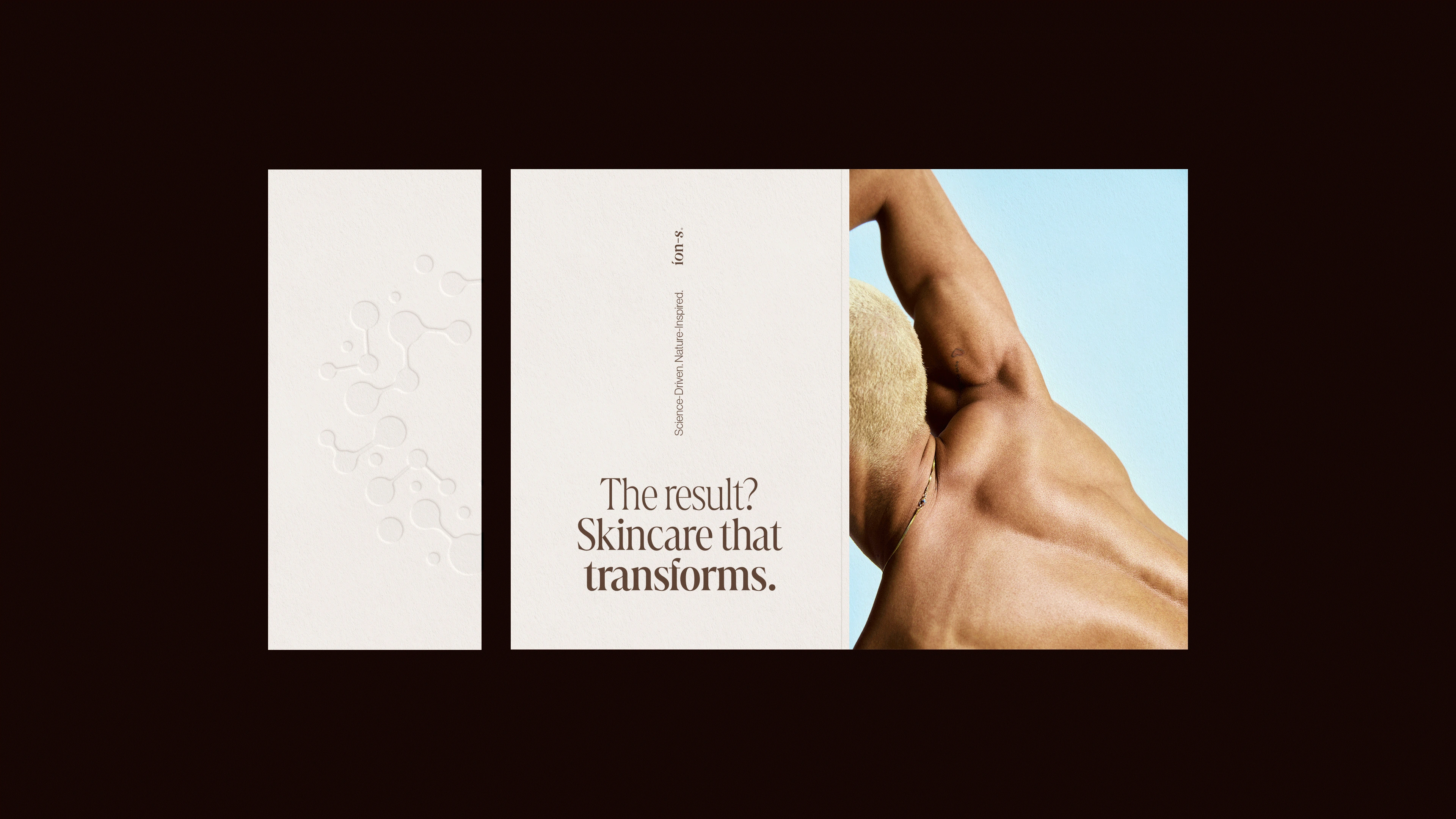 For the construction and conceptualization of the symbol present in ÍON-S's visual identity, a profound reflection was carried out on the brand's principles, values, essences, and how-to. When we combine the appreciation of science with its name, which directly alludes to chemistry, we immediately think of atoms and the representation of chemical molecules; and at this point, we focus heavily on circular forms, drawing from semiotics, which allude to unity, movement, and expansion – words that, in turn, make perfect sense when we think about atomic structures.