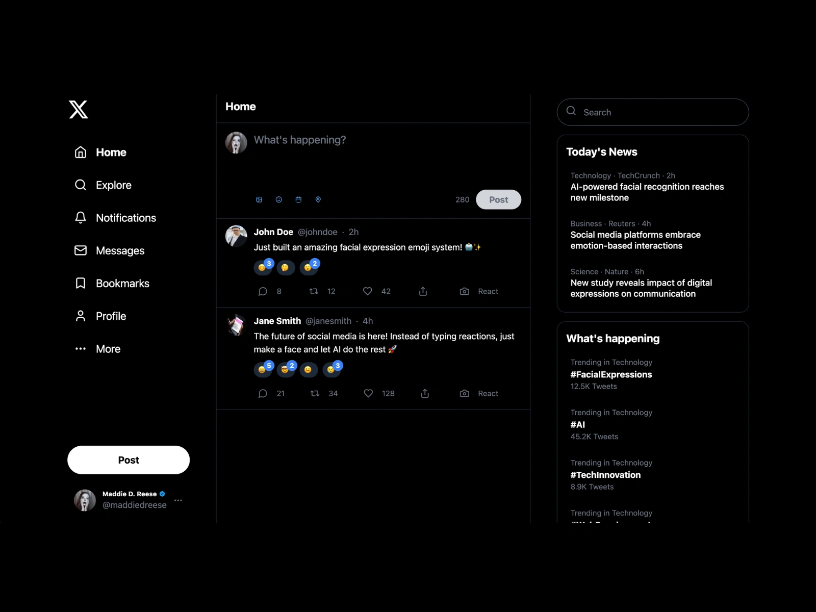 X/Twitter clone built from scratch on Bolt. Functions properly, allows you to react to tweets by making a face, which gets translated to an emoji reaction.