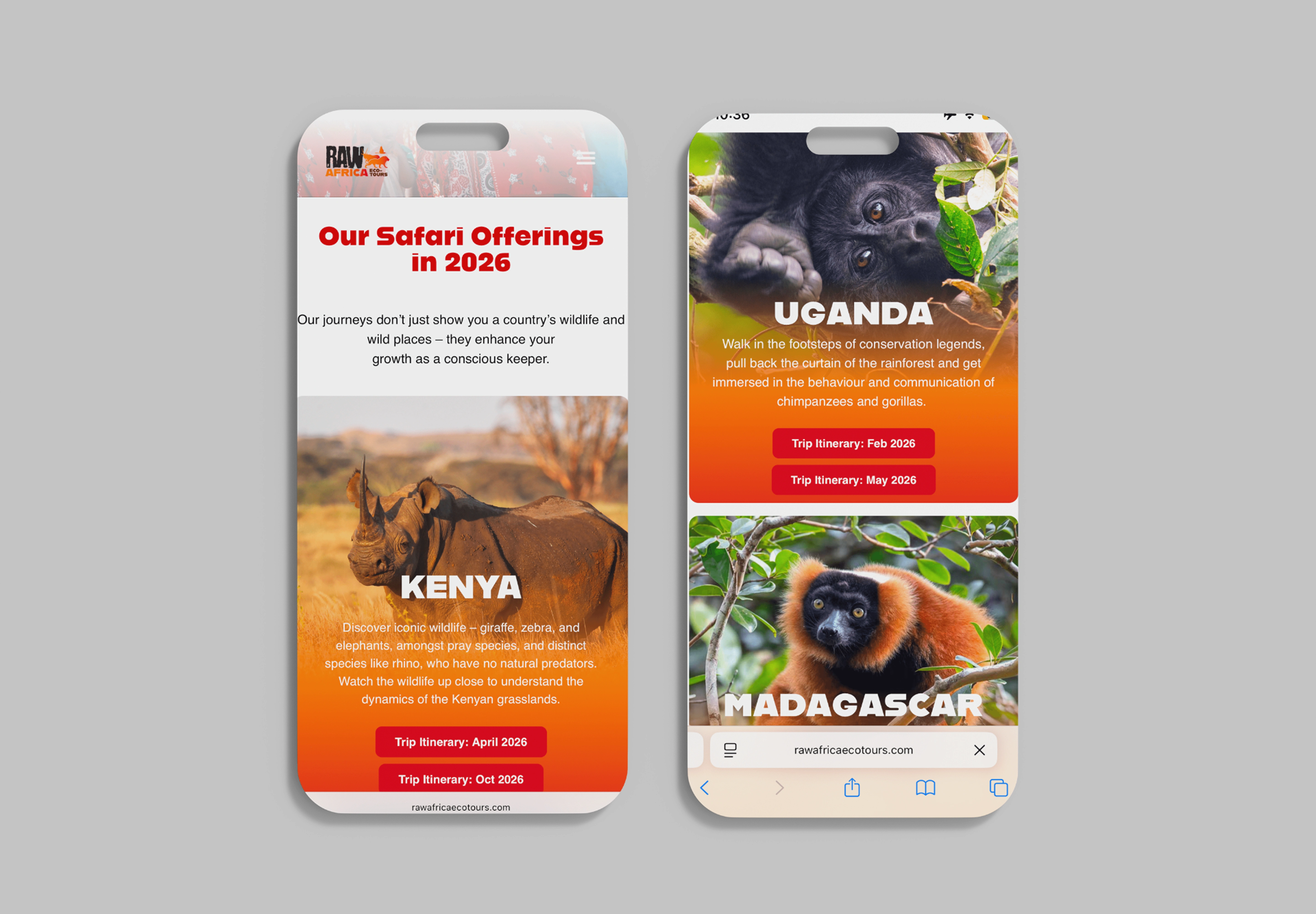 To meet these needs, I designed a card-based layout for the trips, with each card including a trip title, representative image, short description, and key details such as duration, location, and highlights. Users could hover or click for additional information and access booking pages or related resources. Filters were included to help attendees quickly find trips that matched their interests or schedules.