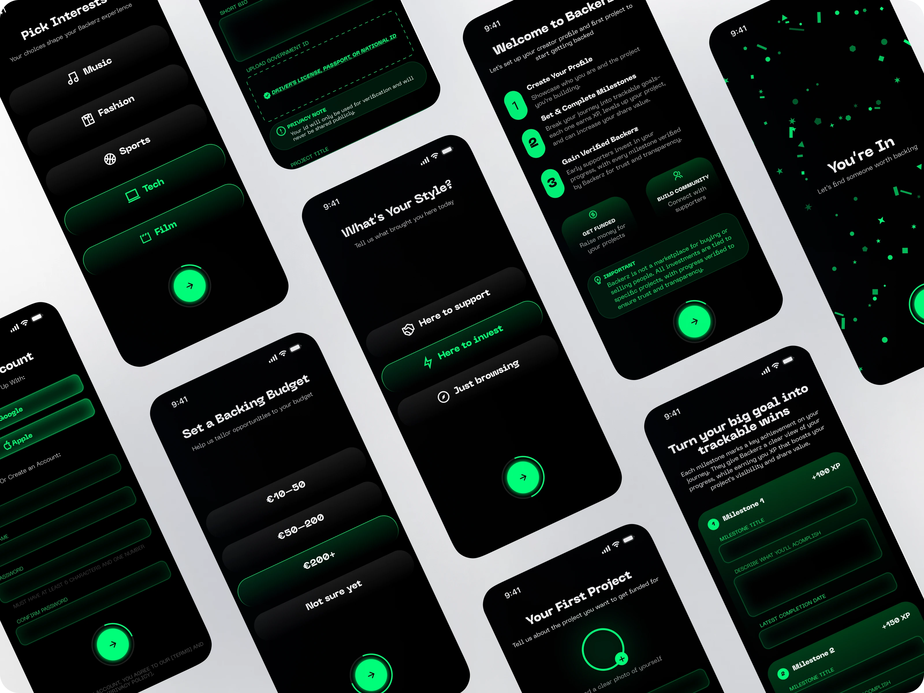 We mapped the journeys of both Backers and Creators, analyzed competitors in fintech + the creator economy, and defined the UX foundation that balances financial clarity with social excitement.