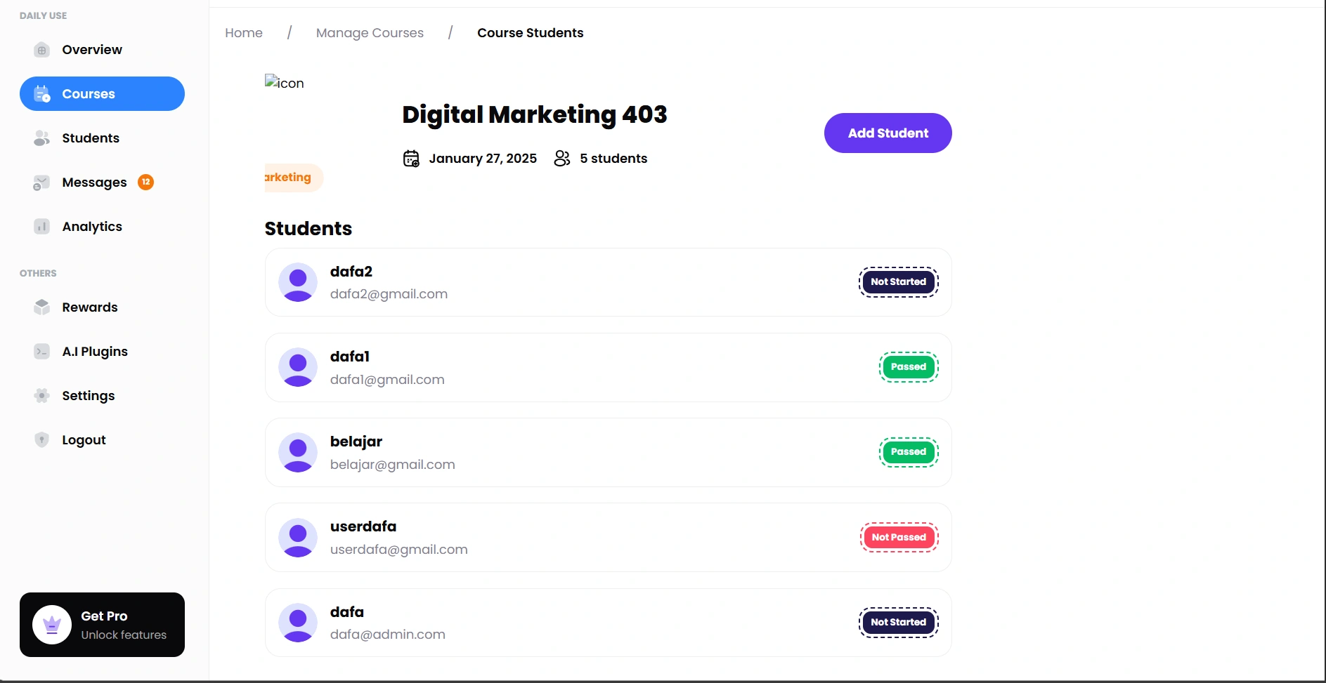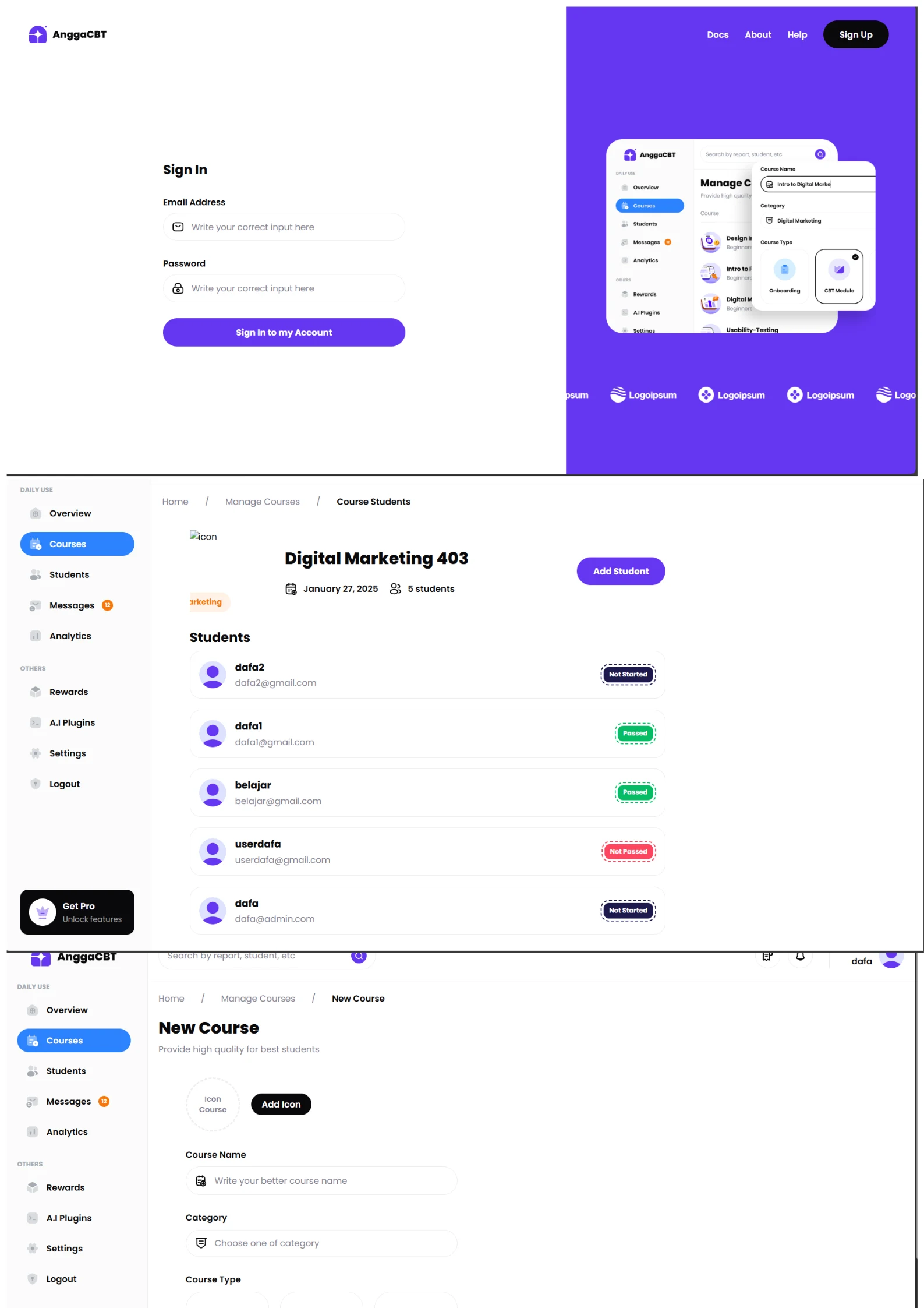 This project is a web application built with PHP (using the Laravel framework) designed to facilitate online learning and assessment processes. The application supports the management of courses, questions, answers, and student progress tracking. The project structure indicates modules for administration (admin), user authentication, and specific views for students.