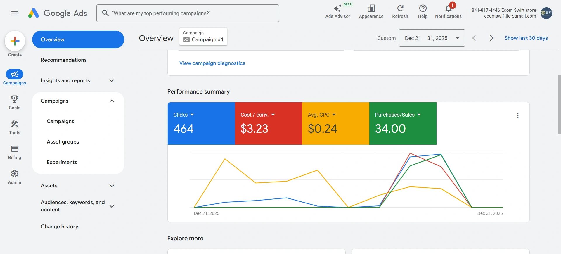 Worked on this client Google ads & SEO optimization project. The Google ads generated 34 sales within the first 14 days, now we are working to improve results.