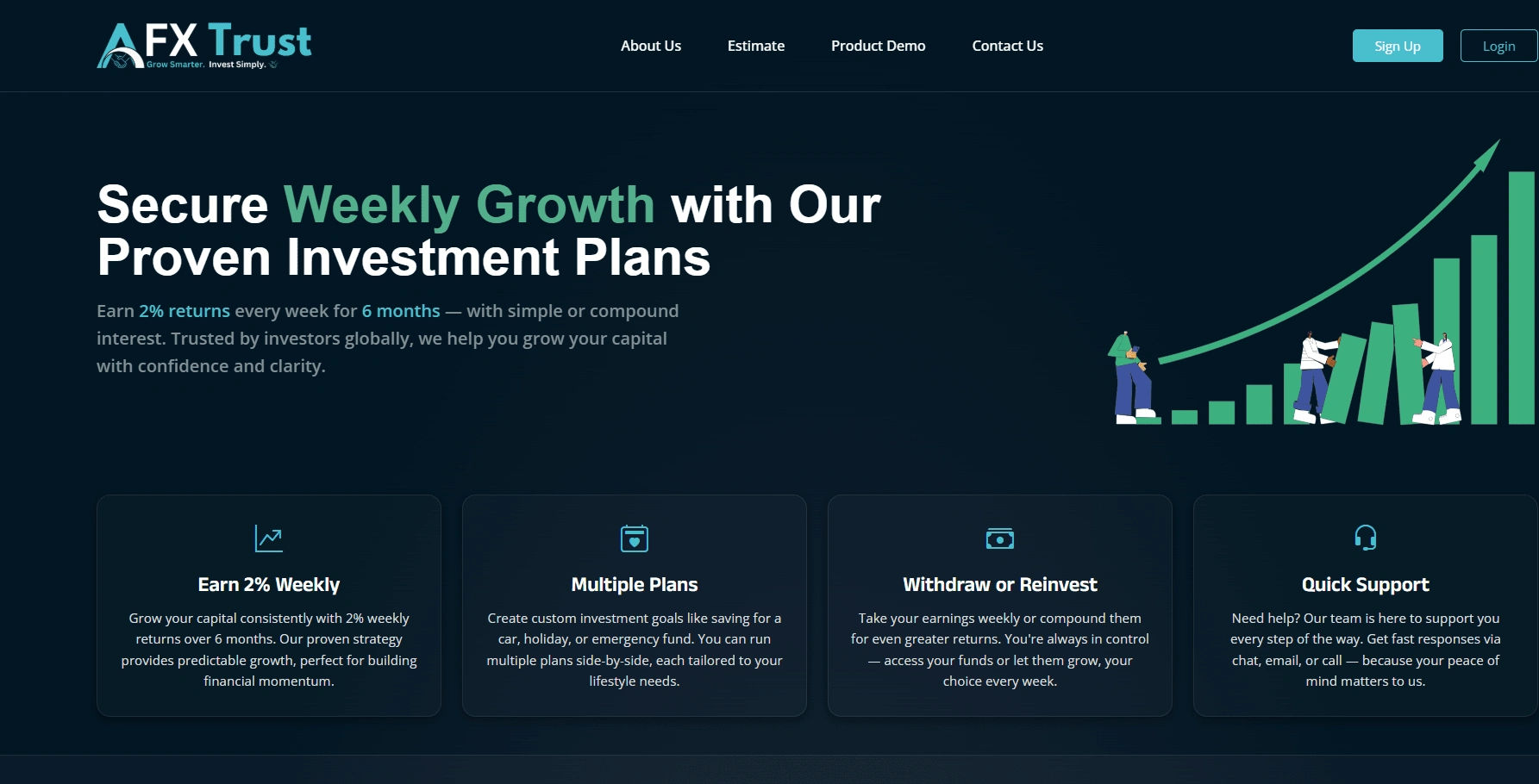 I designed and developed a full-scale investment management platform for AFX Trust, a fintech company offering structured investment plans. The project included both a modern responsive website and a Progressive Web App (PWA) to allow users to invest, track returns, top up balances, and manage their investment lifecycle from any device.