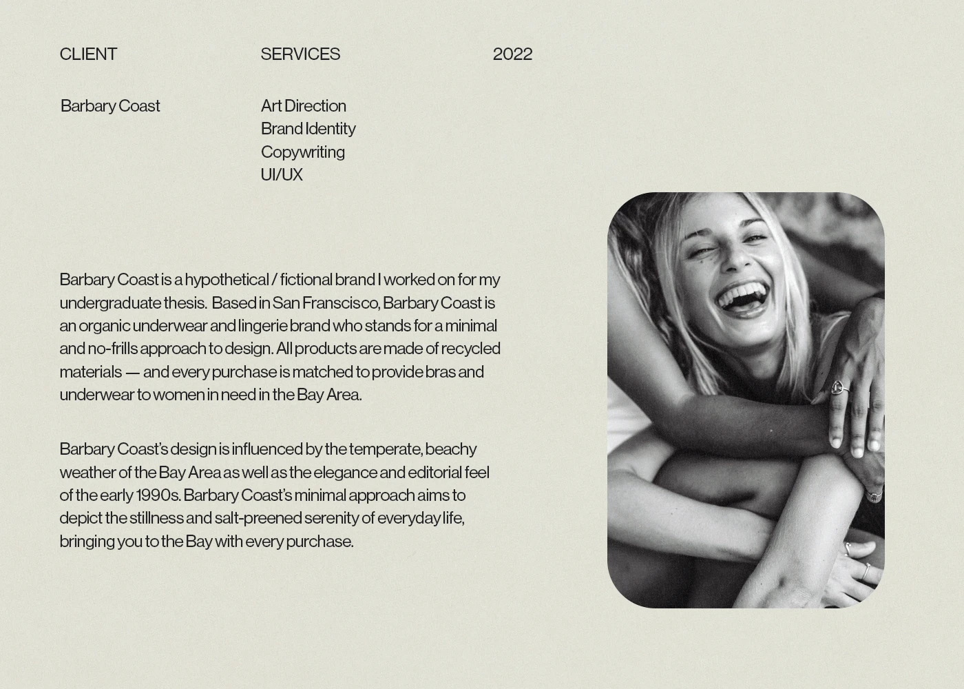 Brand design for Barbary Coast, a fictional brand I worked on for my senior undergraduate thesis.