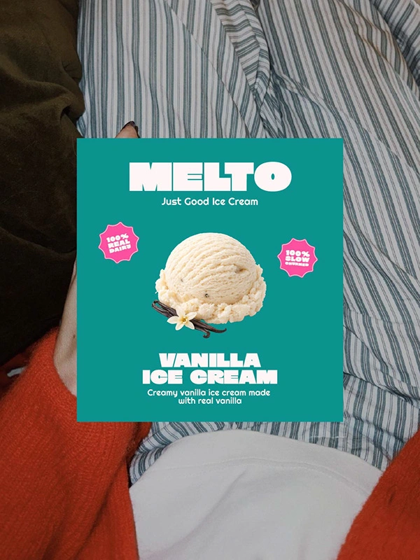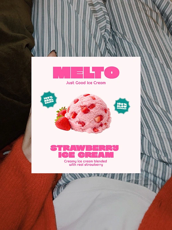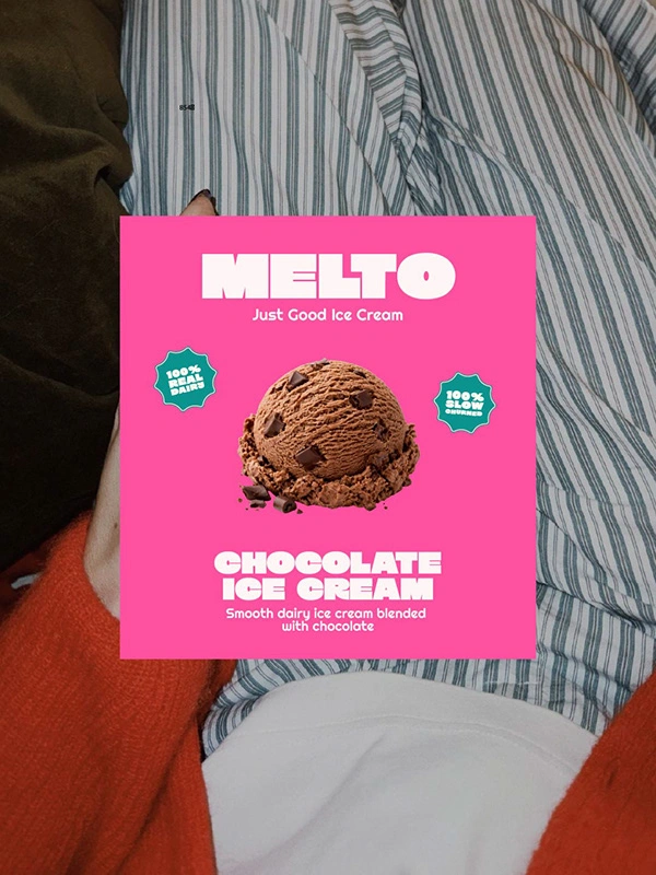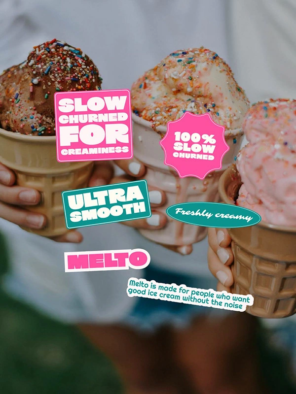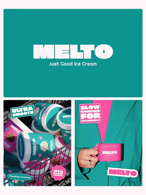 Melto transforms a simple ice cream product into a bold, feel-good brand experience that is playful, vibrant, and confidently modern.