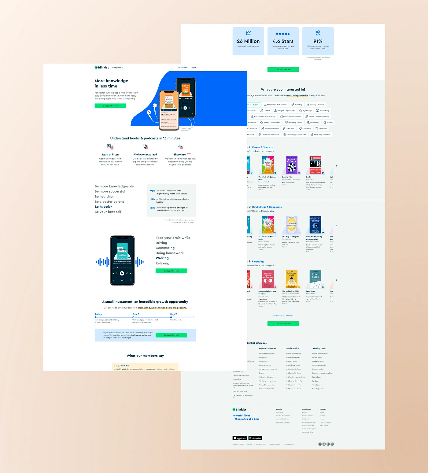 By prioritising ease of use, simplifying book category selection, and addressing scroll fatigue, Blinkist can enhance the user experience and optimise engagement. Incorporating these recommendations will ensure that visitors spend more meaningful time on the landing page and reduce bounce rates. By continually evaluating and refining the user experience, Blinkist can create a platform that truly captivates and resonates with its audience.