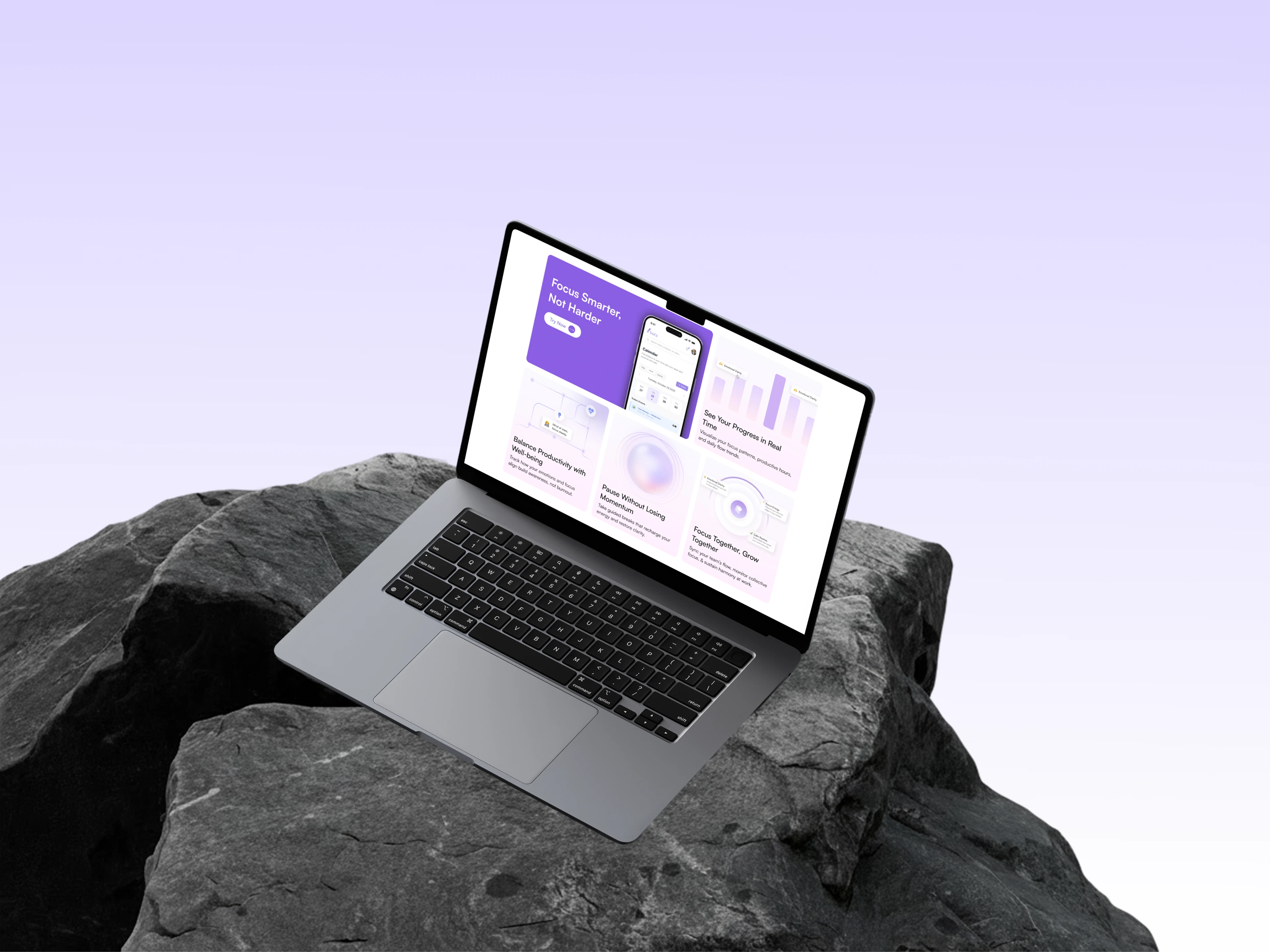 Logo — The mark was designed to feel like a breath. Soft, circular motion suggesting rhythm and balance, not speed. No sharp edges, no aggressive geometry. It hints at focus as a natural state not something you fight for.