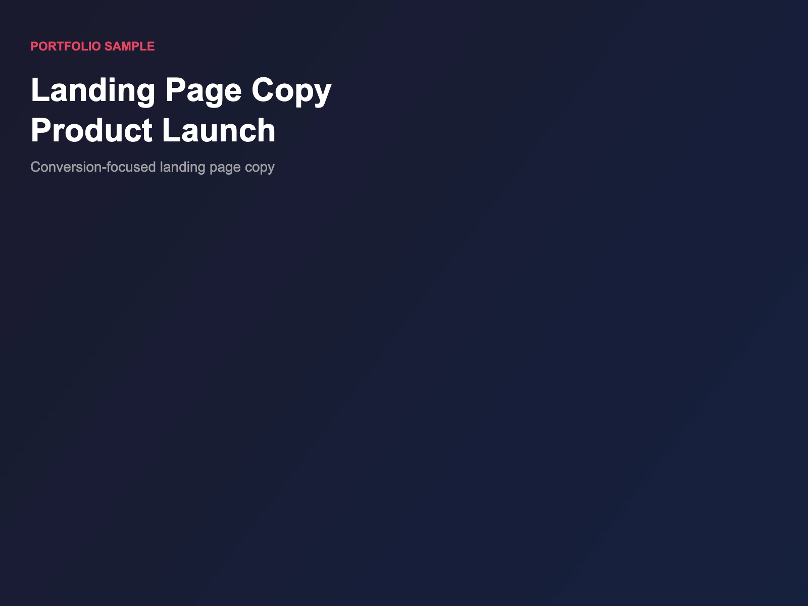 Conversion-focused landing page copy for a content lanning tool launch. Includes hero section, features social proof, and CTA blocks.