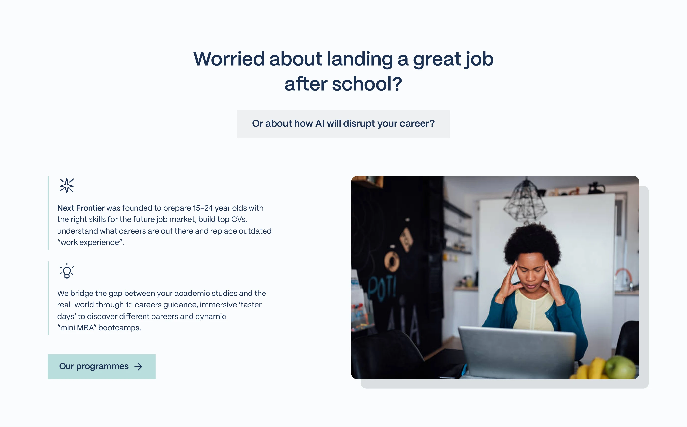The site had to feel both credible (as an education provider) and energetic (as a youth-driven brand).