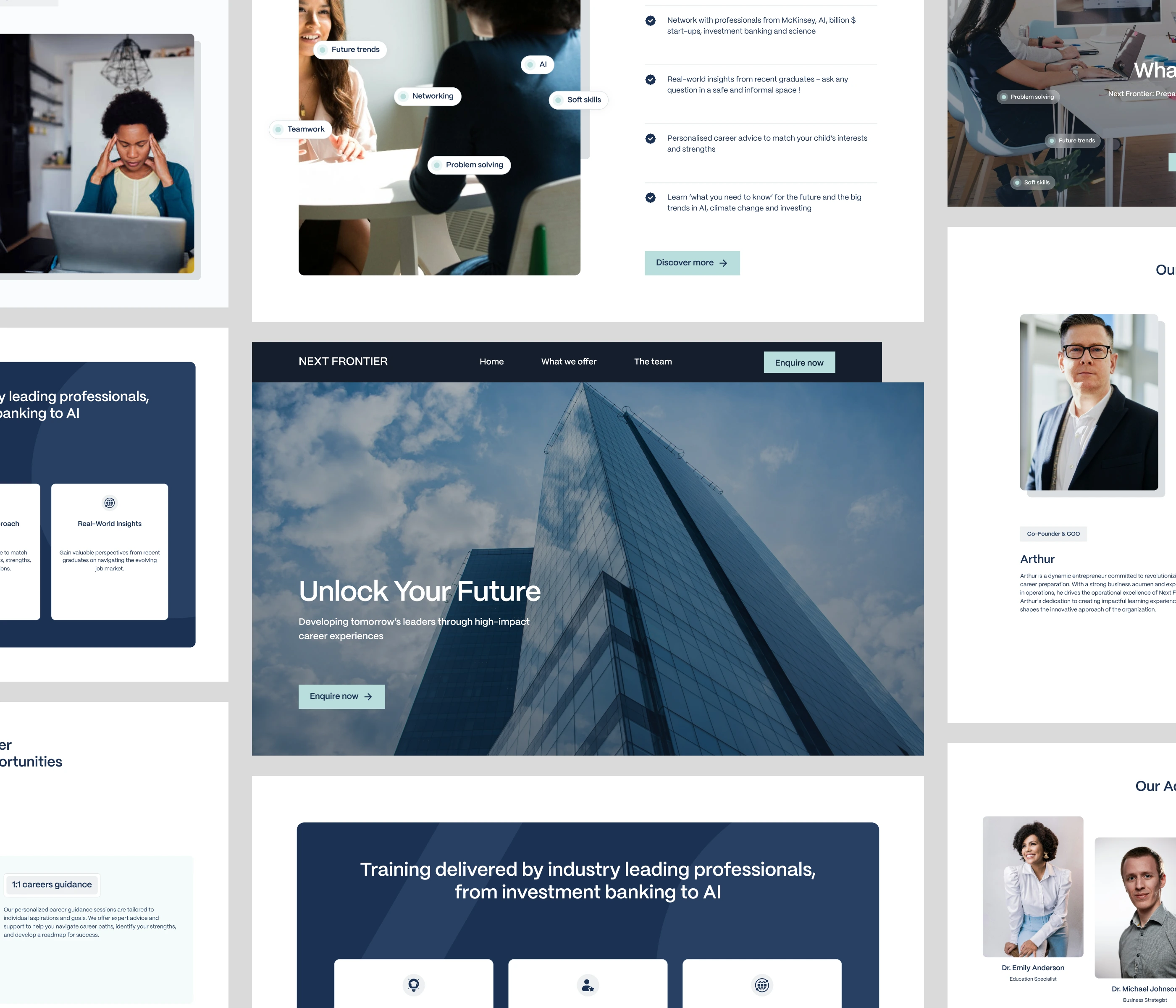 After completing their brand identity and UI design, the Next Frontier team partnered with Capi Product to bring their vision to life on Webflow — creating a fast, scalable, and visually inspiring website that reflects their mission: