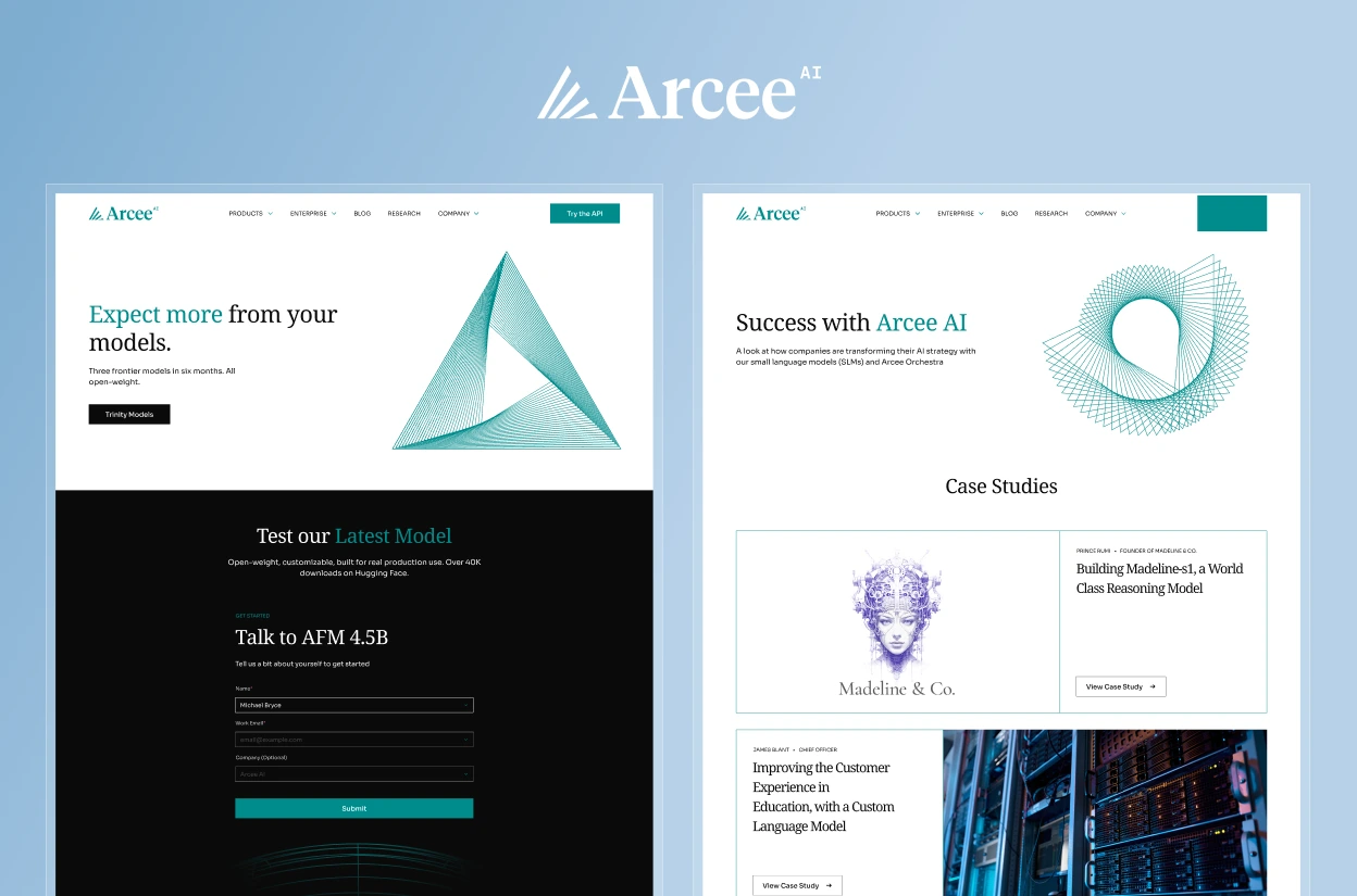 Training AI models is notoriously complicated, so we made Arcee's app as simple as possible. Users can train, merge, fine-tune, and deploy models without getting lost in technical complexity. The dashboard shows real-time progress and feedback, so teams know exactly what's happening at every step. Clean design and clear controls mean less time figuring out the interface and more time building better AI.