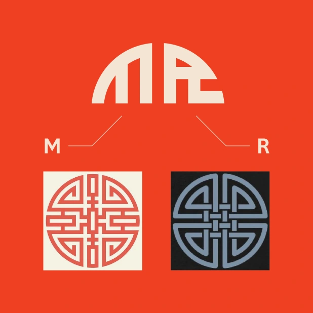 Mark Russo is a speaker, author, and coach who teaches people how to get unstuck and regain control in their lives. He is a black belt karate and often uses his martial arts background to teach his lessons. Exploring some Asian references due Mark's connection with martial arts, I found some knot shaped symbols that were used as inspiration. The inside signs are actually the letters "M" and "R" stylized to look like ancient Asian symbols.