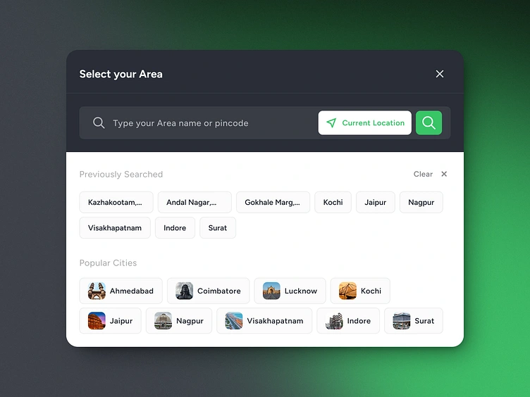 Finding local services and products should be effortless! I designed this modern, user-friendly location selection popup for my personal project—a local marketplace platform that connects people in tier 2 Indian cities with essential services, second-hand goods, and rentals.