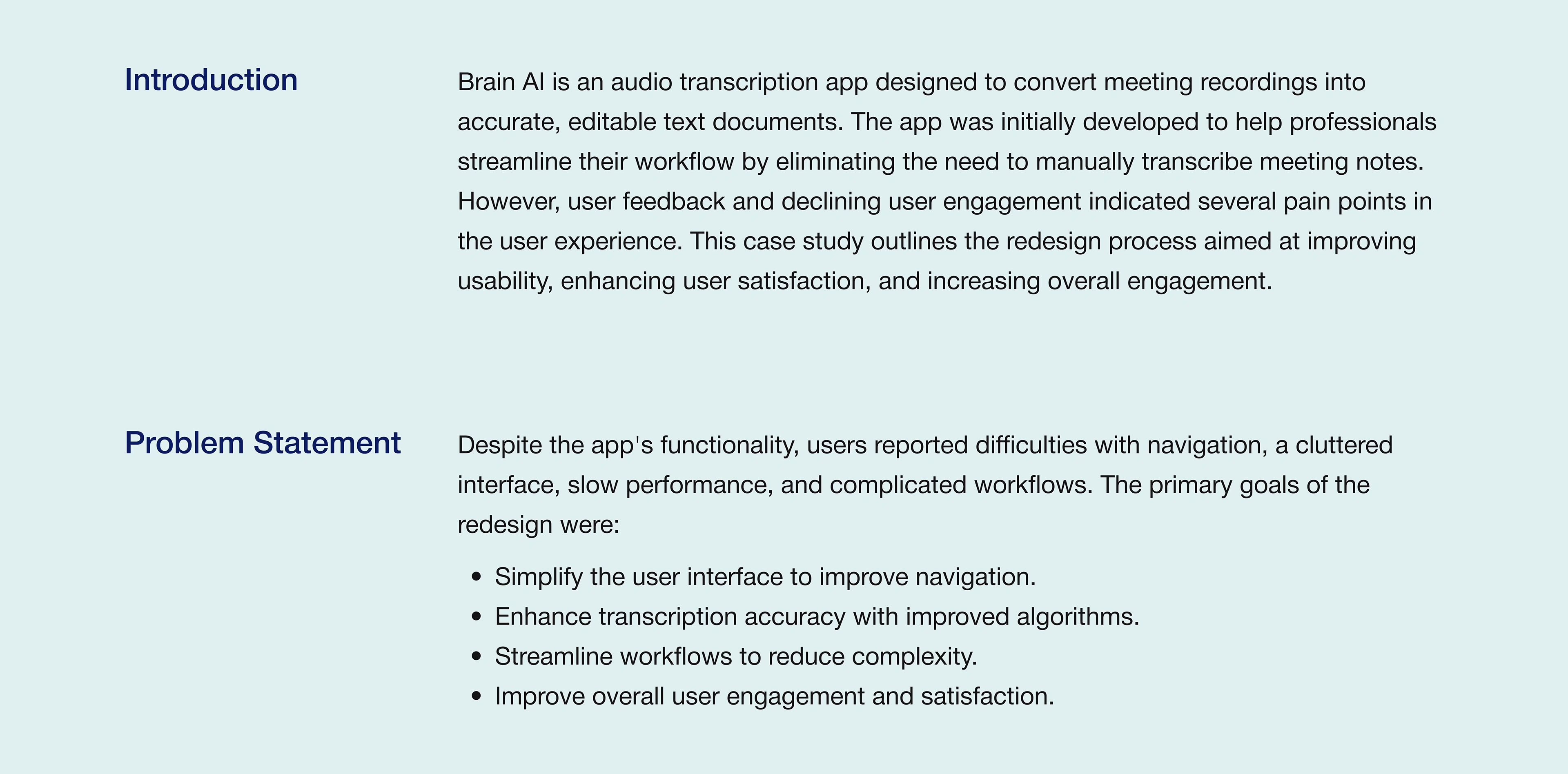 Brain AI is an audio transcription app designed to convert meeting recordings into accurate, editable text documents.