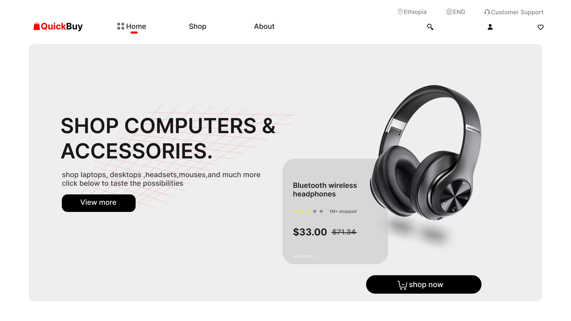 QuickBuy is a clean, modern eCommerce UI designed for fast, easy shopping. It features a minimalist layout, bold product visuals, smooth navigation, and a user-friendly cart system.