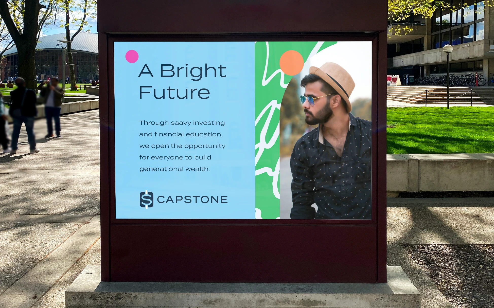 Capstone is a concept brand for financial education. The idea was based as an off-shoot of Goldman Sachs pitching a campaign that was geared toward a new generation of investors, particularly Gen Z and Millennials. Creating this as a real-life client, I first did the due diligence of understanding Goldman Sachs brand at its core. I gathered the elements such as their color palettes, fonts, and imagery. Studied their assets, their website, social media, reports, and anything else I could get my hands on. I looked at their voice and tone, messaging, and dialogue in how they talked to their audience and imagined what a younger version of themselves would be like.