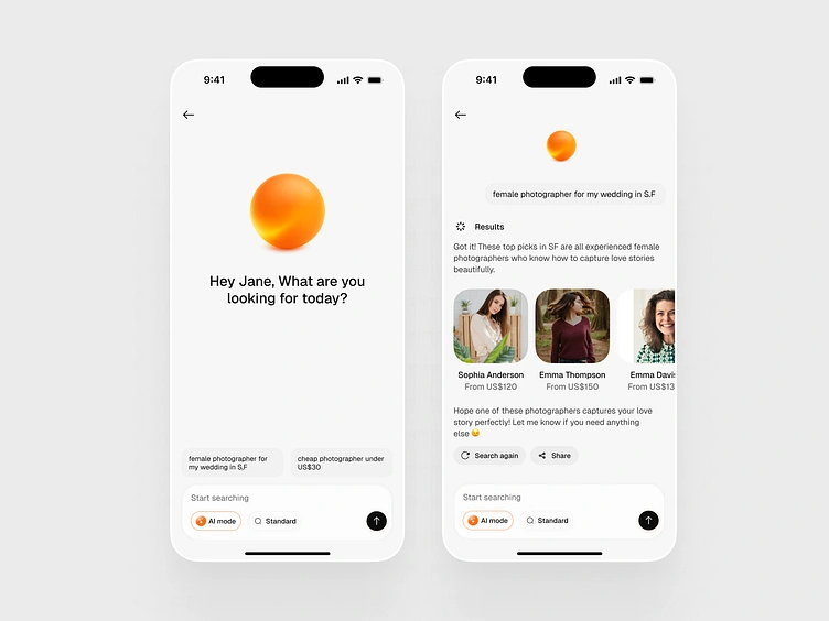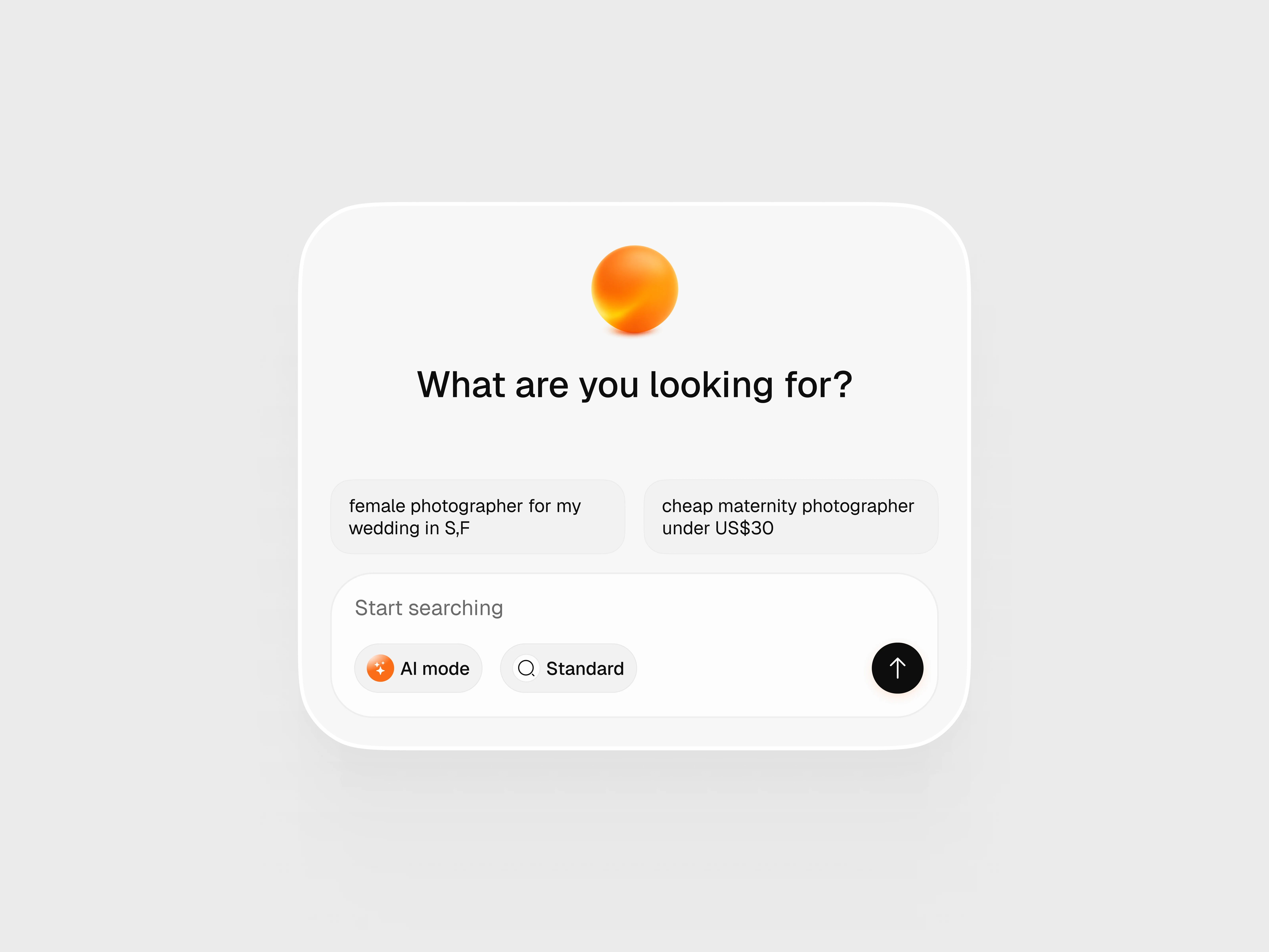 Turned a clunky search process into a smooth, AI-led experience. Now users find and book photographers in seconds—just by asking.