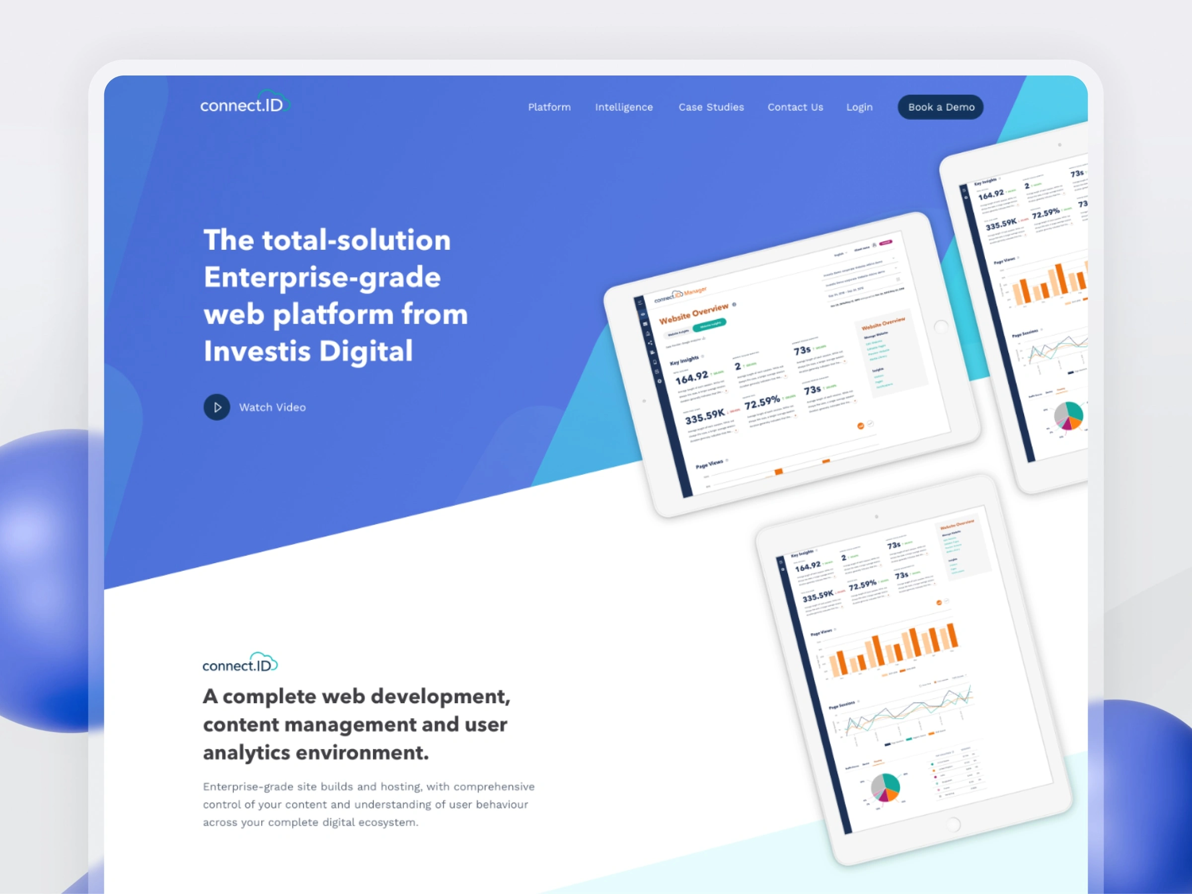 Building on a basic brand, I extended the colour palette, typography hierarchy, iconography and image treatment to work across web and reflect the platform's modern technology, speed and usability. I also designed 8 template pages in a modular system, so they could be flexible and easily adapt to a range of future website content.