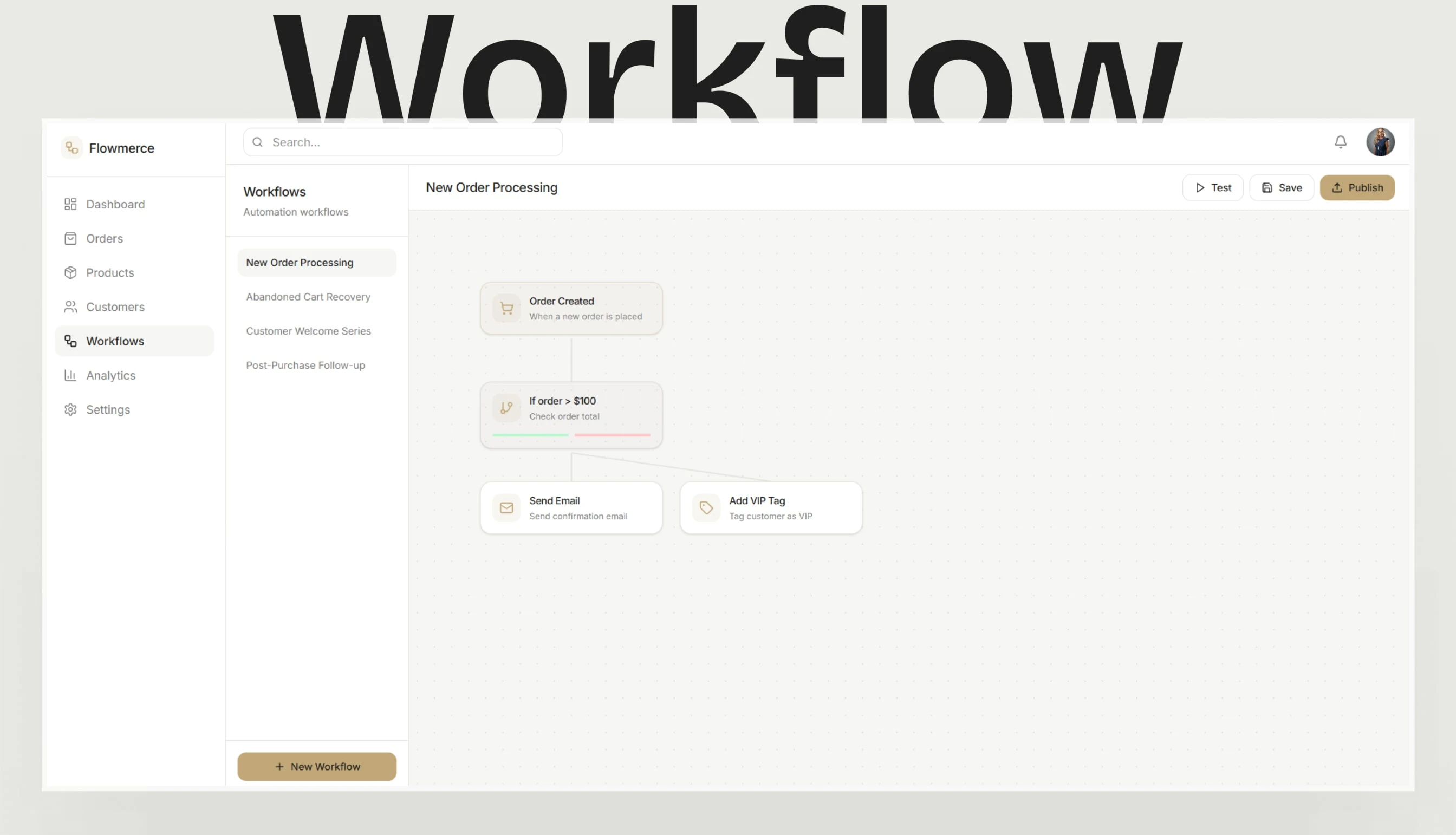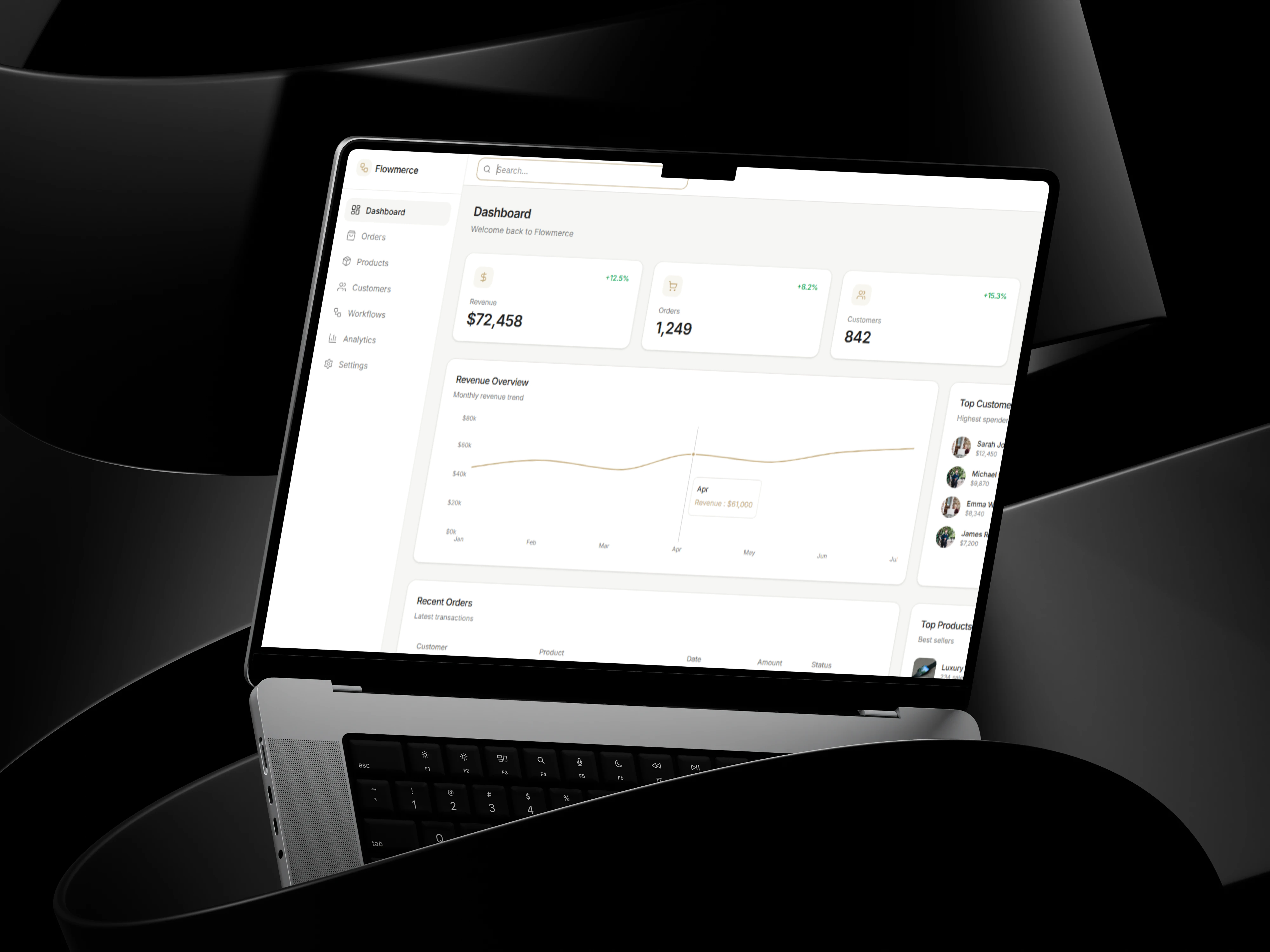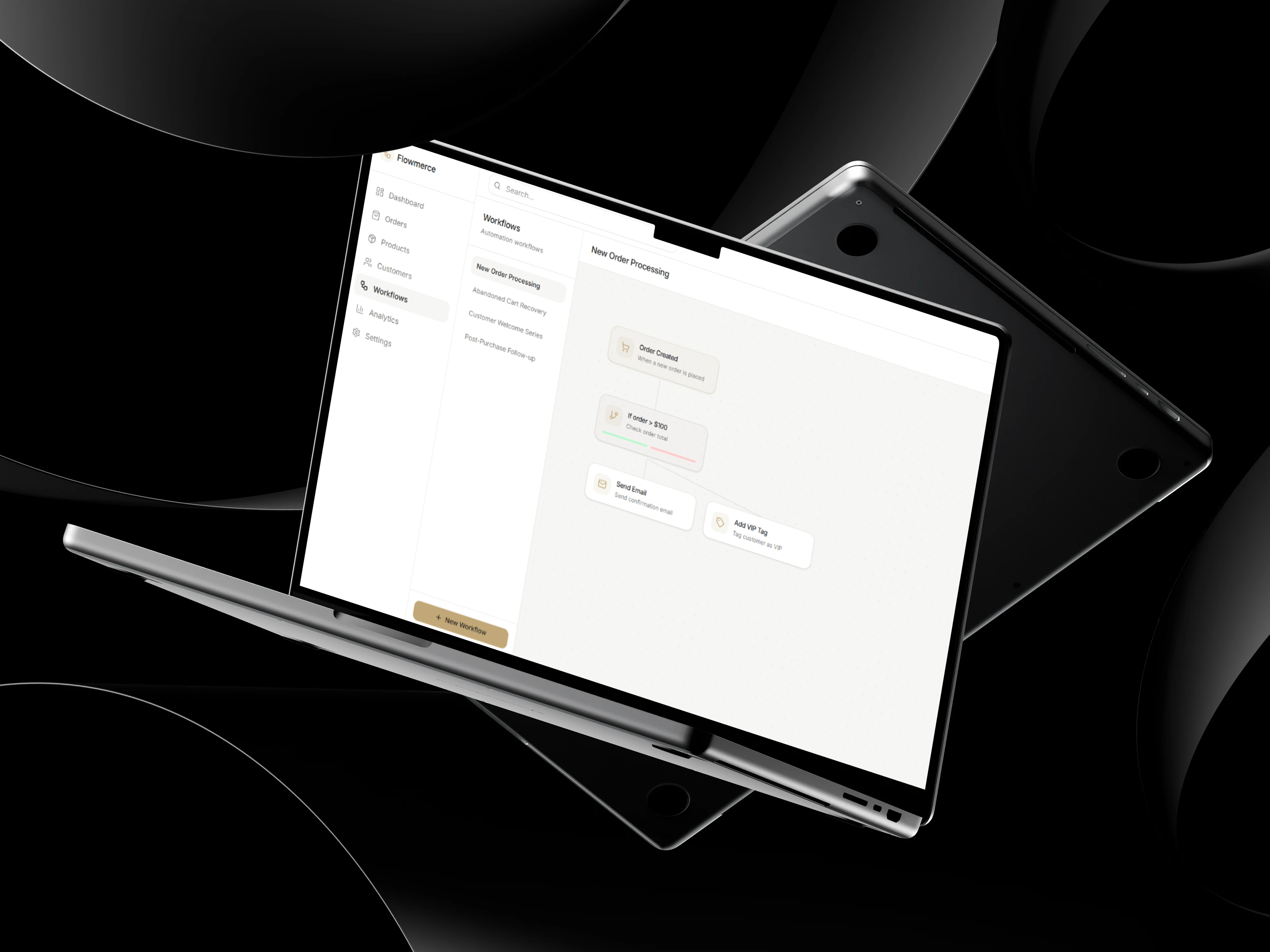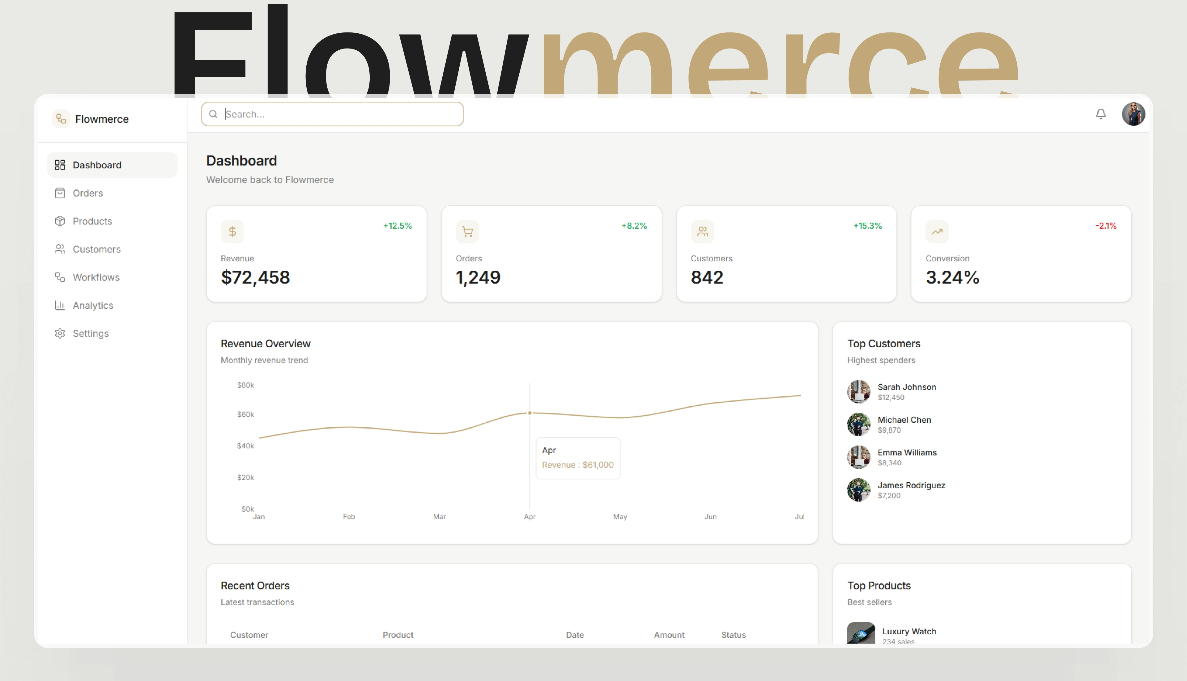 This project focuses on designing a modern Ecommerce & Workflow Automation Dashboard, Flowmerce, built to help businesses manage orders, customers, and automated workflows within a clean, structured interface. The goal was to simplify complex ecommerce operations into a calm, minimal, and highly usable experience that prioritizes clarity and efficiency.
