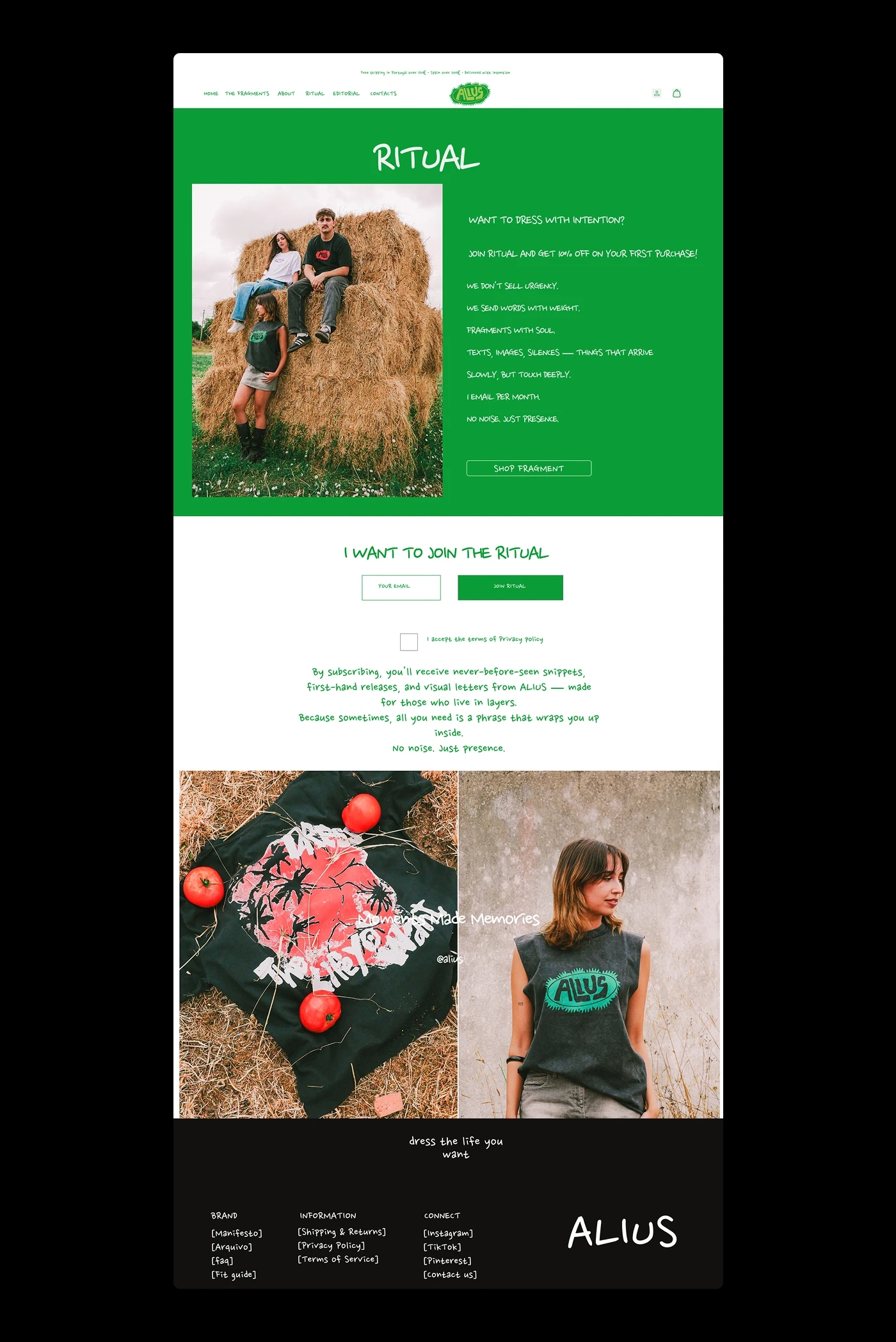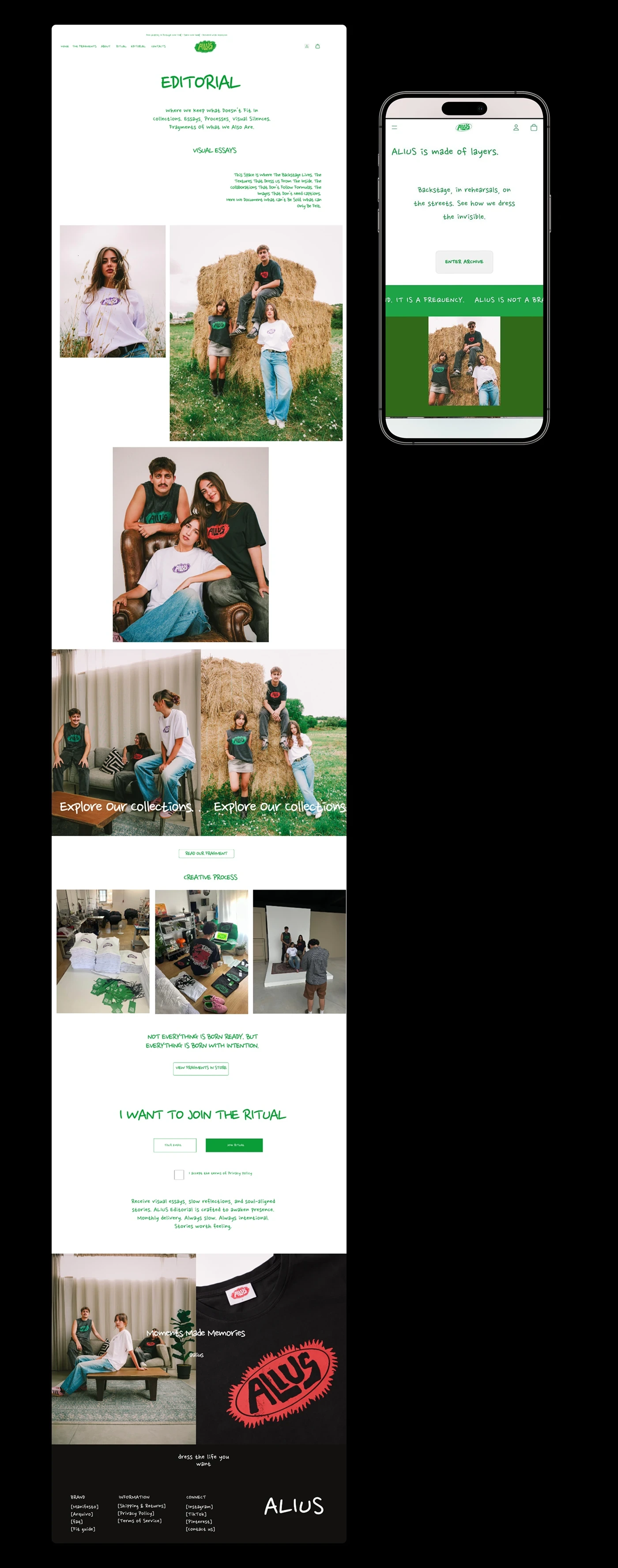 Shopify, Web Design, E-commerce, UX/UI Design, Digital Branding, Responsive Website, User Experience, Out of Form, Minimalist Design, Alius Store
