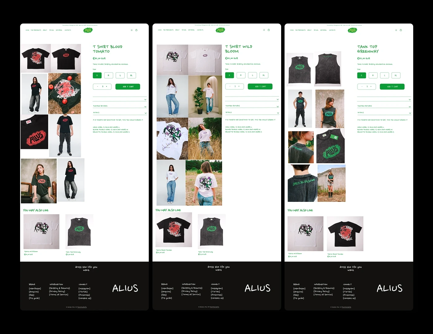 The result is a functional and elegant website that reinforces Alius' visual identity and offers an intuitive and engaging shopping journey.