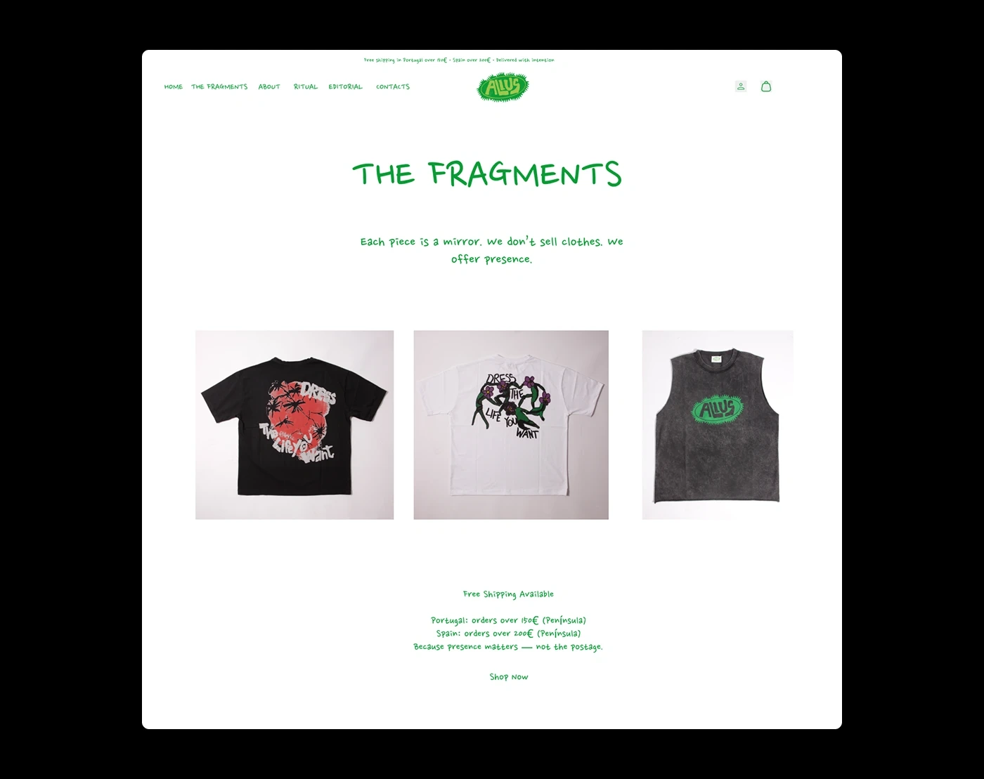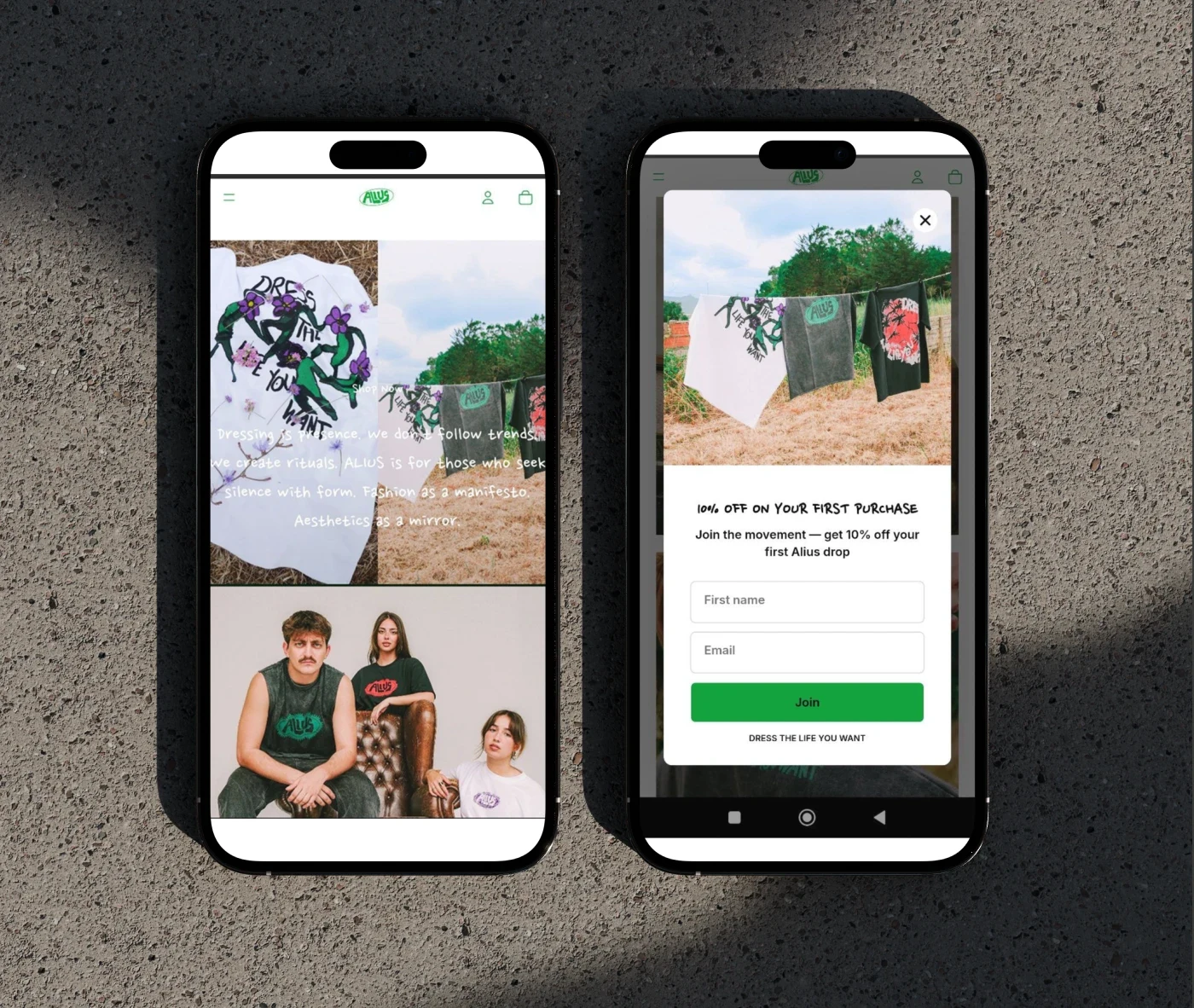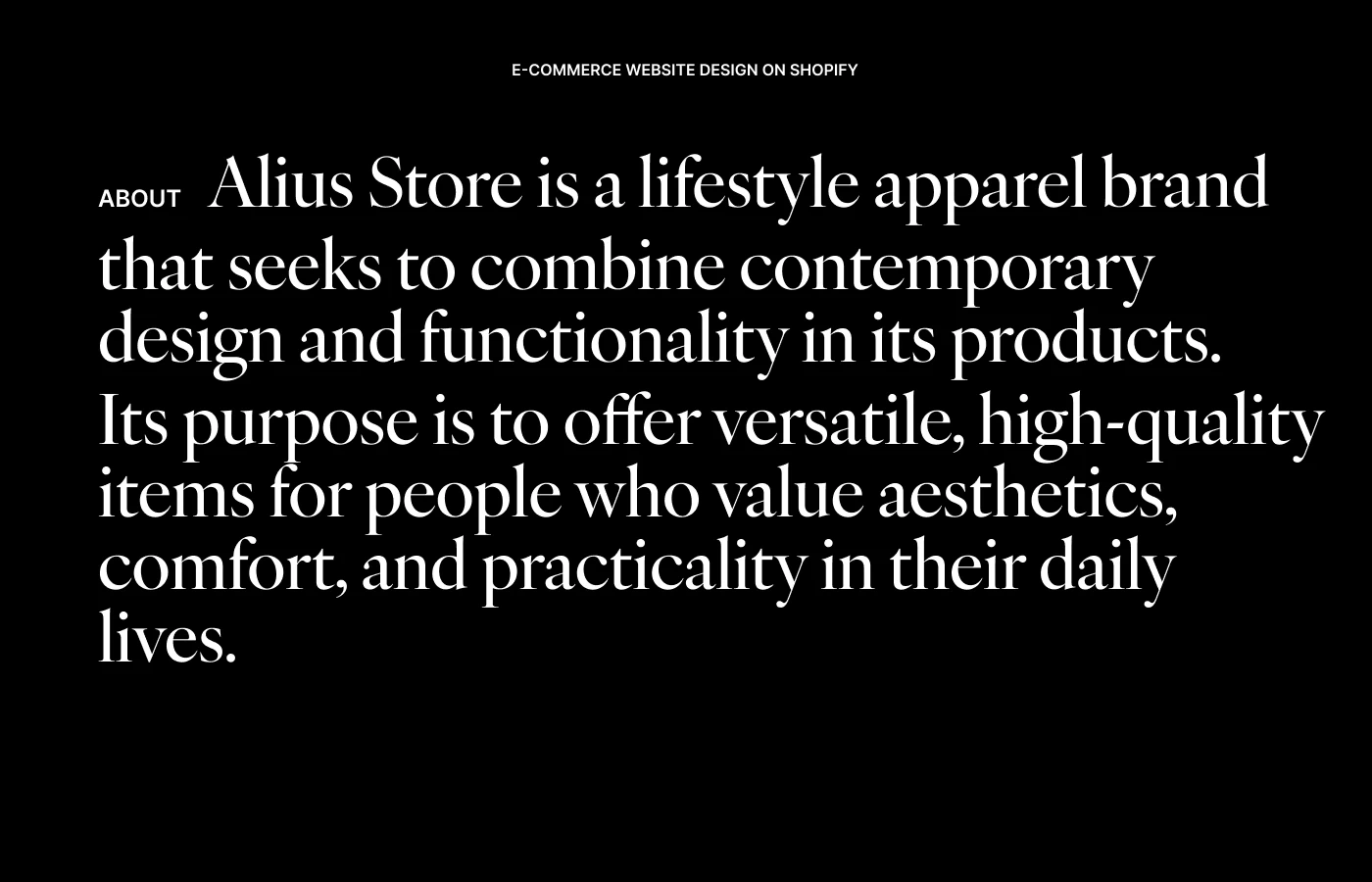 Out of Form was responsible for the complete design and development of the Alius Store website, an e-commerce site created on the Shopify platform. The goal was to build a digital experience that conveyed the essence of the brand—modern, minimalist, and focused on functionality.