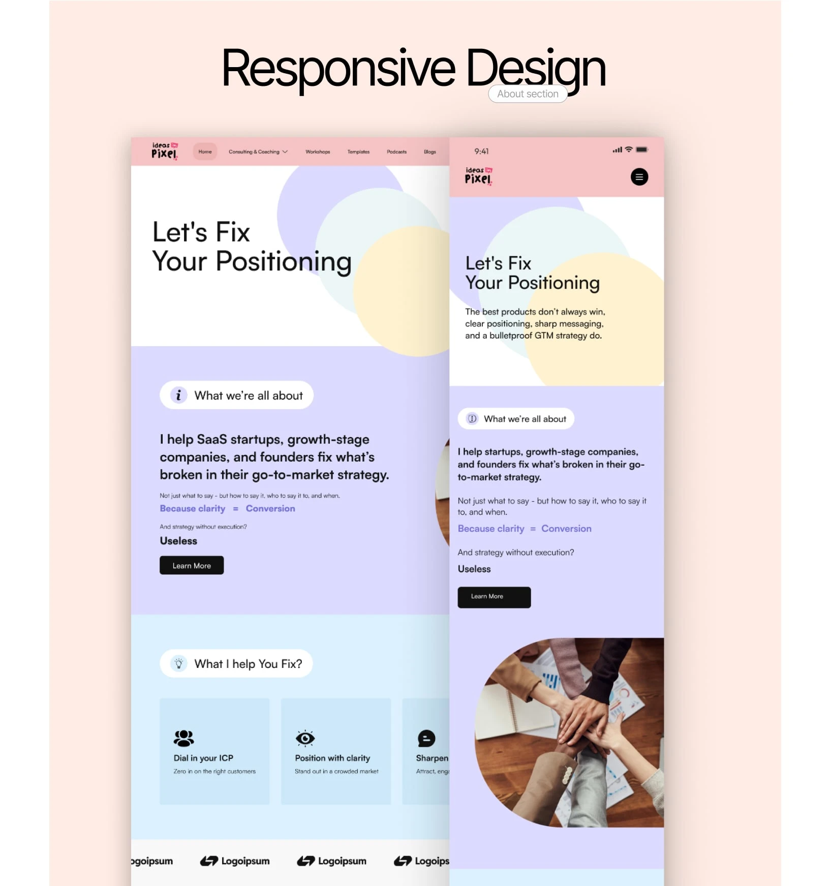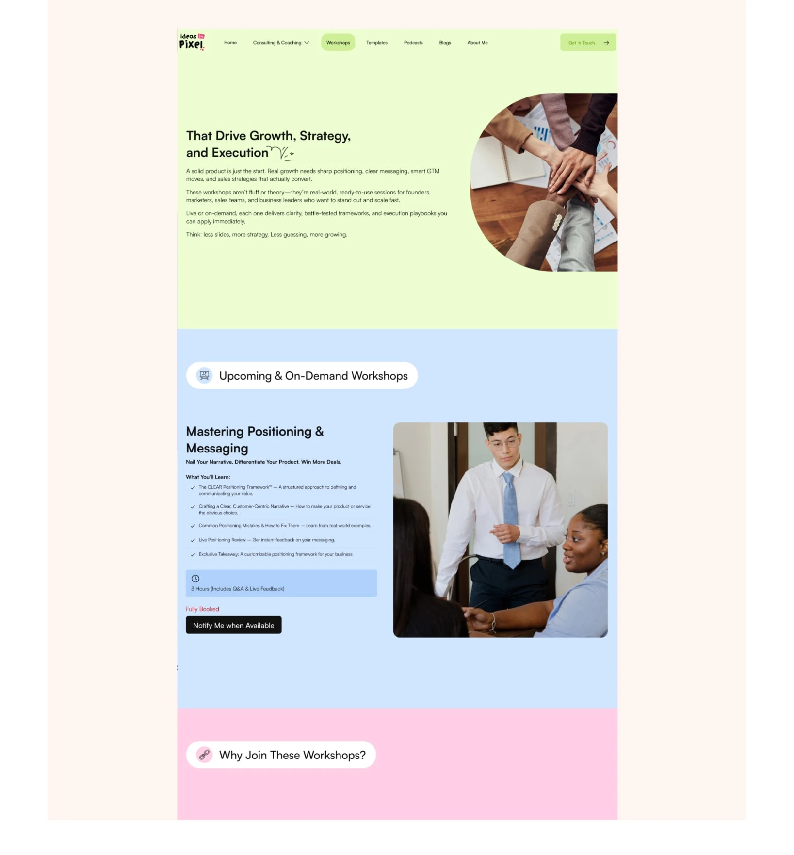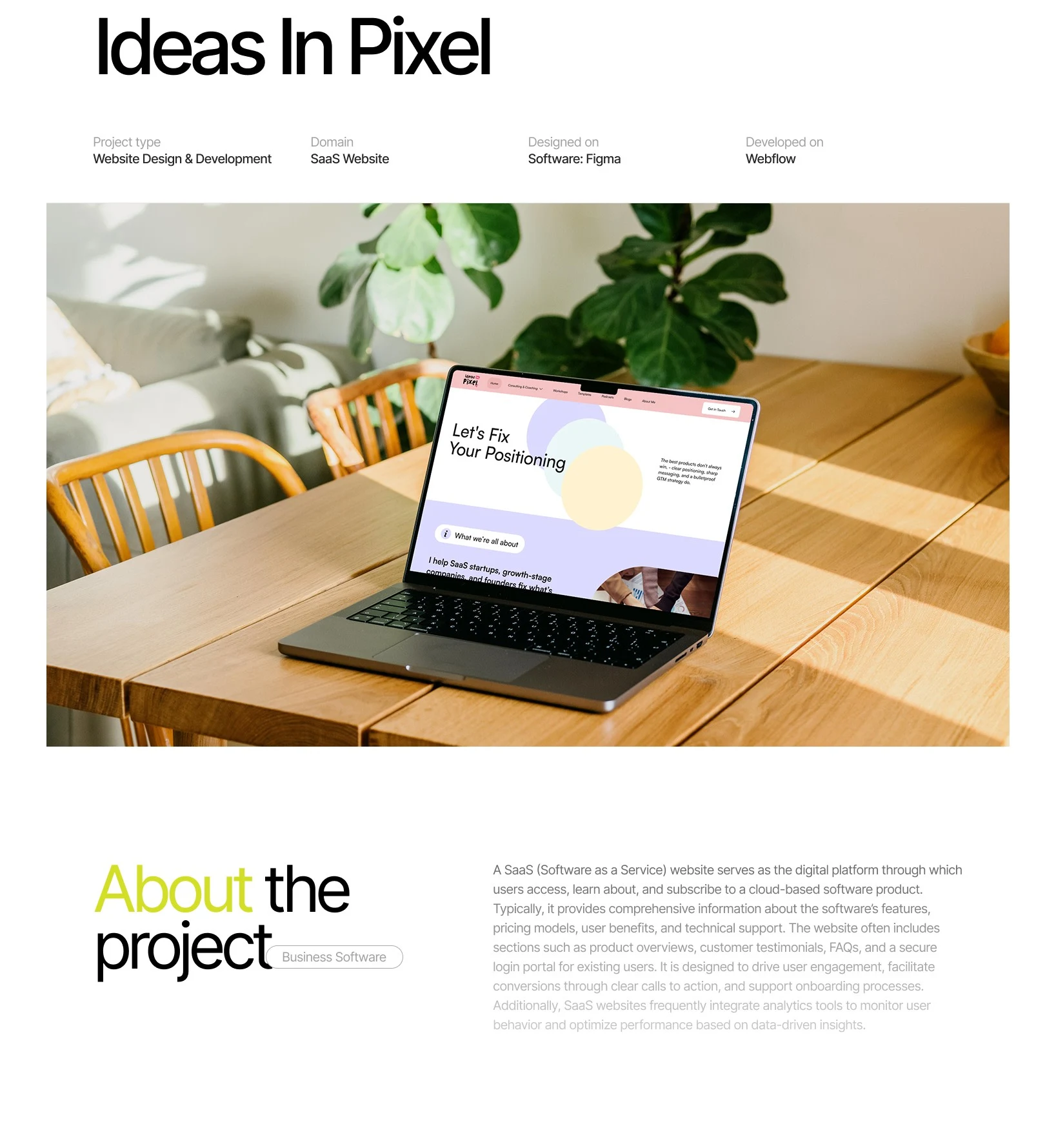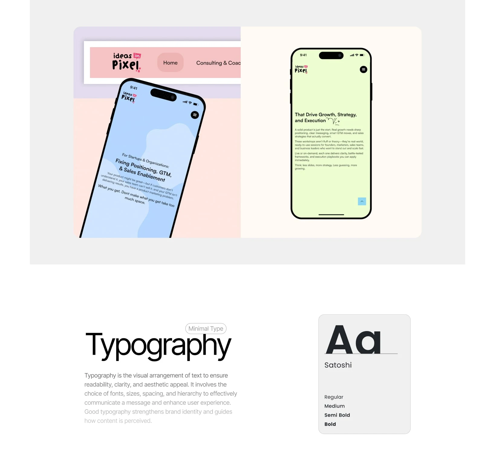 The final website presents Ideas in Pixel as a focused and credible creative partner. It communicates clarity, craft, and intent while remaining easy to navigate and engaging to explore. The site now supports the brand’s positioning by showcasing work in a way that feels honest, composed, and professional.